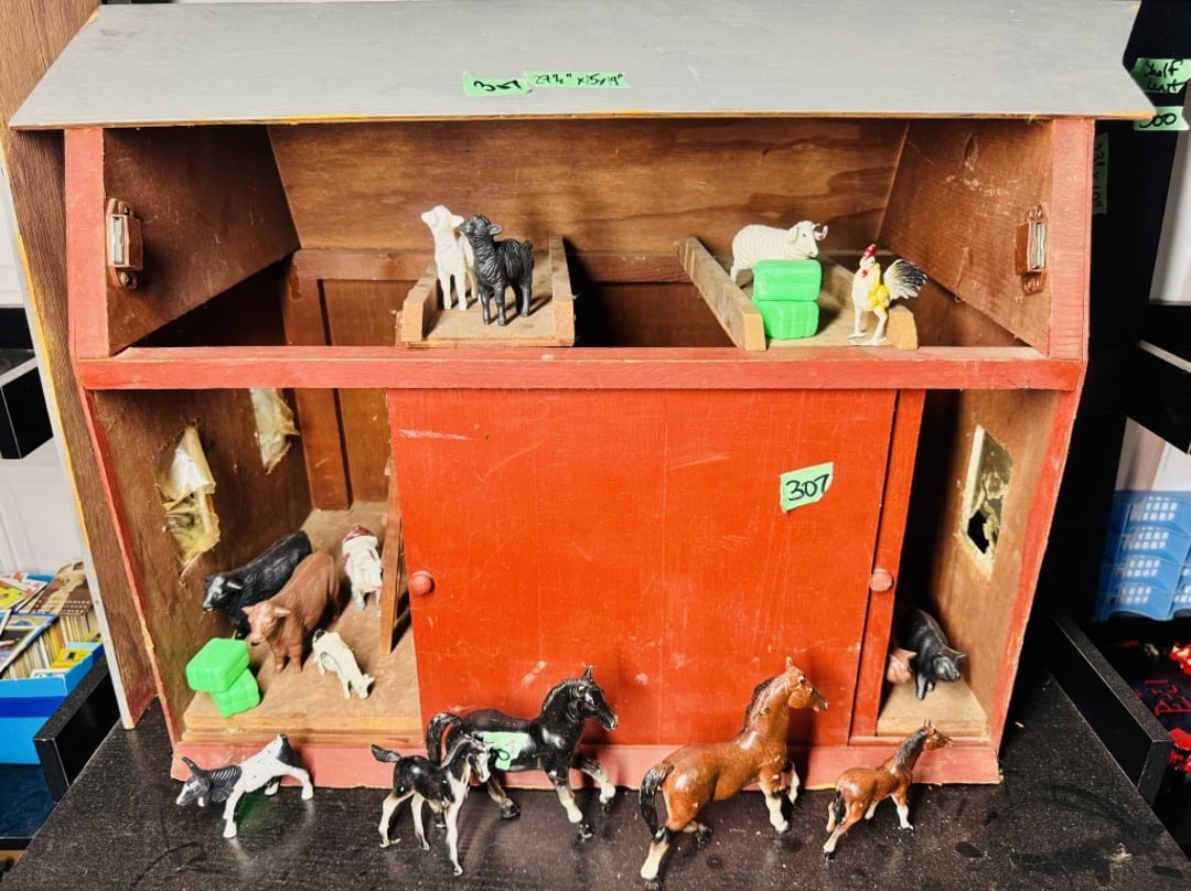 •Lg handcrafted barn w/farm animals, incld 1976 (Lot #307)