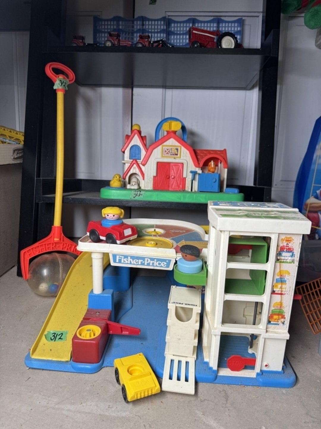 •Vntg Fisher Price car garage, farm, and toddler (Lot #312)