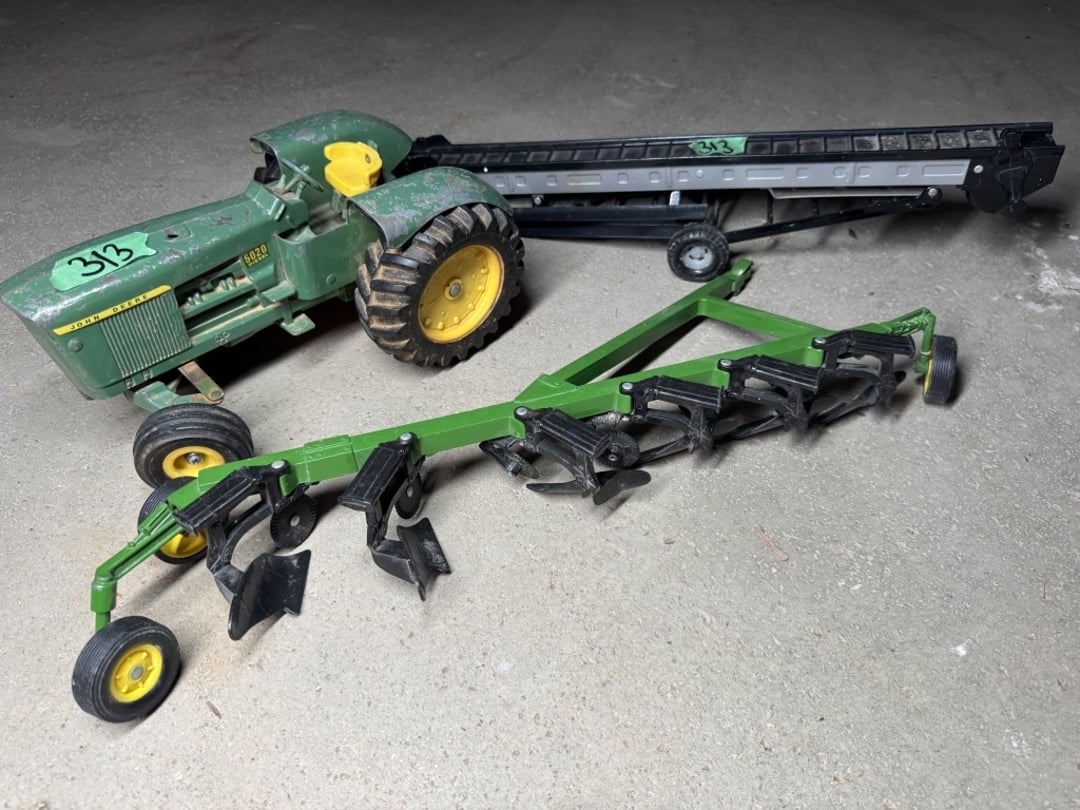 •John Deere tractor, six bottom plow, hay elevator (Lot #313)