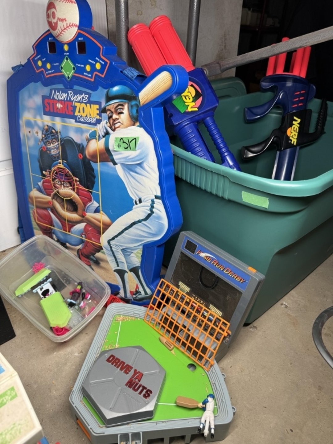 •Nerf guns, nolan Ryan game, legos, plastic tote (Lot #317)