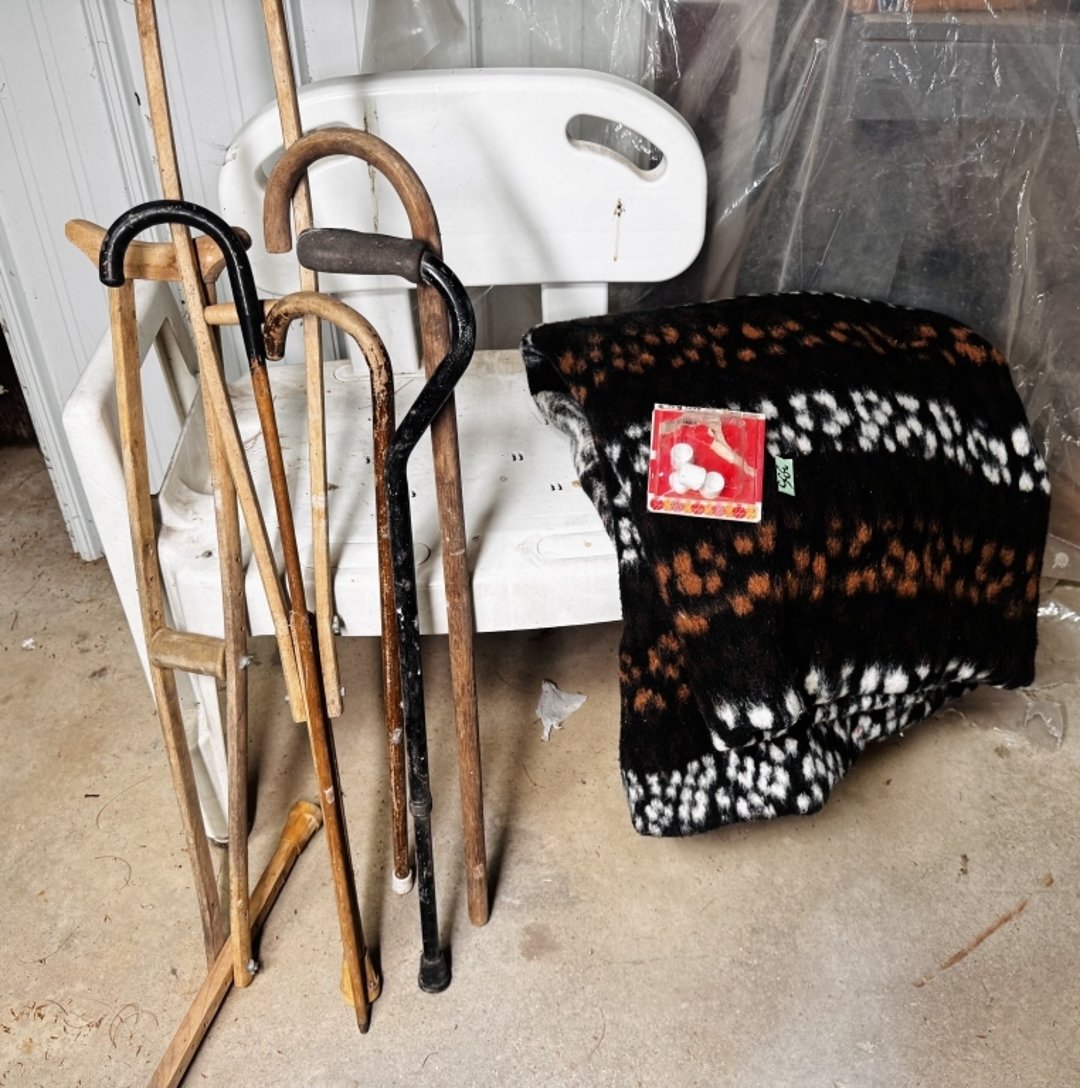 •Alpaca wool blanket, canes, safety bench (Lot #335)