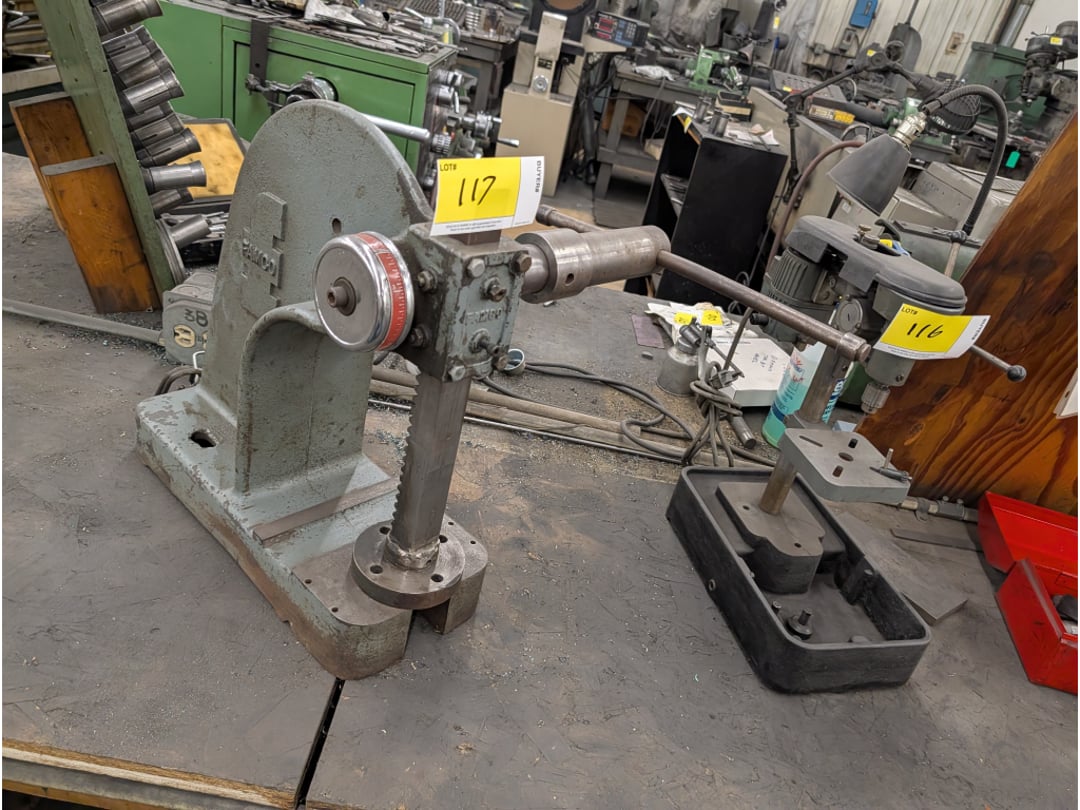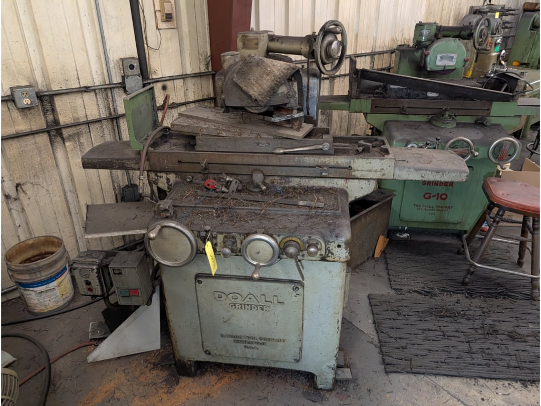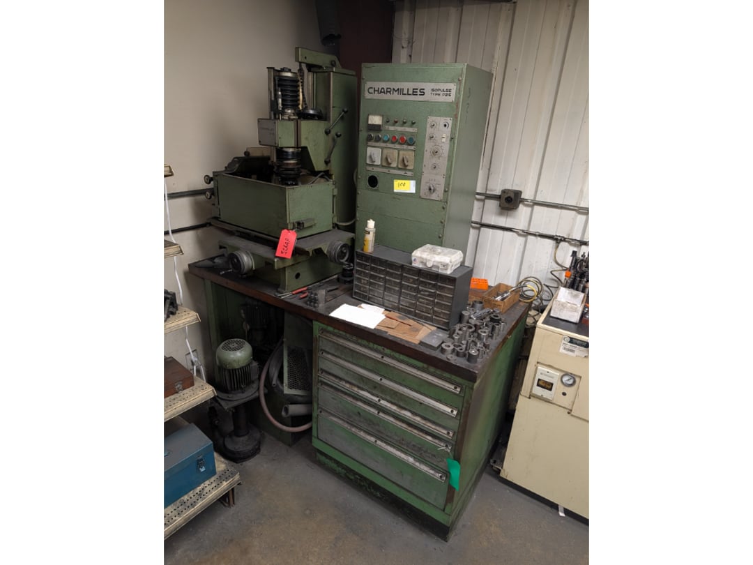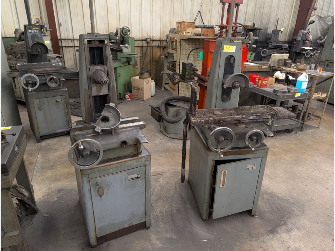 Bridgeport Milling Machine, Abrasive Machine Tool Co Surface Grinder w/ Dust Collector, Harig Super 612 Surface Grinder, (2) 3 Tier Shelves, DoAll G10 Surface Grinder, DoAll Surface Grinder, Harig Super 612 Surface Grinder, 4 Pin Gauge Sets, 2 Drawer Cabinet, Shelf w/ Misc., Pin Gauge Set (Many Missing), Shelf & Rolling Cart w/ Material, Dayton 25 Ton H Frame Shop Press, 2 Harig Surface Grinders, Parts Missing?, 24" x 18" Surface Plate, Mitutoyo 192-116 Height Gauge, Starrett Bore Gauge, Letter and Number Stamps, 3 Sunnen Dial Bore Gages, 2 Pin Gauge Sets, 2 Pin Gauge Sets, Rams Rockford 10AR-16 Hardness Tester, 4-12" Micrometer Set, , Various Gauges, Micrometer, Various Shop Pieces, Gauge, Drill Bits, Clausing Colchester 15 Lathe, Enco 10" Pedestal Grinder, Hardinge DV-59 Lathe, Shovels and Brooms, 3 Phase Air Compressor (Doesn't Work), Large Air Tank, (3) 3' Rolling Shop Carts, Grob 4V-1 Band Saw, Belt Sander, Shelf w/ Misc Hardware, 75" Tall Shelf w/ Taps and Reamers, 42" Tall Bolt Bin, Gauge Block Set, Organizer, Cabinet, 5' Tall Shelf w/ 3 and 4 Jaw Chuck, 42" Tall Bolt Bin w/ Taps, 42" Tall Bolt Bin w/ Dies, Heald Internal Grinder w/ Red Head Spindle, Rolling Shop Cart, Retail Shelf, Rolling Shop Cart, Harig Super 612 Surface Grinder (scrap), Tip Dumpster, Yale Electric Forklift / Stacker (Bad Battery) w/ Charger, 2 Rolling Shop Carts, Brooms, Shovel, Jack Stand, Rolling Dumpster / Bin, Rolling Dumpster / Bin, Floor Safe, 2 / 4 Wheel Cart, Femco WNCL 20/60 Lathe, Shelf w/ Lathe Chuck Jaws, Hardince Cobra 65 CNC Turning Center w/ Conveyor, Cabinet w/ Mill Clamp Sets, Misc Tooling, Cabinet w/ Material, Cabinet w/ Tooling, Acer Ultima 3VK Knee Mill w/ Vise, Bridgeport Series 1 Mill w/ Kurt D675 Vise, Bridgeport Series 1 Mill w/ Vise, Shelf & Stool, 5' Workbench, Collets, Chuck, Metal Shelf, Bolt Bin, 7' Tall Metal Shelf, Retail Display Shelf w/ Misc, 500 lb Chain Hoist , Kysor Johnson Model J Horizontal Band Saw, 79" Tall Rack w/ Stock, Round Bar, , Twentieth Century Welder, Wards Powr Kraft Arc Stabilizer, Skill Saw 14" Metal Chop Saw, Stand, 2 Shelves, Steel, Material Roller, Torch Cart, Hose, Regulator, 79" Tall Rack w/ Stock, Round Bar, , Startrite H250A Horizontal Bandsaw, Nissan Pallet Jack, Pittsburgh Engine Crane, 2 Shop Carts, 79" Tall Shelf w/ Steel Stock, Dewalt 9 Gallon Shop Vac, Steel Bin w/ Fork Pockets, Contents of Workbench, Wilton Vise, Pin Gauge Sets, Pipe Wrenches, Myford Cylindrical Grinder , Clausing 1689 Drill Press, Dresser w/ Misc Hardware, Clausing Colchester 13" Lathe, Clausing Nardini MS1440 E Engine Lathe, 3 Jaw Chuck & Misc, Steel Shelf, Clausing Colchester 13" Lathe, Steel Shelf, Hardinge DV-59 Lathe, Hardinge DV-59 Lathe, Retail Display Shelf, , Charmilles D10 w/ Isopulse P25 EDM w/ Tooling & Cabinet, Shelf w/ Tooling, Easco Sparcatron TM-916 EDM Sinker, Steel Shelf w/ Contents, Electrodes, Parts, Easco Sparcatron Toolmaker 916 EDM Sinker, 2 Shop Carts, 4'& 5' Workbench , 78" Wide Workbench, , Pin Gauges, Mitutoyo Micrometers, Shelf, Rolling Shelf, Surface Plate, Rolling Shop Cart, Steel Shelf w/ Custom Reamers / Tooling, Jet Engine Lathe, Steel Shelf w/ Custom Reamers / Tooling, Jet GH-1340A Geared Head Engine Lathe, Small Benchtop Drill Press, Famco 2 Arbor Press, Drill Bit Sharpener, C Clamp, Blow Gun & Misc, Kobalt Shop Stool, Steel Shelf w/ Custom Reamers / Tooling, , Hardinge DV-59 Lathe, Steel Shelf, Steel Barrels and Trash Cans, Advantage Chiller 3 Phase 230 Volt, Advantage ik-2apt-20hfx Chiller, Advantage SC-2APT-20HFX Chiller 230 Volt 3 Phase, Cincinnati Centerless Grinder, US General 60 Gallon Air Compressor 5 HP 230 Volt 1 Phase, Chicago Pneumatic 80 Gallon Air Compressor, Barrel Rack w/ Drums, Mineral Spirits, Oil, Barrel Rack, 10' Aluminum Stepladder, Wrenches, Hammers, Sockets, Tools, Shelf, Bench Grinder, Kuhlmann SU2 Tool and Cutter Grinder, Measuring Tools and Surface Plate, Steel Drawer Cabinet, Steel Drawer Cabinet, Pin Gauge Sets, Pin Gauge Set, Pin Gauge Set, Pin Gauge Sets, Shelf, Misc, (3) Charmilles Technologies Robofil 290 Wire EDM Machines, Graymills HK150 Parts Washer, 5' Workbench w/ Vise, Steel Material Rack, Nichols Reamer Machine , Snow Shovels and Ice Scraper, Toolbox and Baldor Bench Grinder, Rolling Shop Cart, 78" Tall Steel Cabinet, 78" Tall Steel Cabinet, Sterling Drill Grinder, Desks, File Cabinets, TVs, Chairs, Desk, Mini Refrigerator, File Cabinet, L Shaped Office Desk, 3 Hon File Cabinets, 3 Hon File Cabinets & MORE!!