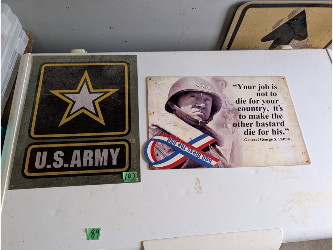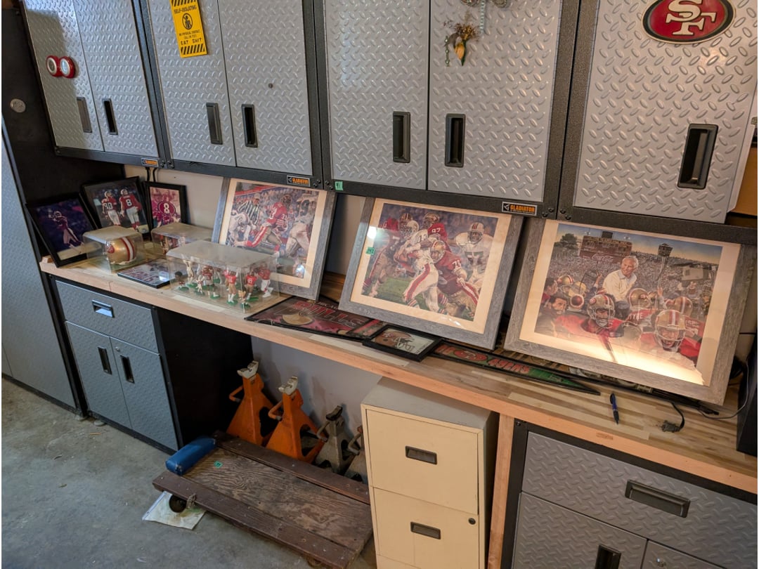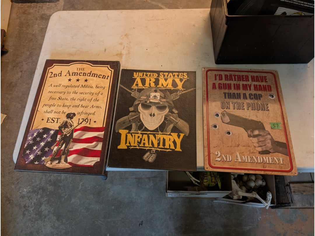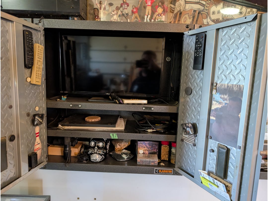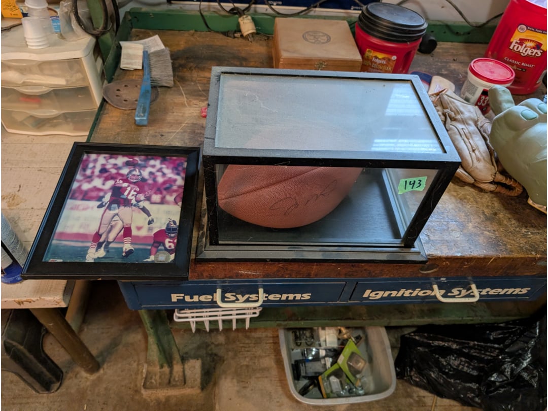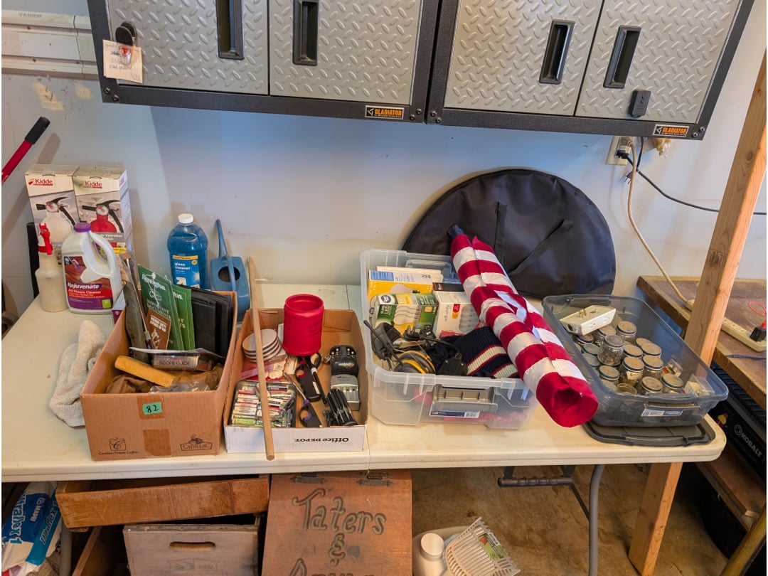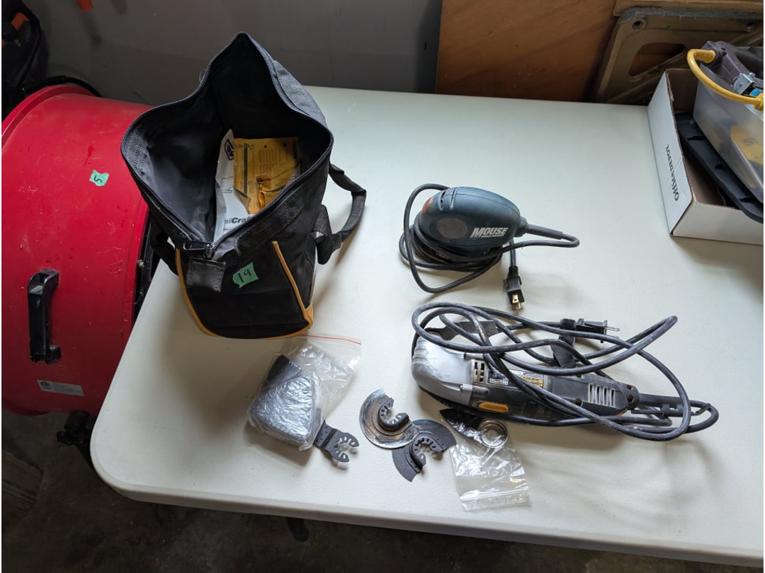 Stihl RE90 Plus Electric Pressure Washer, Black And Decker Band Saw, Soleus Air Portable Air Conditioner, 24" Rolling Floor Fan, Dewalt DWD520 1/2" Hammer Drill, Dri-Eaz F188 Turbo Air Mover, Lasko Misto Mister, , Extension Cord Reel, Pipe Clamps, Levels, Yard Sticks, Craftsman 16" Variable Speed Scroll Saw, 6" Bench Grinder, 5" Vise, Gun Cleaning Kit w/ Box / Gun Stand, Dewalt Jig Saw, Dewalt Random Orbit Palm Sander, Dewalt Reciprocating Saw, Stapler, Solder Iron, Rasp, Plane, Rockwell Multi Tool and Mouse Sander, Kreg Jig, Accessories, Screws, Tub of Wood Clamps, Skil Plunge Router w/ Accessories, Angle Grinder, Circular Saw, Finishing Sander, Dewalt 18 Volt Drill, Battery, Charger, Various Cordless Tools and Batteries, 2 Tool Sets and Heat Gun, Machetes, Trench Shovel, Fiskars, BG, , Kelly Piano Soundboard, Camillus Knives and Trench Shovel, Dremel Hatch Project Kit, Organizer w/ Tape, Dremel w/ Accessories, Bose PS28 Sub with 5 Cube Speakers, Sandpaper and Sanding Blocks, 2 Coolers, Kids Pool Table and Air Hockey Table, Masonry / Drywall Tools, Brushes, Knife Sharpeners, Glues, Epoxies, Tools, Torch, Pneumatic Vacuum, Drill, Bis Kit System, Tool Box, Drill Doctor in Case, Costway Ice Cube Maker, Miter Box, Hand Saws, Tool Belts, Nail Bags, Kimball Midwest Electrician Screwdriver Set, Bostitch Screwdriver Set, Belt Sander and Detail Sander, Ryobi Sander, Worx Saw, Polisher, 2 Sanders, Better Homes and Gardens Plant Hangers, 2 Lorell Wall Pockets, United States Brewing Co. Chicago Crate w/ 5 Antique Ball Jars, Micrometer, Flaring Tool, Fish Tape, Bata Mickey Mouse Boots, Gas Mask, American Flags, Bushnell and Olympus Binoculars, JVC VCR / DVD Recorder DR-MV150, RCA VCR, InFocus DLP Projector, Coleman Stove, Screwdrivers, Spray Shelter, Tool Box, 3 Boxes of Skeleton / Halloween Decorators, 3 Signs, Crate of Antique Tools, Central Tools Tire & Wheel Runout Gauge 1", Craftsman Toolbox w/ Dremel and Woodworking Tools, Extension Cord, Saw Blades, Knee Pads, Rolling Shop Cart w/ CO2 & Nitrogen Tanks, Caulk, Tape Measures, 2 Tarps & Tote, Tote of Coozies, 24 Pint Canning Jars, Antique Lanterns and Scale, Caulk, Flex Seal, Foam, Stencils, Tote of Extension Cords, Totes, Lug Nuts, Garden Tools, Misc., Knife and Rope, Sanding and Grinding Wheels, Tote of Hammers, 3 Boxes of Spray Paint, 3 Coolers, Various Totes, U.S. Army Painted Gas Can, Ammo Cans, Army Ranger, Fan and Humidifier, 2 Expanding Garden Hoses, 2 Ton Jack, Fire Extinguishers, Hardware, Batteries, Light Bulbs, Headphones, Dewalt 10" Double Bevel Sliding Compound Miter Saw w/ Stand, Sheets of OSB & Drywall, Kobalt 7" Tile Saw, Chicago Bulls Decorators, Garden Tools / Broom / Squeegee On Wall, Signs / Pictures Hanging On Wall, Hotpoint Chest Freezer, 4' Wide Rolling Work Table, Gladiator Cabinets / Workbench 9'5" Long, 6' Tall x 3' Wide Gladiator Cabinet, 6' Tall x 3' Wide Gladiator Cabinet, 2 Wall Hanging Gladiator Cabinets, 60 Gallon Campbell Hausfeld Air Compressor w/ Hose Reel, Screws, Various Hardware, Nails, Small TV and Misc, Hardware and Misc. Garage Supply, 4 Jack Stands, Creeper, , Glue Gun, Organizers, Savage 93R17 .17 Hmr Bolt Action Rifle, Bose Headphones, Alarm Clock, Remington 522 Viper .22 Semi Auto Rifle, Beer Advertising, Hatchet, Hi Point 9mm Rifle, 2 Signs, Smith and Wesson SW40VE Pistol w/ 4 Magazines, Signs / Pictures, Easa-FT .22 Revolver, Verious Decorators, Davis Industries P-380 .380 Auto Pistol, Brass Cannon, Raven Arms MP-25 .25 Auto Pistol, Model Train Sets, 3 Holsters, Lodge 12" Cast Iron Dutch Oven, Springfield XD-S Model 27 IWB Holster, DRC-LSX10 Drone, Various Holsters, Belts, Shotgun Shell Holder Belt, Crates / Decorators, 4 Bridgestone Blizzak 225/60R16 Tires w/ GM Rims, Hoff-Brau Brewing Fort Wayne Crate, 3 Other Wood Crates, , Deebot Ecovacs Robot Sweeper, , Decorator Baskets, , Cleaning Supplies, 2 Irons, , 14 Milk Crates and Tote, , 2 CNC Laser Wood Engravers , , Jumper Cables, Bottle Jacks, Trash Can and Chair, Kids Toys, Skates, Scooter, Bat, Snowboard, Work Light, Taters & Onyuns Bin, Pioneer VSX-523 Receiver w/ Marantz Speakers, 49ers Decorators On Wall, 49ers Decorators / Collectibles, Joe Montana Signed Football and Picture, Best One Tire Light Up Sign, Tire Signs On Wall, Workbench w/ Misc. Supplies, 32" Samsung TV, DVD Player, 6' Workbench w/ Light & Hardware, Craftsman 4 Gallon Air Compressor, 2 Stools,