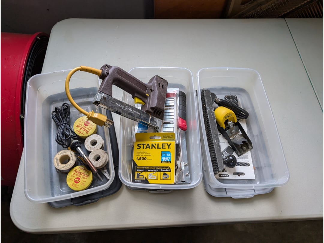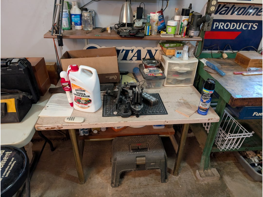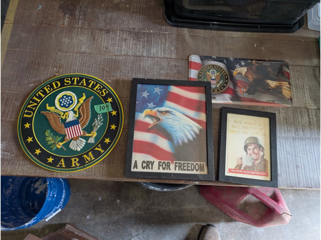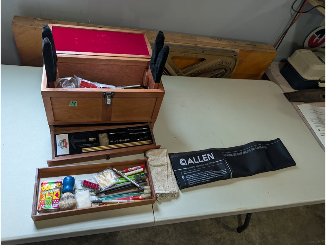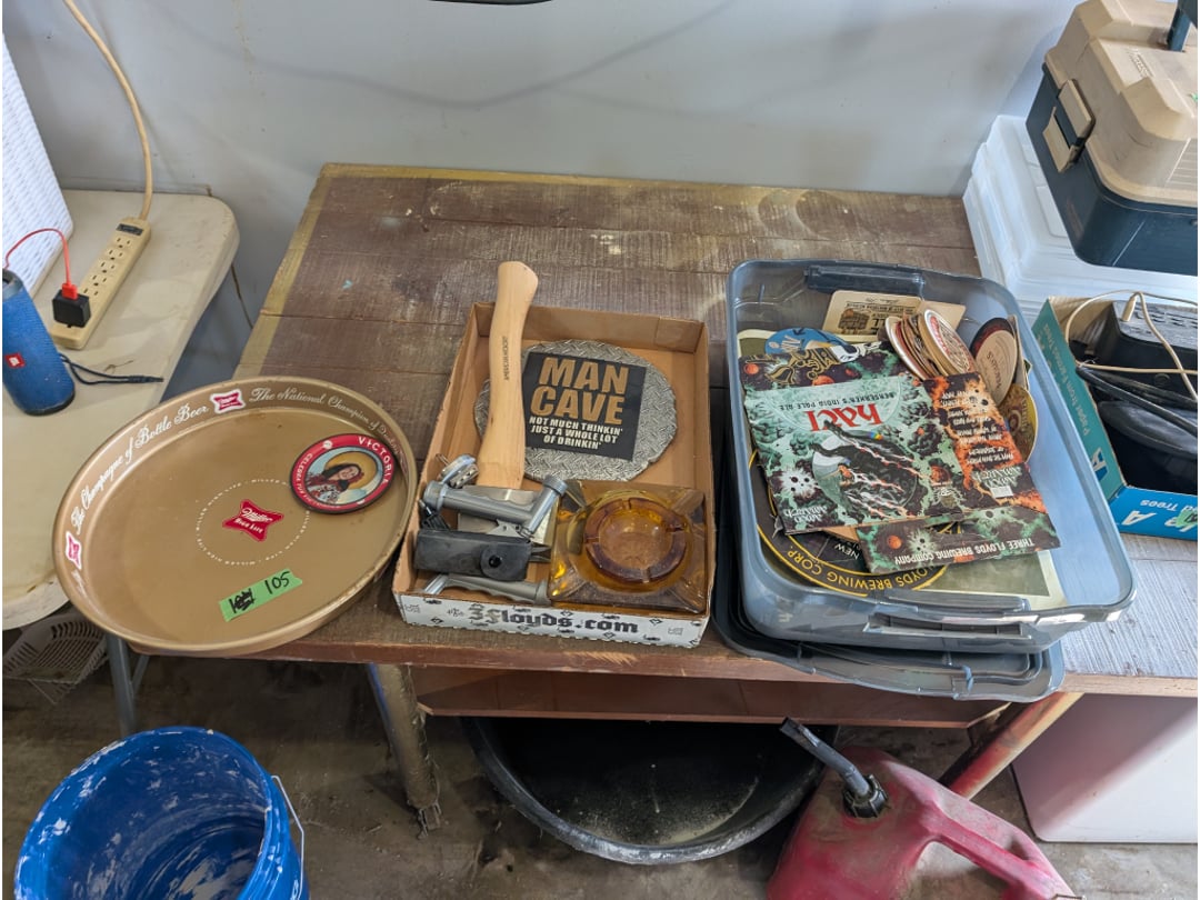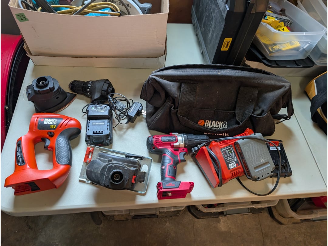 Stihl RE90 Plus Electric Pressure Washer, Black And Decker Band Saw, Soleus Air Portable Air Conditioner, 24" Rolling Floor Fan, Dewalt DWD520 1/2" Hammer Drill, Dri-Eaz F188 Turbo Air Mover, Lasko Misto Mister, , Extension Cord Reel, Pipe Clamps, Levels, Yard Sticks, Craftsman 16" Variable Speed Scroll Saw, 6" Bench Grinder, 5" Vise, Gun Cleaning Kit w/ Box / Gun Stand, Dewalt Jig Saw, Dewalt Random Orbit Palm Sander, Dewalt Reciprocating Saw, Stapler, Solder Iron, Rasp, Plane, Rockwell Multi Tool and Mouse Sander, Kreg Jig, Accessories, Screws, Tub of Wood Clamps, Skil Plunge Router w/ Accessories, Angle Grinder, Circular Saw, Finishing Sander, Dewalt 18 Volt Drill, Battery, Charger, Various Cordless Tools and Batteries, 2 Tool Sets and Heat Gun, Machetes, Trench Shovel, Fiskars, BG, , Kelly Piano Soundboard, Camillus Knives and Trench Shovel, Dremel Hatch Project Kit, Organizer w/ Tape, Dremel w/ Accessories, Bose PS28 Sub with 5 Cube Speakers, Sandpaper and Sanding Blocks, 2 Coolers, Kids Pool Table and Air Hockey Table, Masonry / Drywall Tools, Brushes, Knife Sharpeners, Glues, Epoxies, Tools, Torch, Pneumatic Vacuum, Drill, Bis Kit System, Tool Box, Drill Doctor in Case, Costway Ice Cube Maker, Miter Box, Hand Saws, Tool Belts, Nail Bags, Kimball Midwest Electrician Screwdriver Set, Bostitch Screwdriver Set, Belt Sander and Detail Sander, Ryobi Sander, Worx Saw, Polisher, 2 Sanders, Better Homes and Gardens Plant Hangers, 2 Lorell Wall Pockets, United States Brewing Co. Chicago Crate w/ 5 Antique Ball Jars, Micrometer, Flaring Tool, Fish Tape, Bata Mickey Mouse Boots, Gas Mask, American Flags, Bushnell and Olympus Binoculars, JVC VCR / DVD Recorder DR-MV150, RCA VCR, InFocus DLP Projector, Coleman Stove, Screwdrivers, Spray Shelter, Tool Box, 3 Boxes of Skeleton / Halloween Decorators, 3 Signs, Crate of Antique Tools, Central Tools Tire & Wheel Runout Gauge 1", Craftsman Toolbox w/ Dremel and Woodworking Tools, Extension Cord, Saw Blades, Knee Pads, Rolling Shop Cart w/ CO2 & Nitrogen Tanks, Caulk, Tape Measures, 2 Tarps & Tote, Tote of Coozies, 24 Pint Canning Jars, Antique Lanterns and Scale, Caulk, Flex Seal, Foam, Stencils, Tote of Extension Cords, Totes, Lug Nuts, Garden Tools, Misc., Knife and Rope, Sanding and Grinding Wheels, Tote of Hammers, 3 Boxes of Spray Paint, 3 Coolers, Various Totes, U.S. Army Painted Gas Can, Ammo Cans, Army Ranger, Fan and Humidifier, 2 Expanding Garden Hoses, 2 Ton Jack, Fire Extinguishers, Hardware, Batteries, Light Bulbs, Headphones, Dewalt 10" Double Bevel Sliding Compound Miter Saw w/ Stand, Sheets of OSB & Drywall, Kobalt 7" Tile Saw, Chicago Bulls Decorators, Garden Tools / Broom / Squeegee On Wall, Signs / Pictures Hanging On Wall, Hotpoint Chest Freezer, 4' Wide Rolling Work Table, Gladiator Cabinets / Workbench 9'5" Long, 6' Tall x 3' Wide Gladiator Cabinet, 6' Tall x 3' Wide Gladiator Cabinet, 2 Wall Hanging Gladiator Cabinets, 60 Gallon Campbell Hausfeld Air Compressor w/ Hose Reel, Screws, Various Hardware, Nails, Small TV and Misc, Hardware and Misc. Garage Supply, 4 Jack Stands, Creeper, , Glue Gun, Organizers, Savage 93R17 .17 Hmr Bolt Action Rifle, Bose Headphones, Alarm Clock, Remington 522 Viper .22 Semi Auto Rifle, Beer Advertising, Hatchet, Hi Point 9mm Rifle, 2 Signs, Smith and Wesson SW40VE Pistol w/ 4 Magazines, Signs / Pictures, Easa-FT .22 Revolver, Verious Decorators, Davis Industries P-380 .380 Auto Pistol, Brass Cannon, Raven Arms MP-25 .25 Auto Pistol, Model Train Sets, 3 Holsters, Lodge 12" Cast Iron Dutch Oven, Springfield XD-S Model 27 IWB Holster, DRC-LSX10 Drone, Various Holsters, Belts, Shotgun Shell Holder Belt, Crates / Decorators, 4 Bridgestone Blizzak 225/60R16 Tires w/ GM Rims, Hoff-Brau Brewing Fort Wayne Crate, 3 Other Wood Crates, , Deebot Ecovacs Robot Sweeper, , Decorator Baskets, , Cleaning Supplies, 2 Irons, , 14 Milk Crates and Tote, , 2 CNC Laser Wood Engravers , , Jumper Cables, Bottle Jacks, Trash Can and Chair, Kids Toys, Skates, Scooter, Bat, Snowboard, Work Light, Taters & Onyuns Bin, Pioneer VSX-523 Receiver w/ Marantz Speakers, 49ers Decorators On Wall, 49ers Decorators / Collectibles, Joe Montana Signed Football and Picture, Best One Tire Light Up Sign, Tire Signs On Wall, Workbench w/ Misc. Supplies, 32" Samsung TV, DVD Player, 6' Workbench w/ Light & Hardware, Craftsman 4 Gallon Air Compressor, 2 Stools,