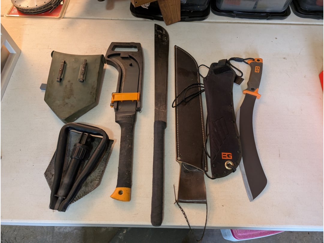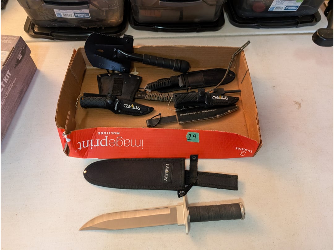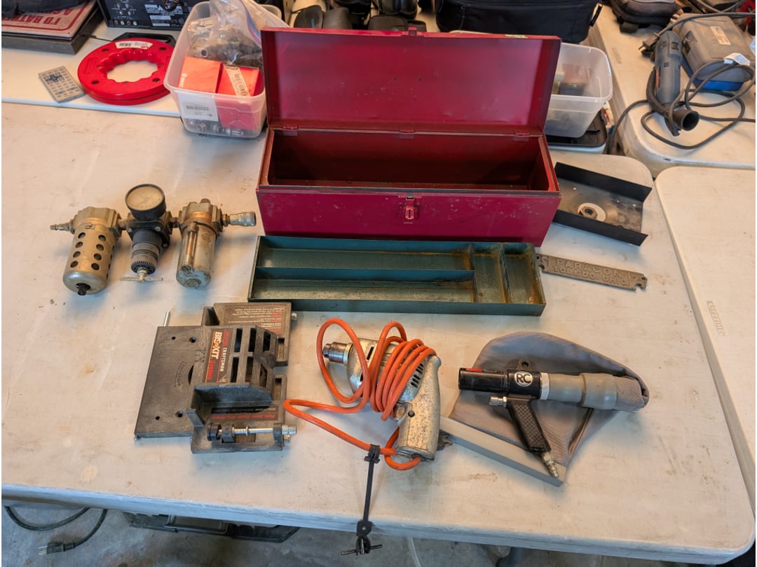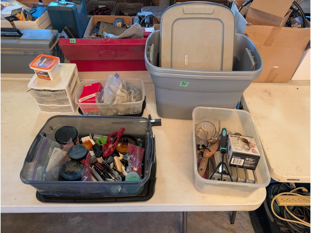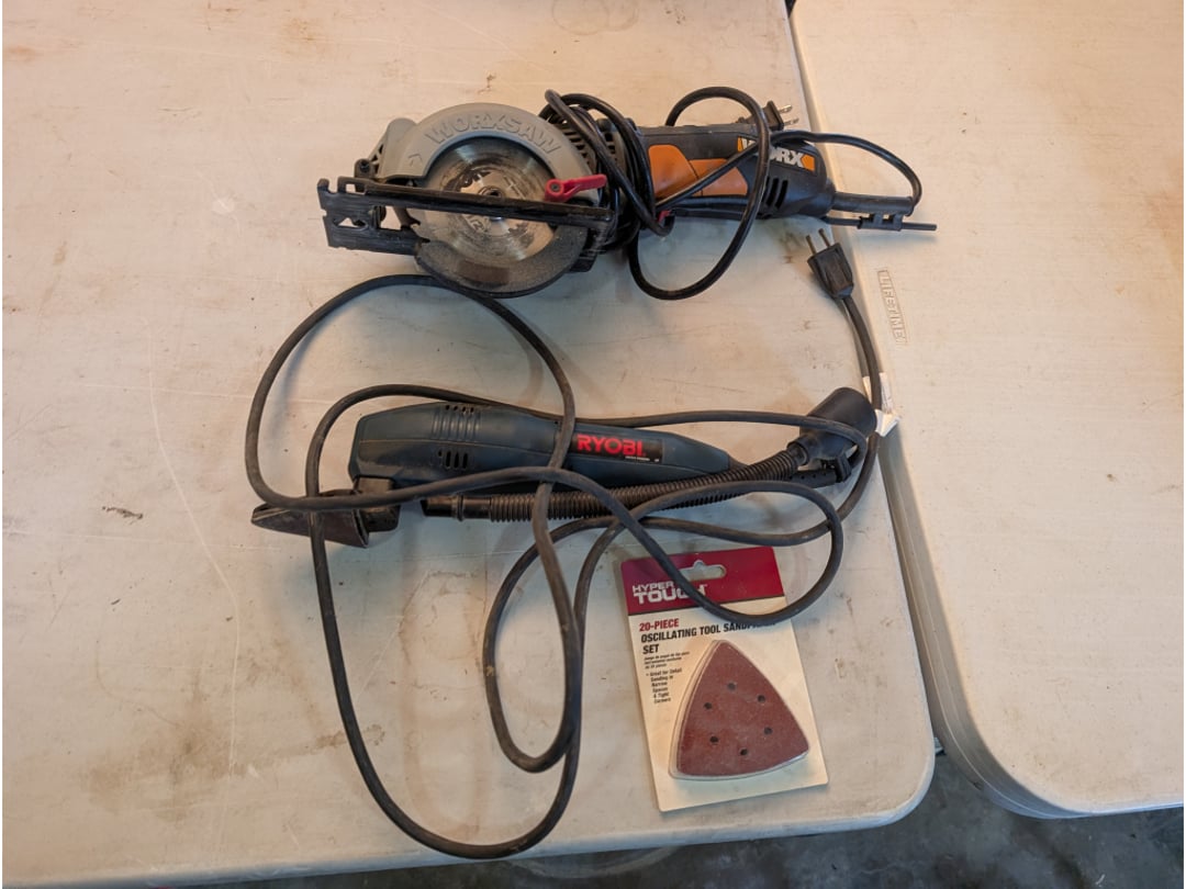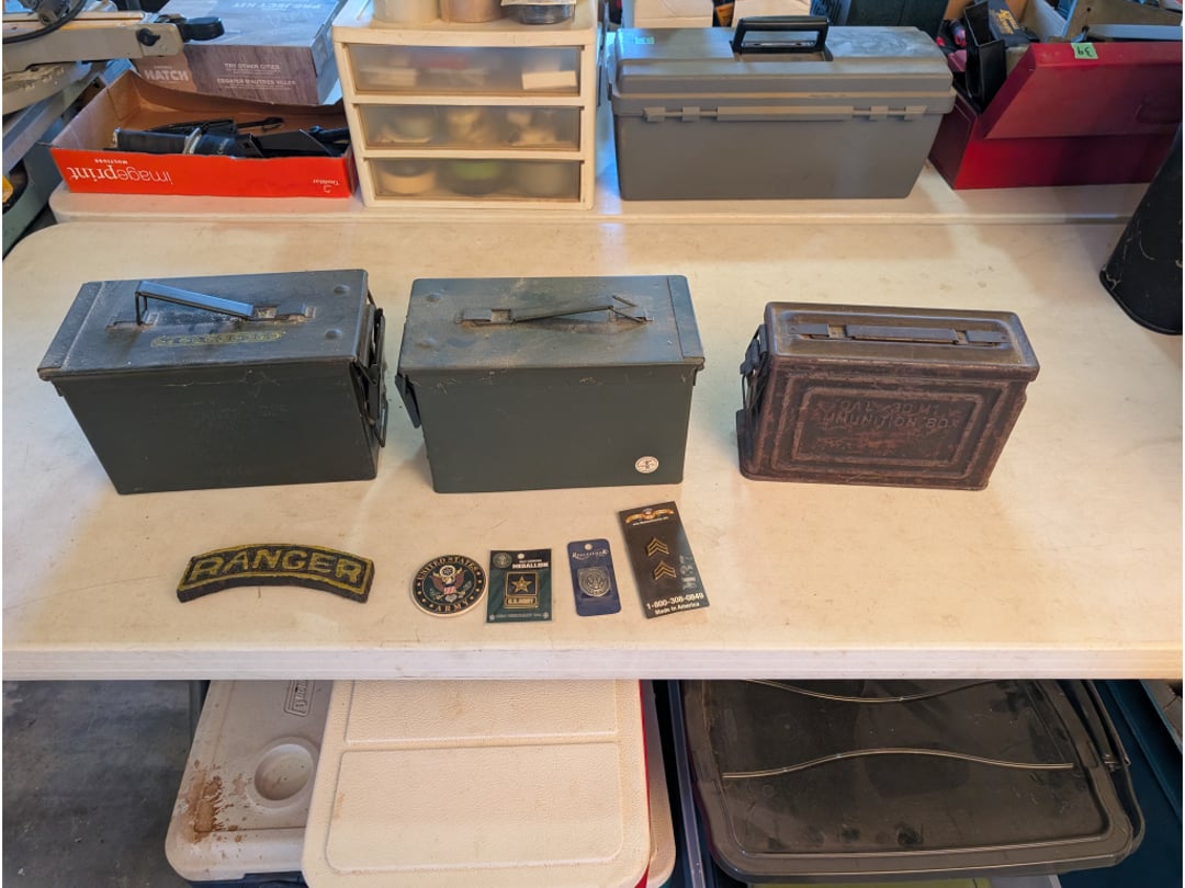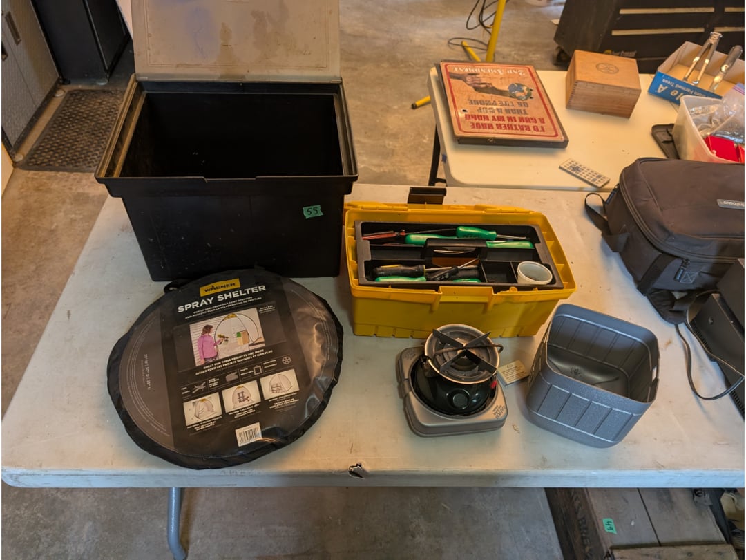Stihl RE90 Plus Electric Pressure Washer, Black And Decker Band Saw, Soleus Air Portable Air Conditioner, 24" Rolling Floor Fan, Dewalt DWD520 1/2" Hammer Drill, Dri-Eaz F188 Turbo Air Mover, Lasko Misto Mister, , Extension Cord Reel, Pipe Clamps, Levels, Yard Sticks, Craftsman 16" Variable Speed Scroll Saw, 6" Bench Grinder, 5" Vise, Gun Cleaning Kit w/ Box / Gun Stand, Dewalt Jig Saw, Dewalt Random Orbit Palm Sander, Dewalt Reciprocating Saw, Stapler, Solder Iron, Rasp, Plane, Rockwell Multi Tool and Mouse Sander, Kreg Jig, Accessories, Screws, Tub of Wood Clamps, Skil Plunge Router w/ Accessories, Angle Grinder, Circular Saw, Finishing Sander, Dewalt 18 Volt Drill, Battery, Charger, Various Cordless Tools and Batteries, 2 Tool Sets and Heat Gun, Machetes, Trench Shovel, Fiskars, BG, , Kelly Piano Soundboard, Camillus Knives and Trench Shovel, Dremel Hatch Project Kit, Organizer w/ Tape, Dremel w/ Accessories, Bose PS28 Sub with 5 Cube Speakers, Sandpaper and Sanding Blocks, 2 Coolers, Kids Pool Table and Air Hockey Table, Masonry / Drywall Tools, Brushes, Knife Sharpeners, Glues, Epoxies, Tools, Torch, Pneumatic Vacuum, Drill, Bis Kit System, Tool Box, Drill Doctor in Case, Costway Ice Cube Maker, Miter Box, Hand Saws, Tool Belts, Nail Bags, Kimball Midwest Electrician Screwdriver Set, Bostitch Screwdriver Set, Belt Sander and Detail Sander, Ryobi Sander, Worx Saw, Polisher, 2 Sanders, Better Homes and Gardens Plant Hangers, 2 Lorell Wall Pockets, United States Brewing Co. Chicago Crate w/ 5 Antique Ball Jars, Micrometer, Flaring Tool, Fish Tape, Bata Mickey Mouse Boots, Gas Mask, American Flags, Bushnell and Olympus Binoculars, JVC VCR / DVD Recorder DR-MV150, RCA VCR, InFocus DLP Projector, Coleman Stove, Screwdrivers, Spray Shelter, Tool Box, 3 Boxes of Skeleton / Halloween Decorators, 3 Signs, Crate of Antique Tools, Central Tools Tire & Wheel Runout Gauge 1", Craftsman Toolbox w/ Dremel and Woodworking Tools, Extension Cord, Saw Blades, Knee Pads, Rolling Shop Cart w/ CO2 & Nitrogen Tanks, Caulk, Tape Measures, 2 Tarps & Tote, Tote of Coozies, 24 Pint Canning Jars, Antique Lanterns and Scale, Caulk, Flex Seal, Foam, Stencils, Tote of Extension Cords, Totes, Lug Nuts, Garden Tools, Misc., Knife and Rope, Sanding and Grinding Wheels, Tote of Hammers, 3 Boxes of Spray Paint, 3 Coolers, Various Totes, U.S. Army Painted Gas Can, Ammo Cans, Army Ranger, Fan and Humidifier, 2 Expanding Garden Hoses, 2 Ton Jack, Fire Extinguishers, Hardware, Batteries, Light Bulbs, Headphones, Dewalt 10" Double Bevel Sliding Compound Miter Saw w/ Stand, Sheets of OSB & Drywall, Kobalt 7" Tile Saw, Chicago Bulls Decorators, Garden Tools / Broom / Squeegee On Wall, Signs / Pictures Hanging On Wall, Hotpoint Chest Freezer, 4' Wide Rolling Work Table, Gladiator Cabinets / Workbench 9'5" Long, 6' Tall x 3' Wide Gladiator Cabinet, 6' Tall x 3' Wide Gladiator Cabinet, 2 Wall Hanging Gladiator Cabinets, 60 Gallon Campbell Hausfeld Air Compressor w/ Hose Reel, Screws, Various Hardware, Nails, Small TV and Misc, Hardware and Misc. Garage Supply, 4 Jack Stands, Creeper, , Glue Gun, Organizers, Savage 93R17 .17 Hmr Bolt Action Rifle, Bose Headphones, Alarm Clock, Remington 522 Viper .22 Semi Auto Rifle, Beer Advertising, Hatchet, Hi Point 9mm Rifle, 2 Signs, Smith and Wesson SW40VE Pistol w/ 4 Magazines, Signs / Pictures, Easa-FT .22 Revolver, Verious Decorators, Davis Industries P-380 .380 Auto Pistol, Brass Cannon, Raven Arms MP-25 .25 Auto Pistol, Model Train Sets, 3 Holsters, Lodge 12" Cast Iron Dutch Oven, Springfield XD-S Model 27 IWB Holster, DRC-LSX10 Drone, Various Holsters, Belts, Shotgun Shell Holder Belt, Crates / Decorators, 4 Bridgestone Blizzak 225/60R16 Tires w/ GM Rims, Hoff-Brau Brewing Fort Wayne Crate, 3 Other Wood Crates, , Deebot Ecovacs Robot Sweeper, , Decorator Baskets, , Cleaning Supplies, 2 Irons, , 14 Milk Crates and Tote, , 2 CNC Laser Wood Engravers , , Jumper Cables, Bottle Jacks, Trash Can and Chair, Kids Toys, Skates, Scooter, Bat, Snowboard, Work Light, Taters & Onyuns Bin, Pioneer VSX-523 Receiver w/ Marantz Speakers, 49ers Decorators On Wall, 49ers Decorators / Collectibles, Joe Montana Signed Football and Picture, Best One Tire Light Up Sign, Tire Signs On Wall, Workbench w/ Misc. Supplies, 32" Samsung TV, DVD Player, 6' Workbench w/ Light & Hardware, Craftsman 4 Gallon Air Compressor, 2 Stools,