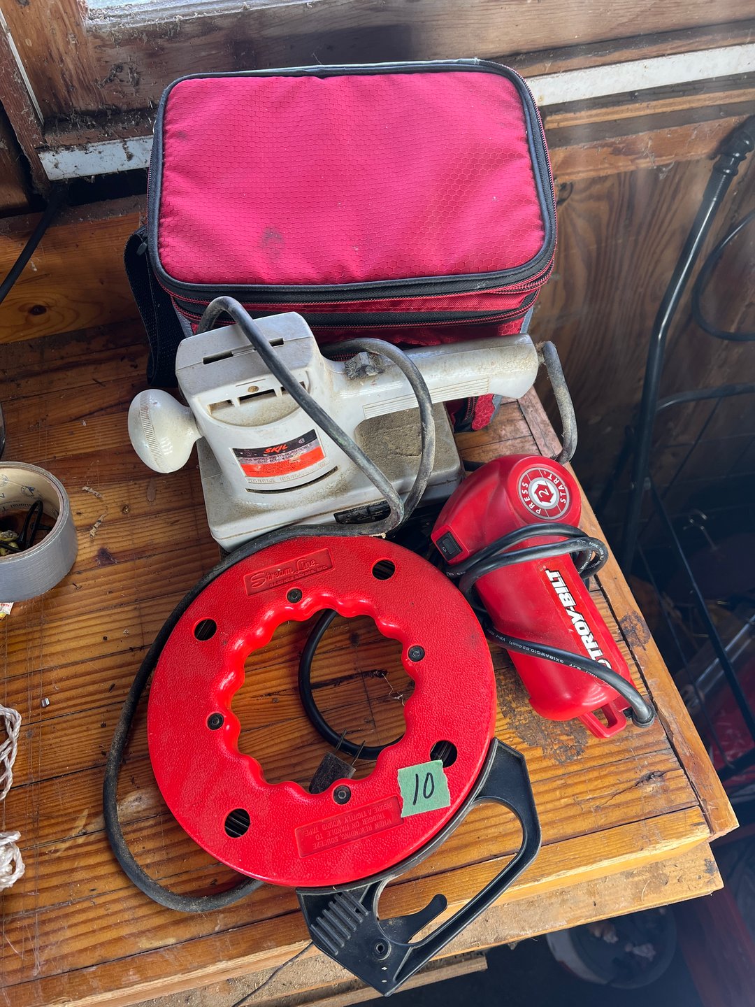 •Steel tape,Troy-Bilt Electric Starter, Skil Sander, Cooler (Lot #10)