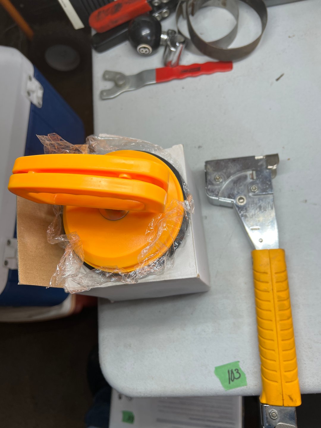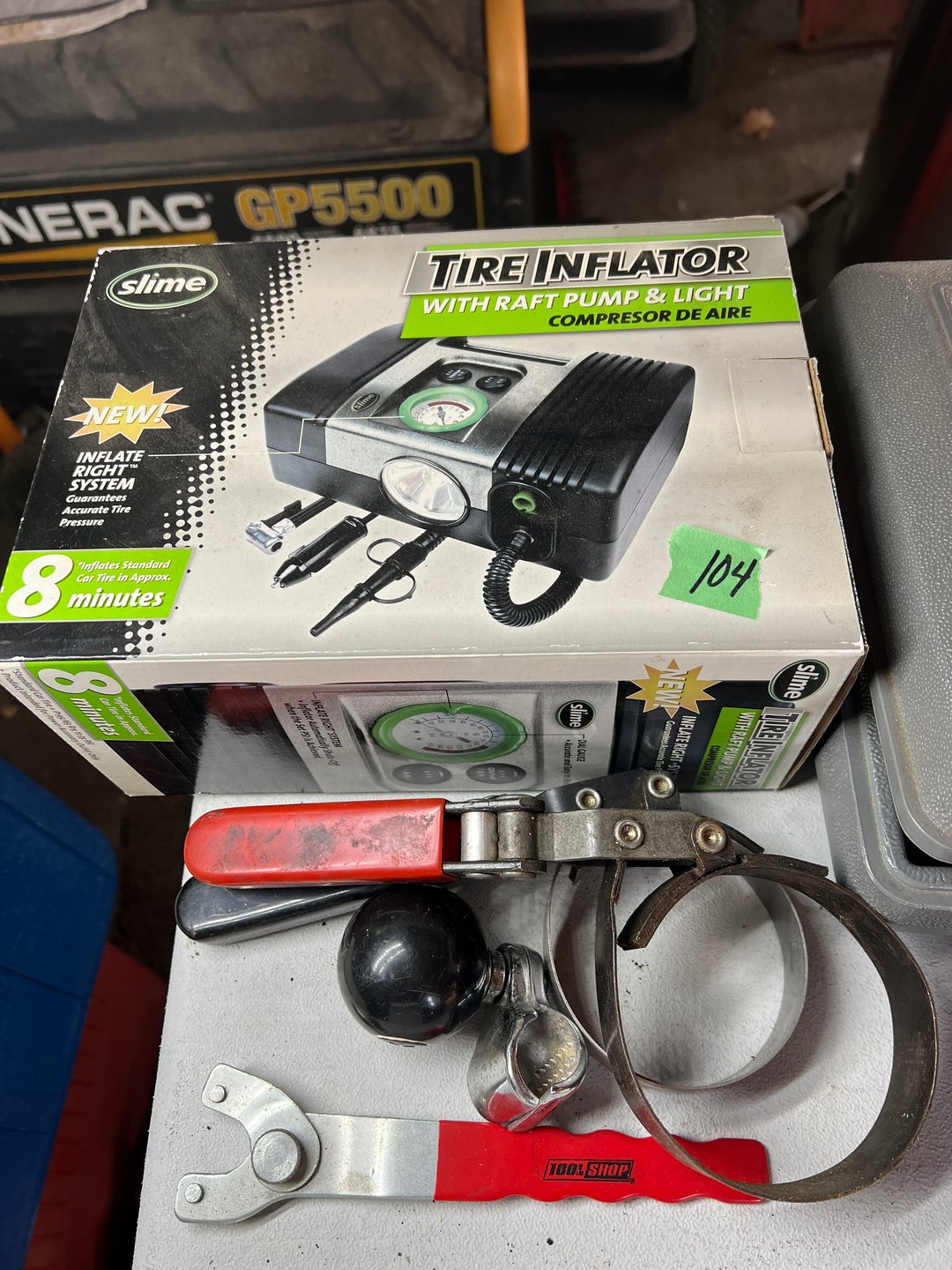 •Tire Inflator,Oil Filter Changer, Steering Wheel Knob (Lot #104)