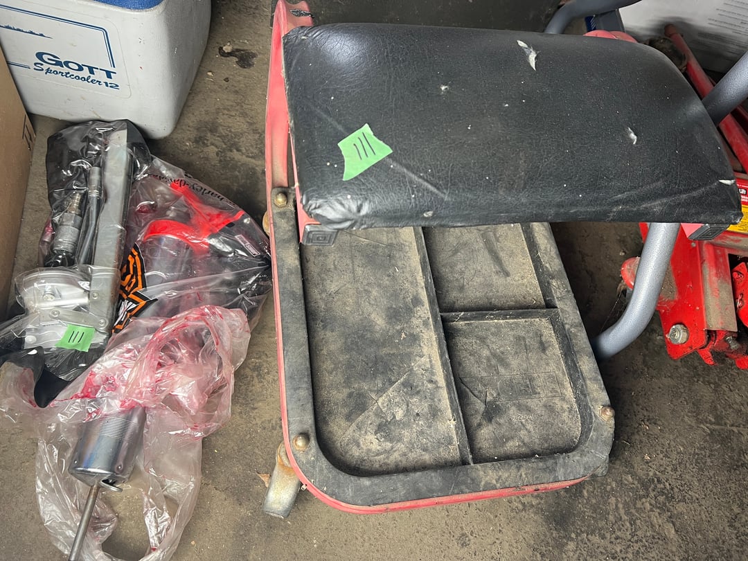 •Garage Stool, 2 SS Grease Guns (Lot #111)