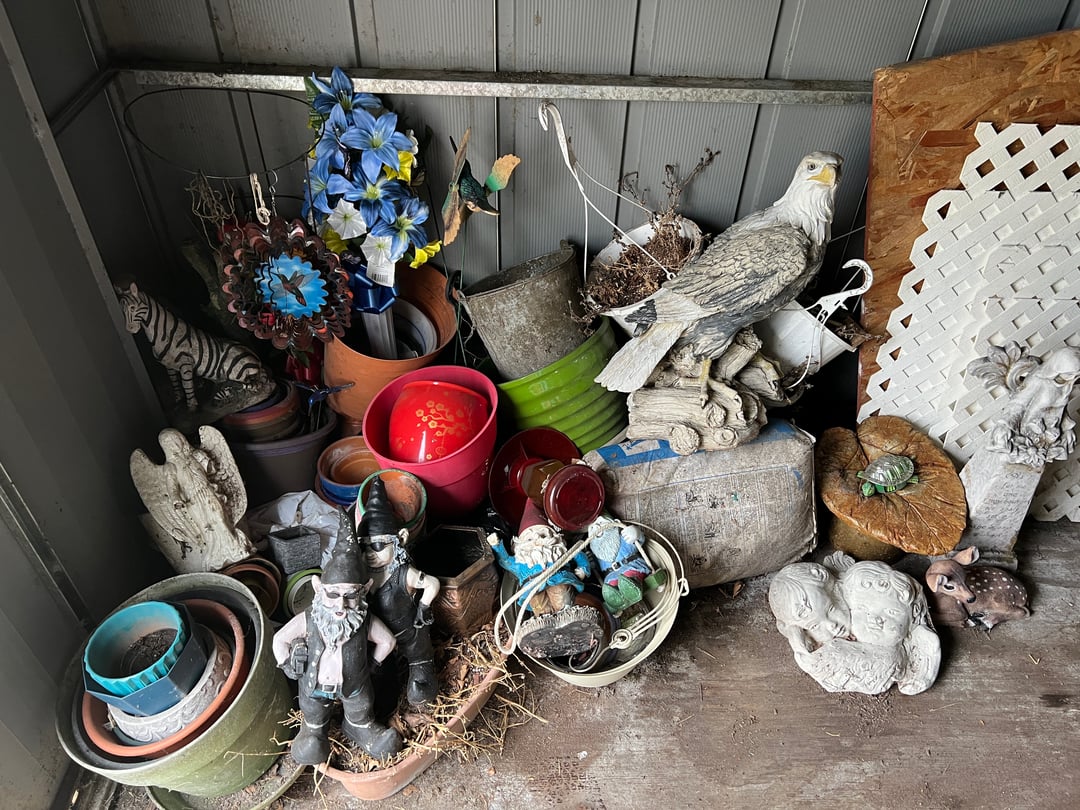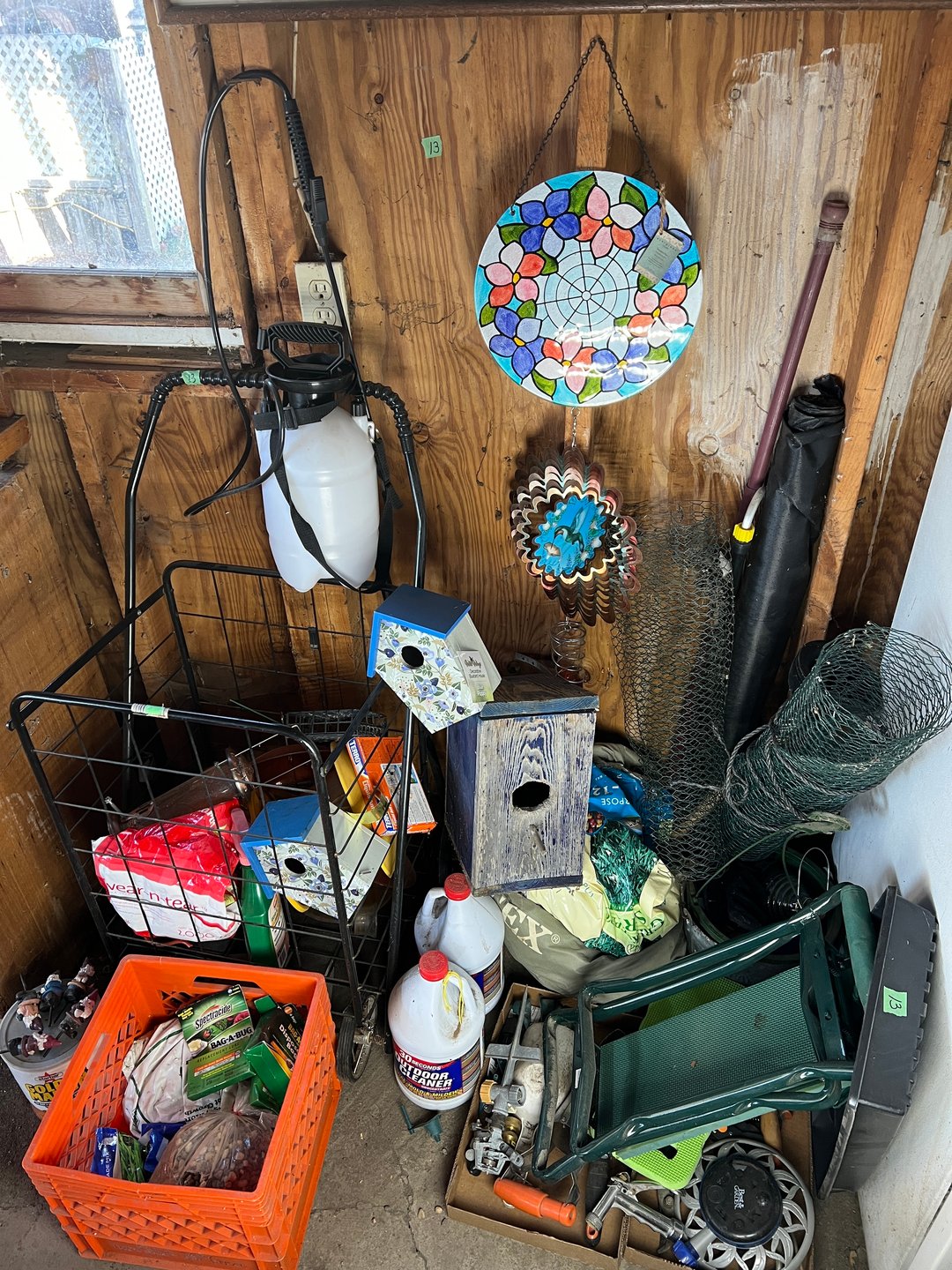 •Flea Mkt Cart, Birdfeeders, sprayer, garden supplies, (Lot #13)