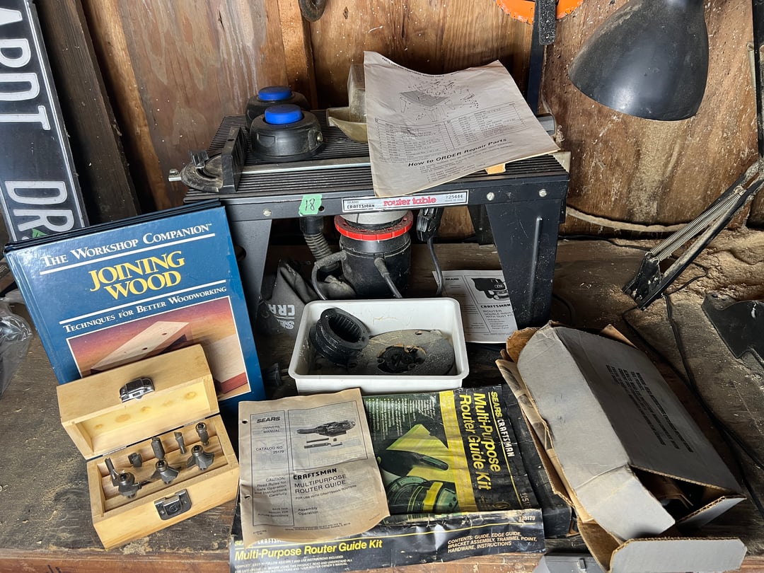 •Router table w/ Router & Bits, Guide Kit, Mortising Kit (Lot #18)