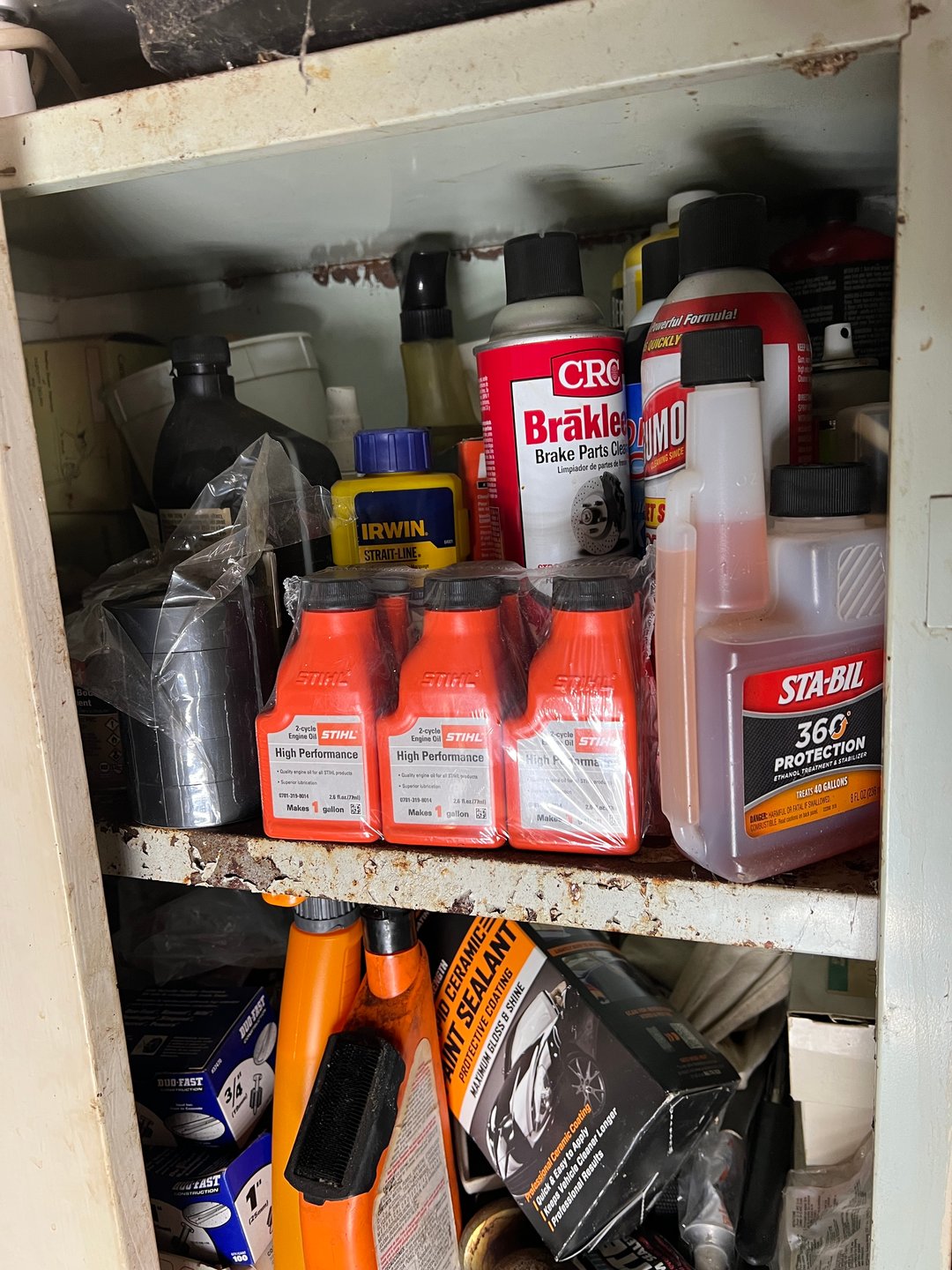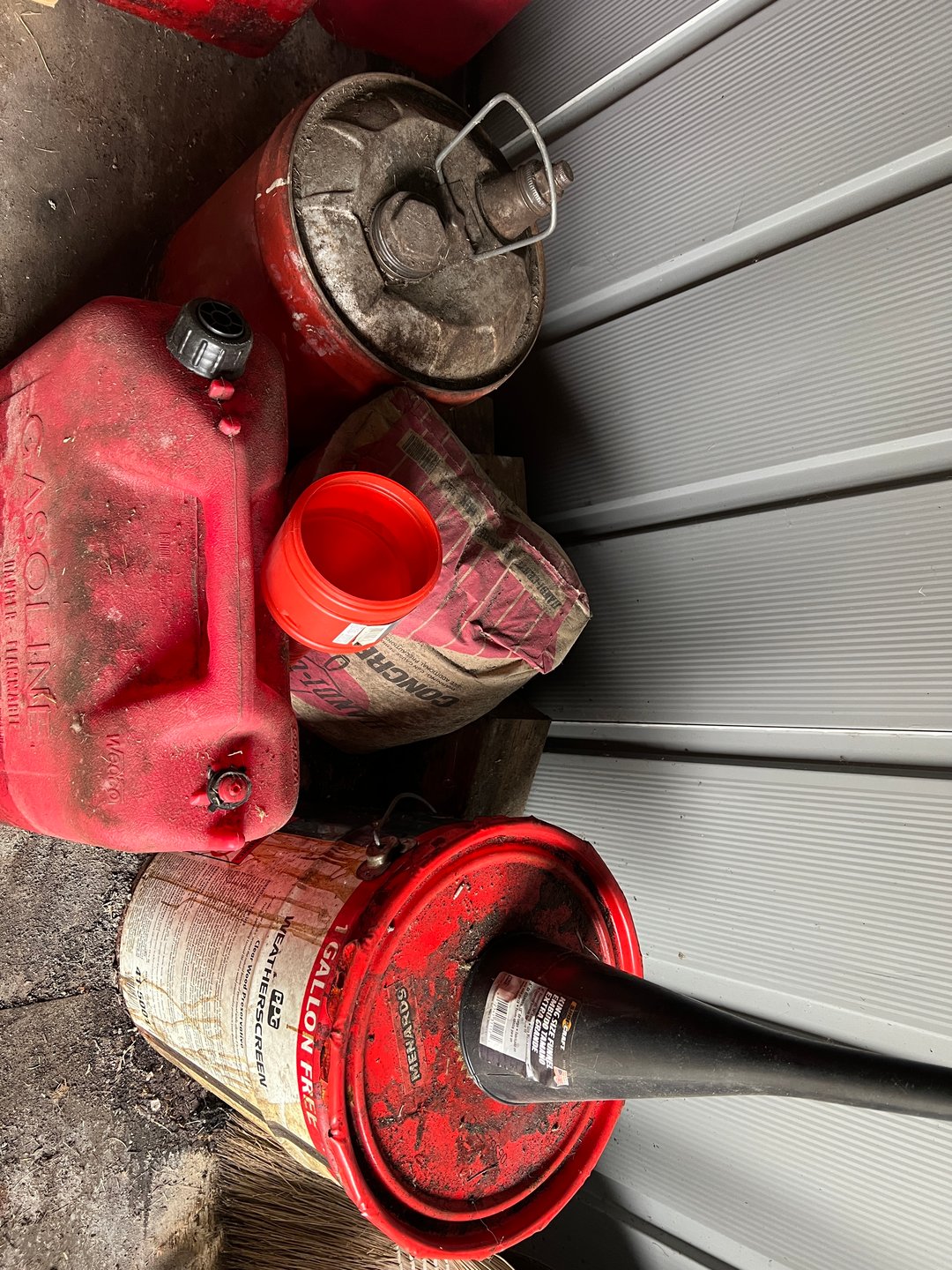 •Gas Cans (Full), Bucket of Wood Preservative (Lot #201)
