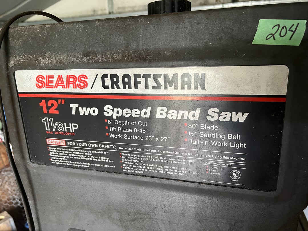 •Craftsman 12" 2 Speed Band Saw (Lot #204)
