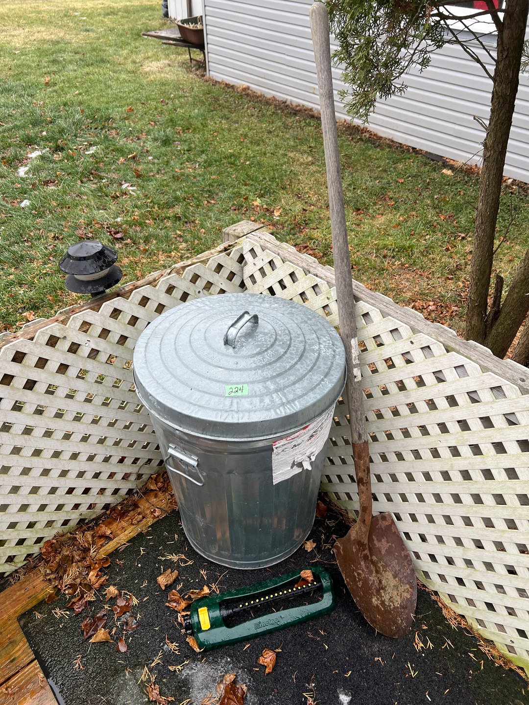 •Metal Trash Can,Shovel, WInd Chime (Lot #224)