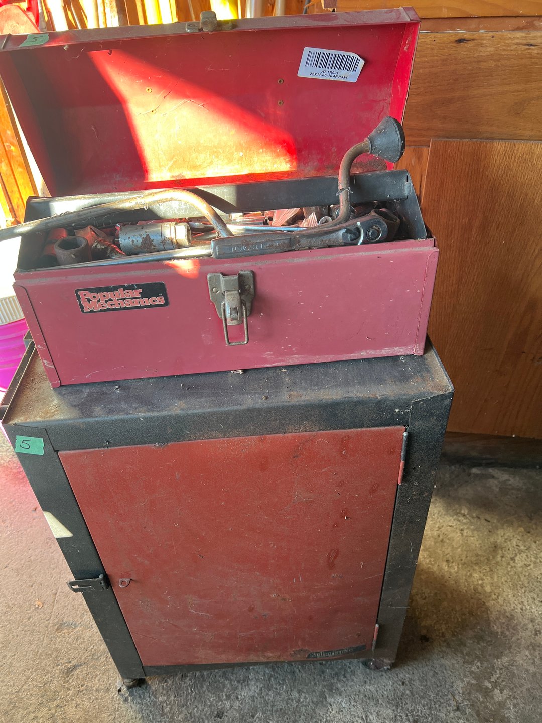 •Sm. Tool Box w/ Tools & Rolling Cabinet (Lot #5)