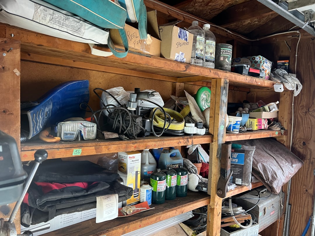 •Contents of 3 1/2 Shelves - Tool Box, Tarps, Stadium (Lot #56)
