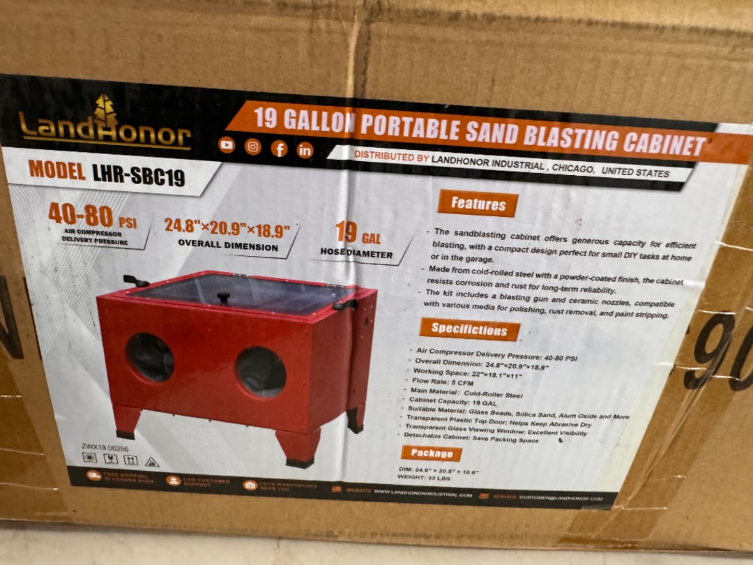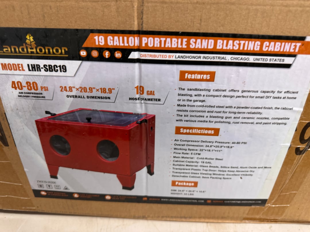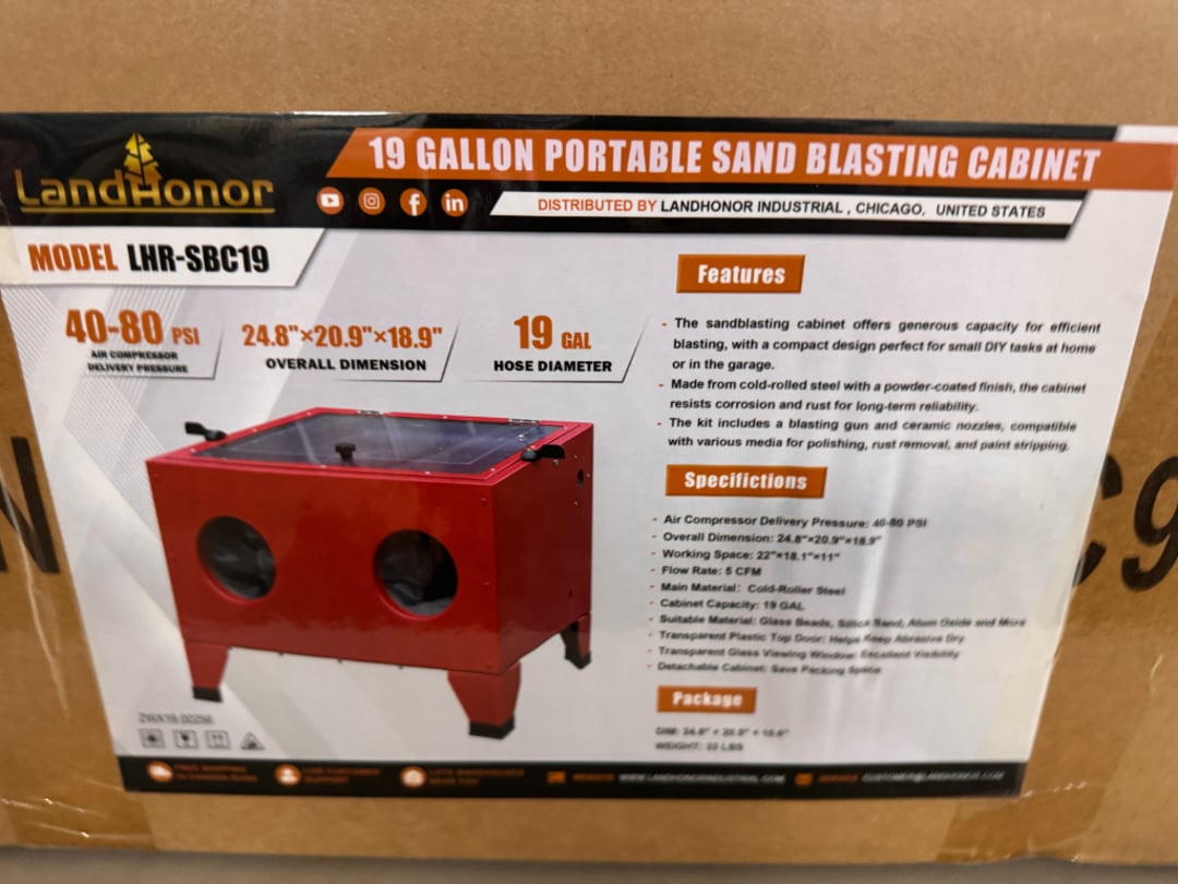 •Land Honor 19 Gallon Portable Sand Blasting Cabinet (Lot #715)