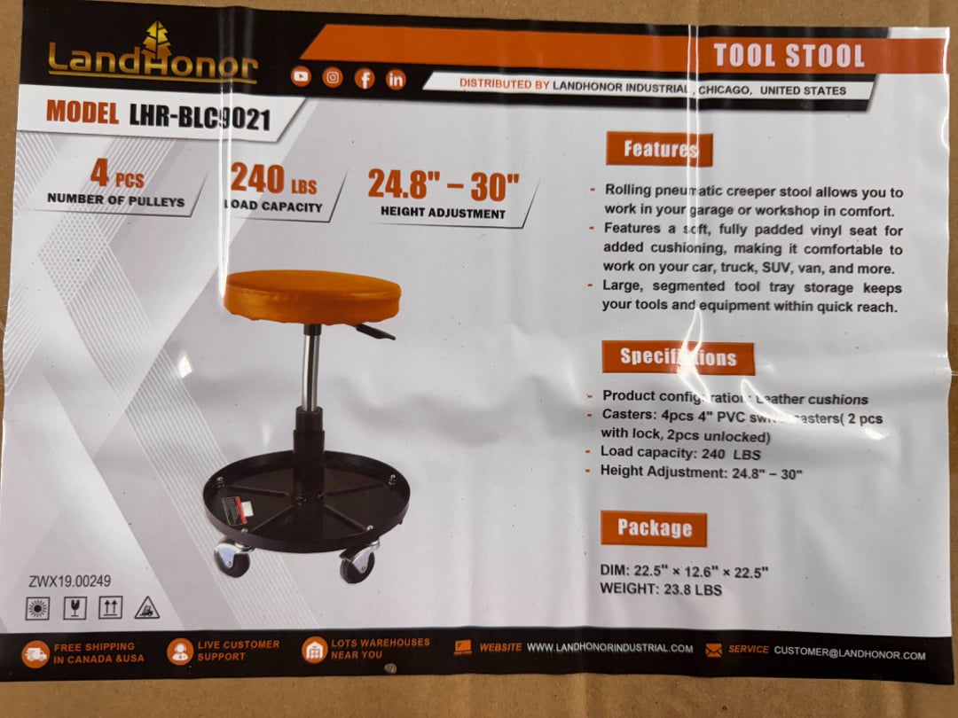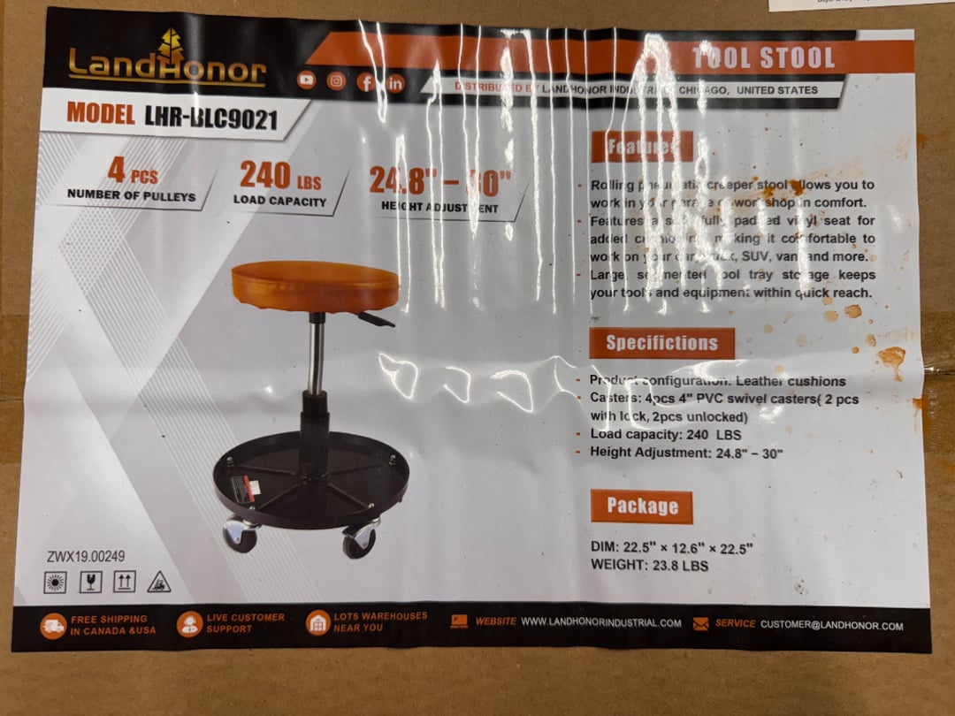 •Land Honor Rolling Shop Stool (Lot #695)