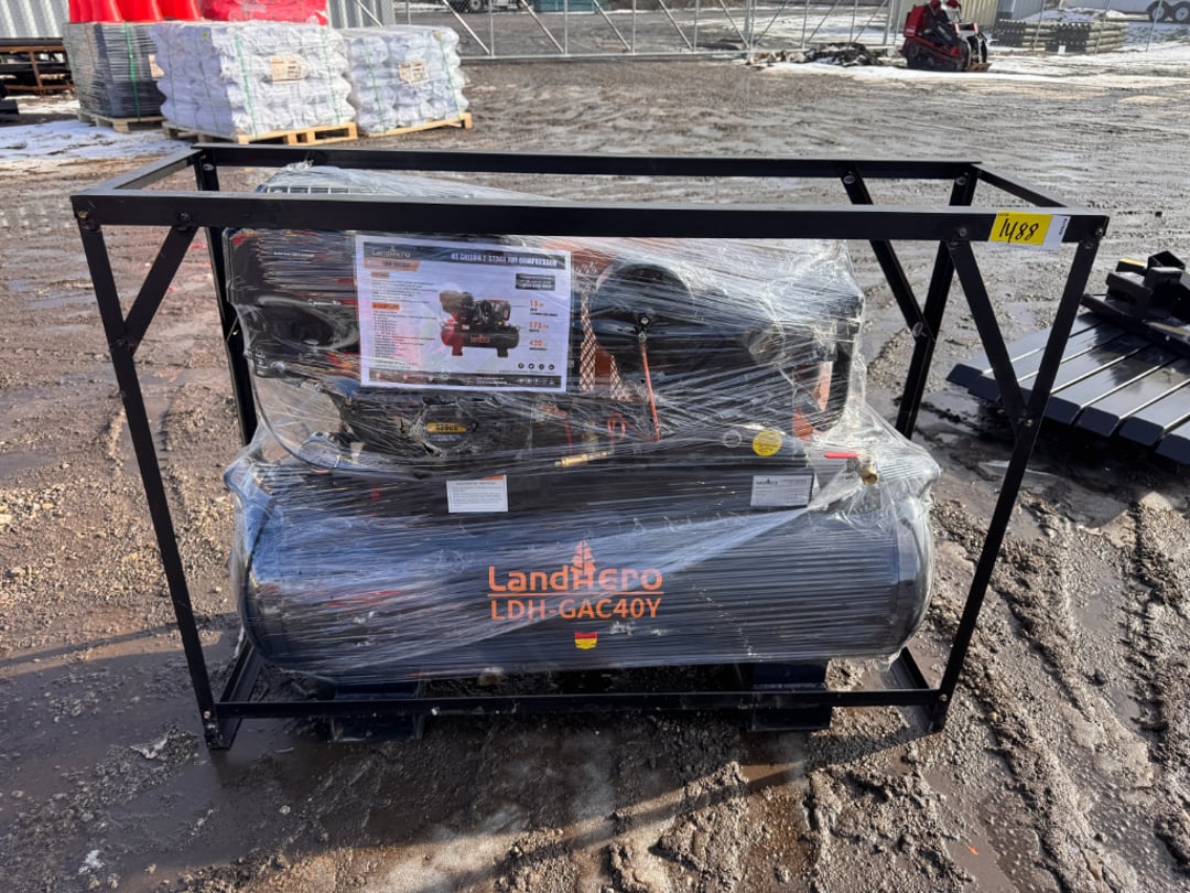 •Land Hero 40 Gallon 2 Stage Gas Air Compressor, Broken Fitting Needs Fixed (Lot #84)