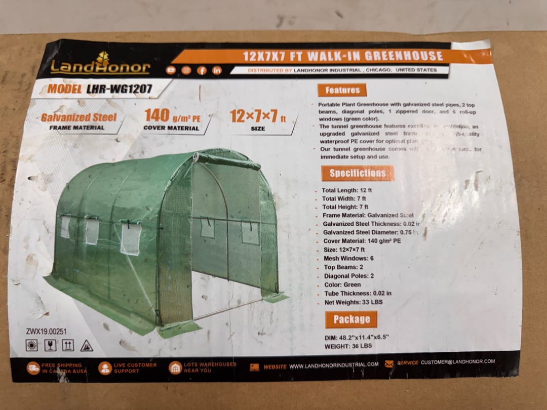 •Land Honor 12' x 7' x 7' Walk In Greenhouse (Lot #685)