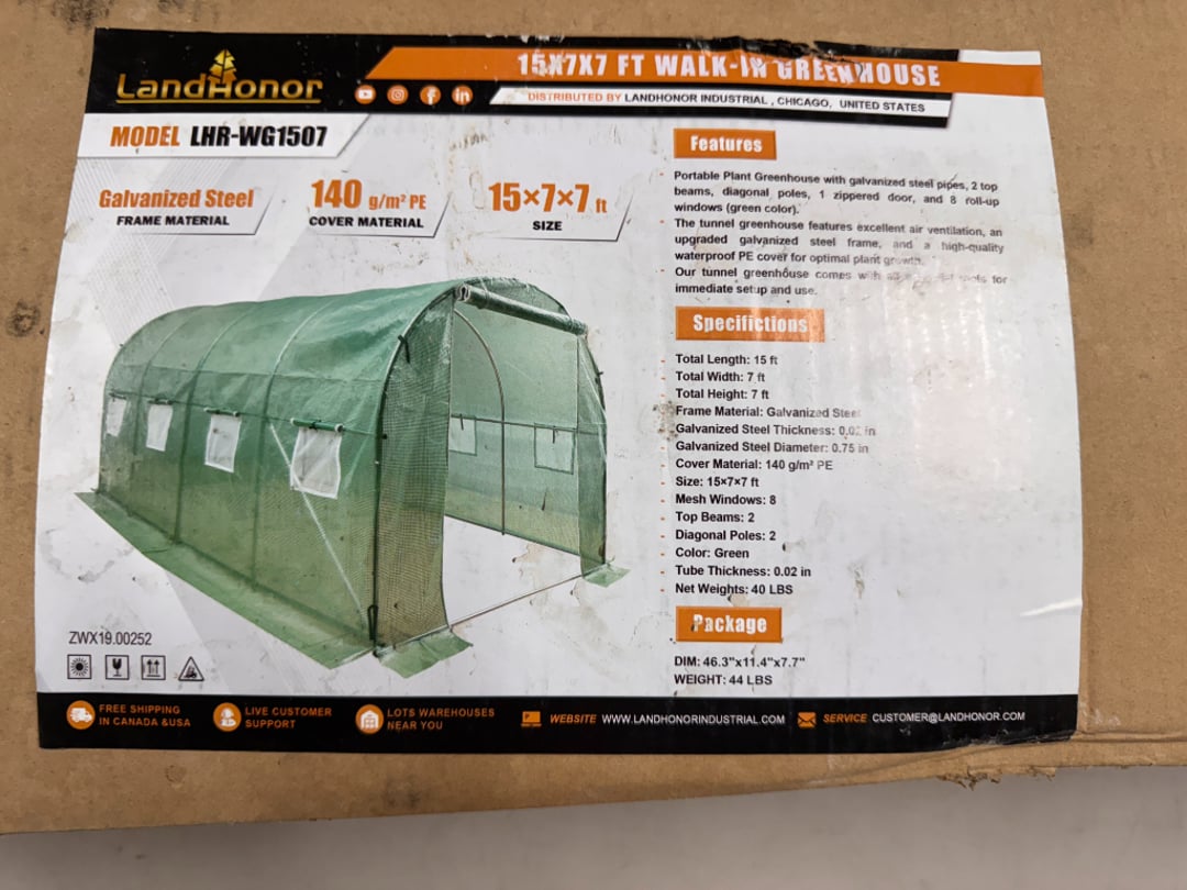 •Land Honor 15' x 7' x 7' Walk In Greenhouse (Lot #725)