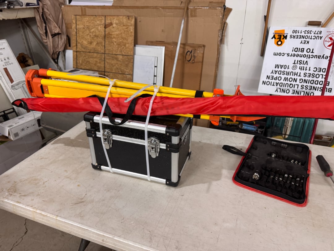 •Self-Leveling Rotary Laser Level with Batteries, Receiver, Tripod, Grade Rod (Lot #718)