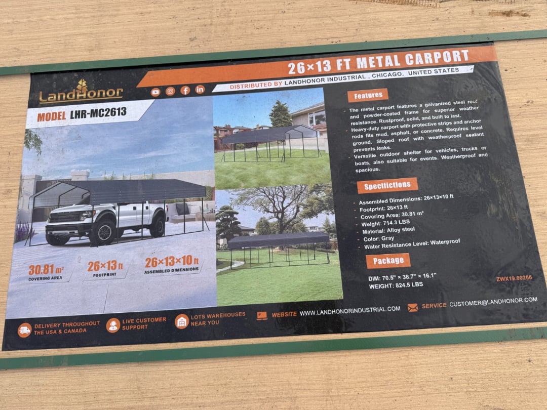 •Land Honor 26' x 13' Metal Carport (Lot #810)