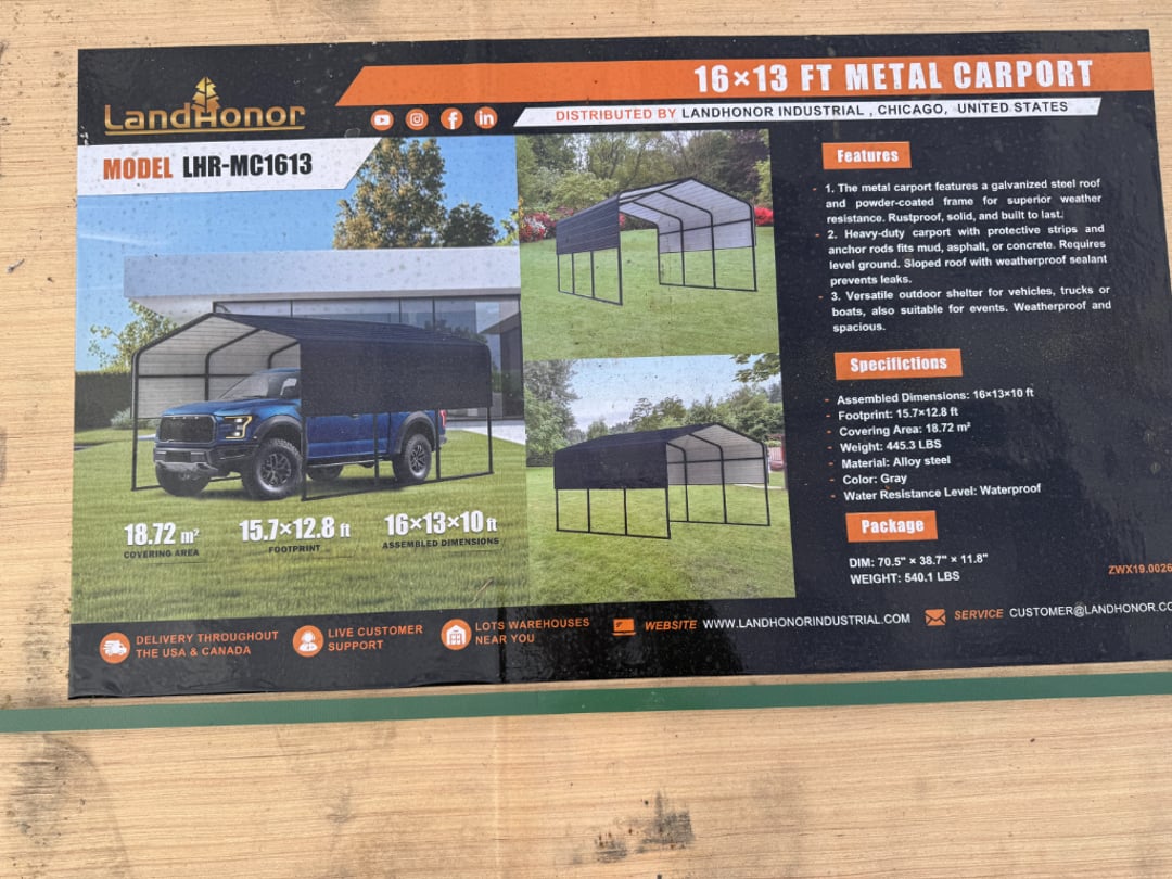 •Land Honor 16' x 13' Metal Carport (Lot #870)
