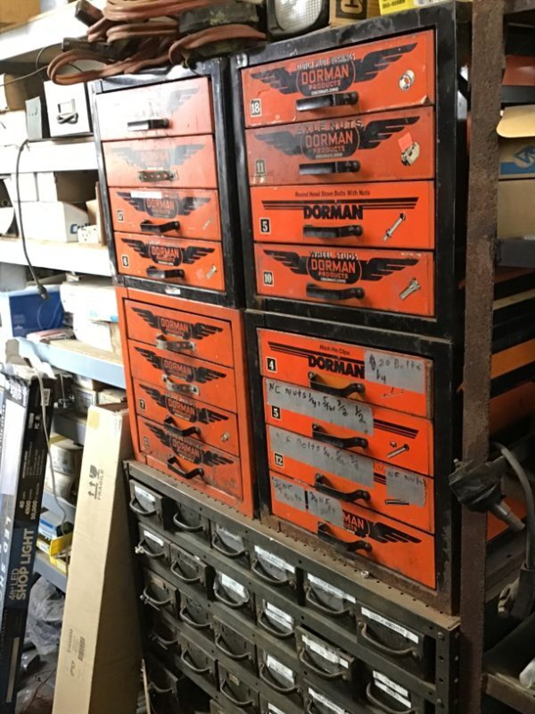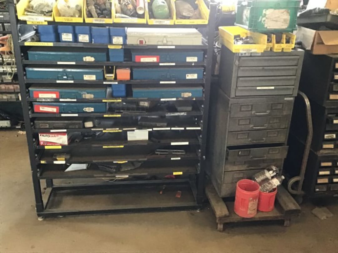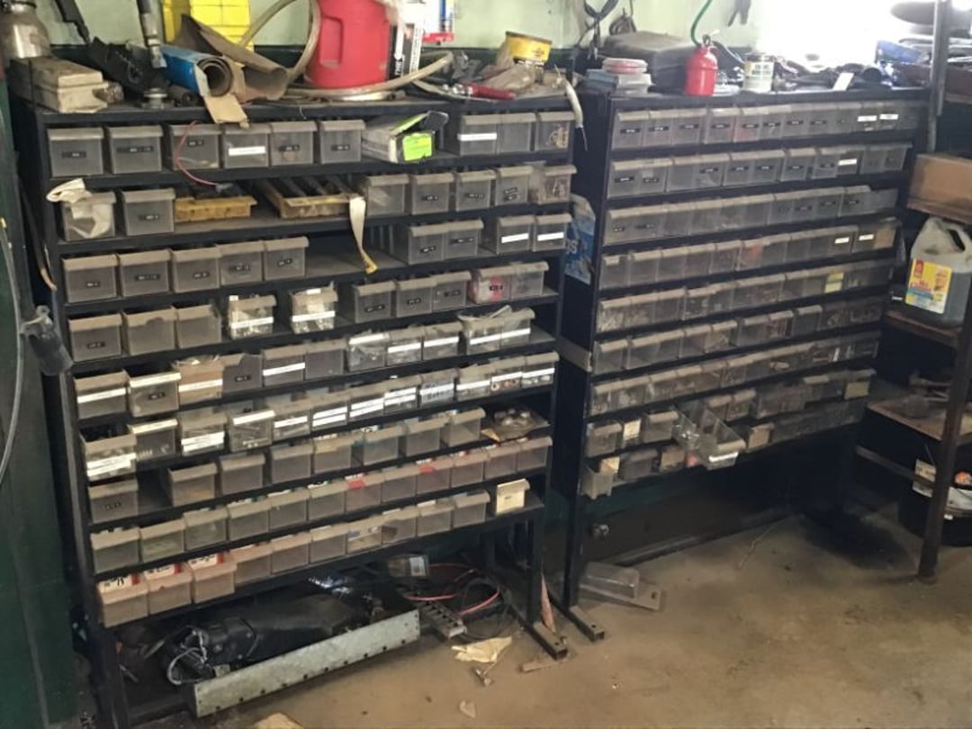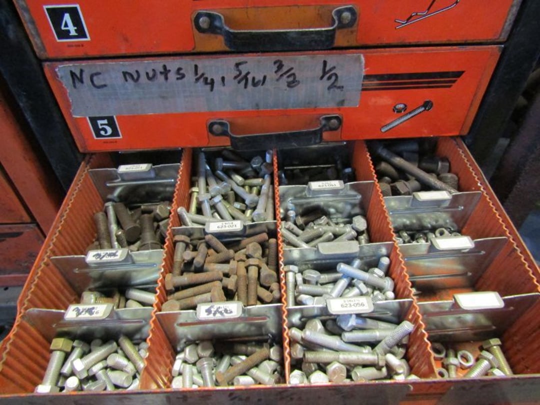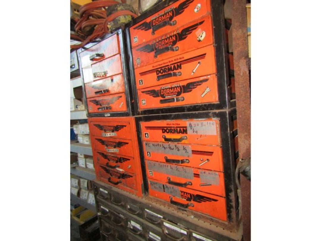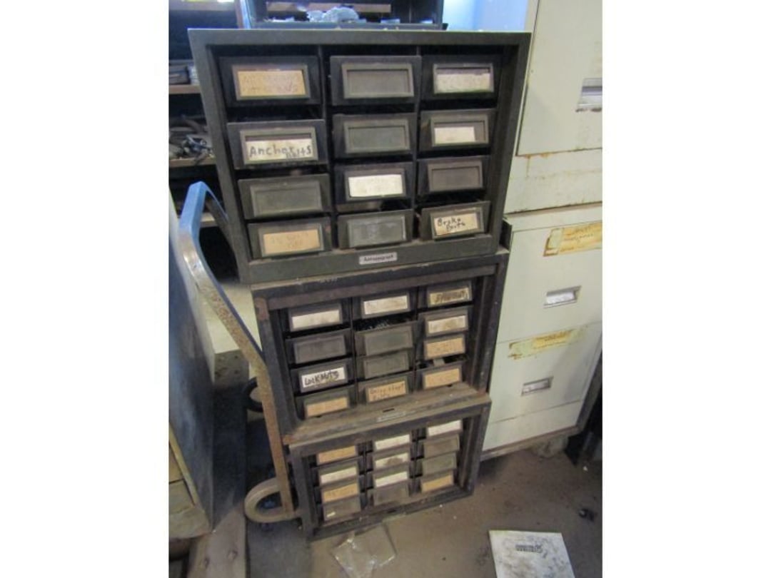 SHOP EQUIPMENT, PARTS BINS, PRESSES, SAWS, HAND TOOLS, COMPACTORS