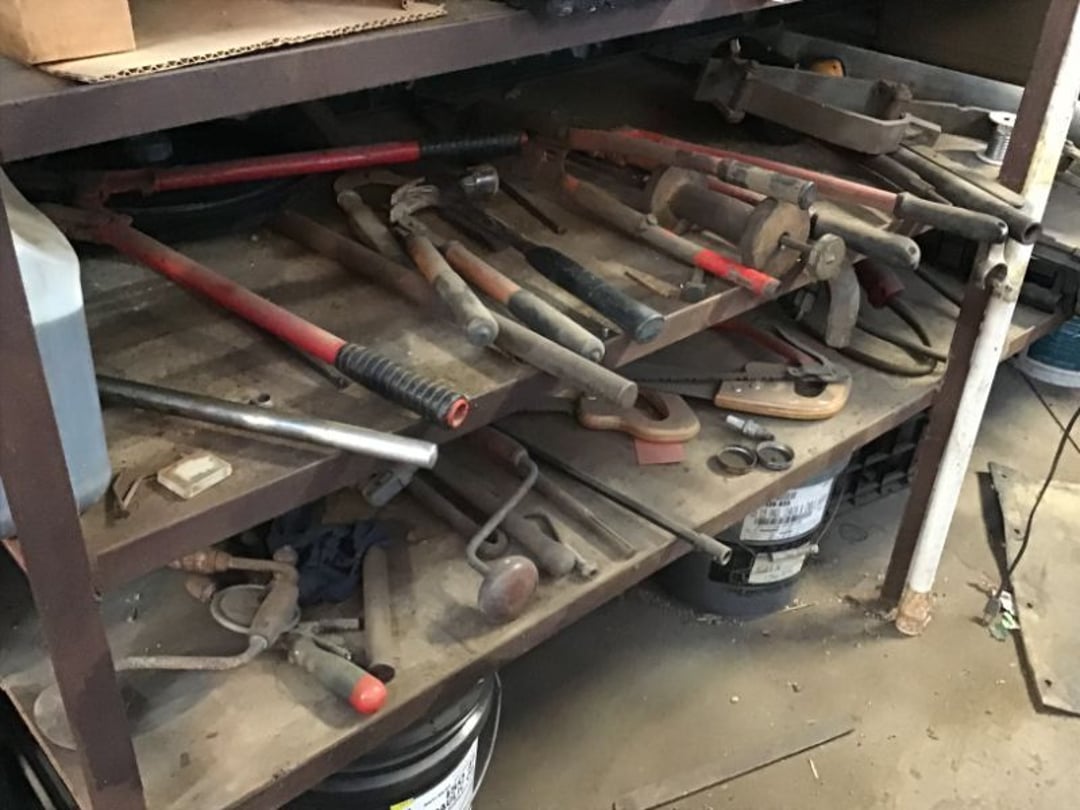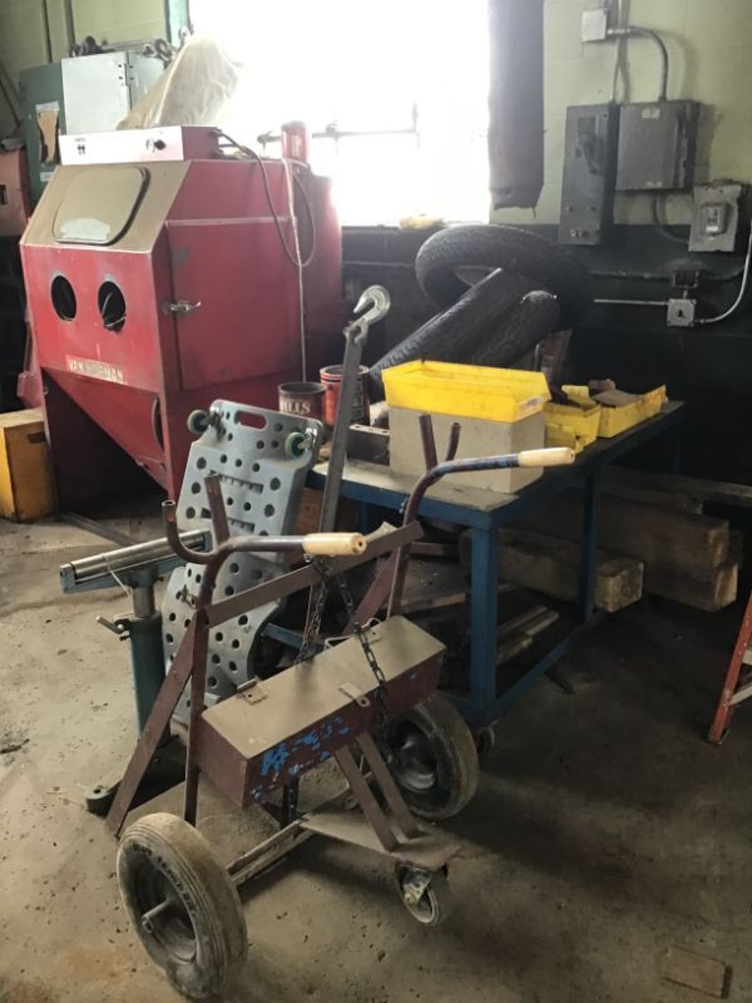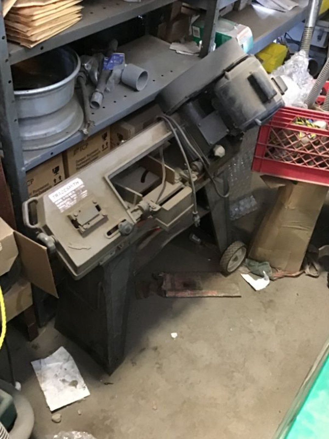 Craftsman Arm Saw, Yard Tools, Creepers, Several Parts Bins, Several Trash Pumps, Stihl TS400 Cut Off Saw, Husqvarna K769 Cut Off Saw, 20 Ton Jack, Briggs & Stratton Hand Auger, Jacks,Walker Walk Behind Plate Compactor, Shop Vacs, Greenie Job Box, Tradesmith 8162 Metal Bandsaw, Hand Tools, Bolt Cutters,Hand Saws, Air tools (Impacts Wrenches, Welders Table, Dayton 20” Drill Press, Miller M225 Arc Welder, Miller M 180P Arc Welder, Floor Fan , Murray 27” Snowblower, Van Norman MH-3040 Sandblasting Booth, Weather head T-400 Conversation Unit , Large selection various size PVC & Fittings, Engine hoist, Large selection of scaffolding ,Ridgid 1822 Pipe Threader, Wesco Drum Lifter & MUCH MORE!