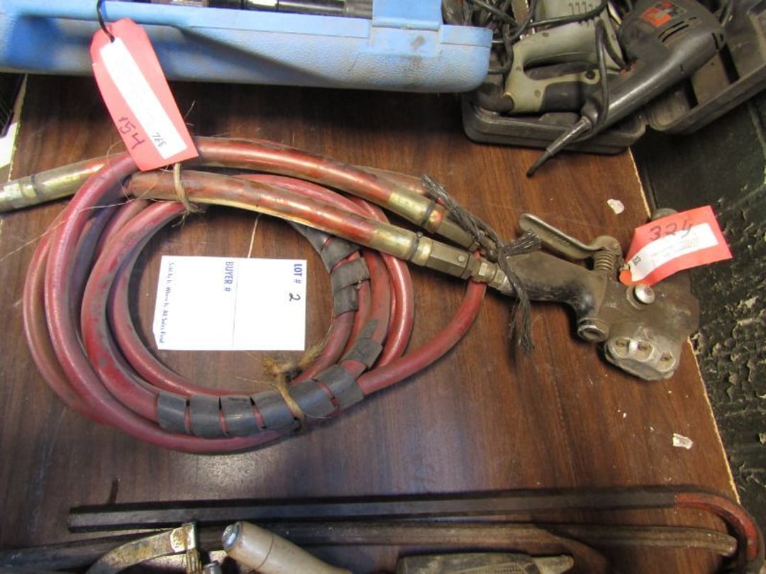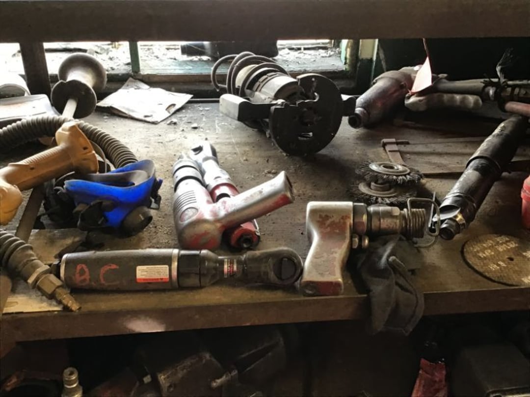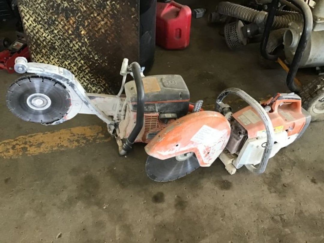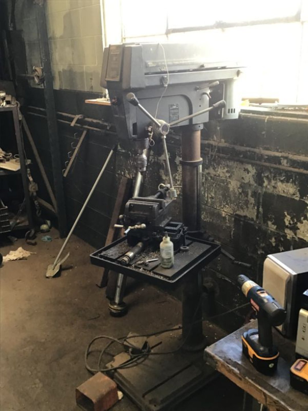 Craftsman Arm Saw, Yard Tools, Creepers, Several Parts Bins, Several Trash Pumps, Stihl TS400 Cut Off Saw, Husqvarna K769 Cut Off Saw, 20 Ton Jack, Briggs & Stratton Hand Auger, Jacks,Walker Walk Behind Plate Compactor, Shop Vacs, Greenie Job Box, Tradesmith 8162 Metal Bandsaw, Hand Tools, Bolt Cutters,Hand Saws, Air tools (Impacts Wrenches, Welders Table, Dayton 20” Drill Press, Miller M225 Arc Welder, Miller M 180P Arc Welder, Floor Fan , Murray 27” Snowblower, Van Norman MH-3040 Sandblasting Booth, Weather head T-400 Conversation Unit , Large selection various size PVC & Fittings, Engine hoist, Large selection of scaffolding ,Ridgid 1822 Pipe Threader, Wesco Drum Lifter & MUCH MORE!