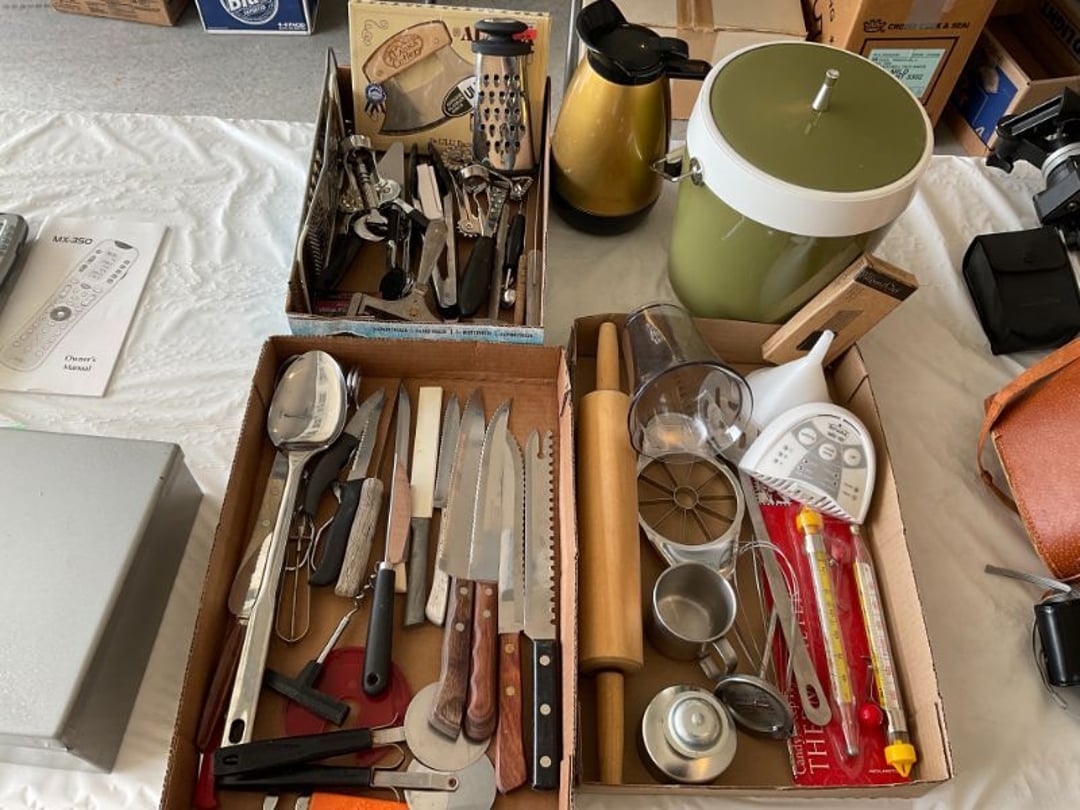 3 piece Bedroom set - Queen Bed, Dresser, Blankets , Pillows, Bed Pillows, Throw Pillows , Artificial Plants, Wreaths, Clothes stand, Cedar Chest - 16"T x39" W x 16" D, Comforter & Pillows, Signed Canvas Painting , Bathroom Decor , Desk, Chair, Side Table , Brother Wireless Color Copy, Scan Machine , (6) Wall-art Bear Pictures , Assorted Pillows, Queen Futon w/ Heavy wood frame, Heavy Chest14"T x 30"W x 15" D, Message, Pillows, Blankets - Contents of Closet, Computer Bag, Briefcase, Shoulder Bag, (2) Brass Lamps w/Fringed Shades, B&D Sweeper, (4) Rugs, (3) pc. LR Set Coffee Table 48"x 30", Side Tables, Lift Chair (Worn), Recliner (good Condition), Airfare Humidifier , Pair of Heavy Table Lamps, Greenery Decorations , Greenery Decorations , (3) Longaberger & Multiple Baskets, 10 gal. Blue Crown Crock w/surface crack, (2) Energy Speakers 10" x 6", TV & Components Table 21"T x 50"W x 20"D, (2) Denon Surround Sound Receivers - AVR-, 3 Handles Pottery Vase 27"T - Papier Mache, (3) Sm Table/Dresser Lamps, (4) Metal Hangable Plates, Vintage Basket of Fruit, Glider Rocker, Decorations & Display Shelf, Metal Mosaic Stand,7' artificial Tree, Basket, Love Seat 66" long, Reed Display W/ Angel Collection , Dining Table w/ 6 Chairs 53" W x 89"w/ 3 , LG 32" Flat Screen TV w/ remote LCD, Microwave/TVStand 31" T x28" W x19.5 D, Hanging Shelf & Decorations , 35 Pc. Pfaltzgraff Dishes - Natureswood, Glassware - 6" Pyrex Pie Plates, Egg Plate, , Stems, Drinking Glasses, Glass Mugs, Wine Rack, Cookbooks, Utensil Basket, , Coffee Cups, Condiment Containers,Glass , Canister Set, Kitchen Utensils, , Kitchen Bowls & Casseroles , Bakeware , Corning ware Casseroles, Pyrex, Vision ware, Glass Bakeware, Stems, Vintage Candy, Pots & pans, SS kitchen ware, towels, (2) crock pots, electric knife,vegetable chopper, GE Profile Washer, GE Profile Electric Dryer, Laundry Room Wall Art, Osterizer Blender, Food Chopper, Vases, HB Electric knife, Braun Coffee Grinder, , (2) Copper Chef Skillets, (2) pc. Country Elm Pottery, Vintage Stoneware Art Pottery-hand painted , Vintage Stoneware Art Pottery-hand painted , Power Smokeless Grill, NIB Waffle Maker, Can Opener, Grilling, Large amount of Towels , Select Comfort Ultra Series King Size Bed -, (4) pc. Matching Bedroom Furniture- Dresser, Valorous portable air purification system, , Queen padded Mattress Cover, Comforter,, LG TV 30" screen & Zenith DVD & VHS Player, Coleman Lg. bag with wheels, Clothes Hamper, Shower Stool, 21"T x 17"W x17"D Sentry Safe w/ combination , Contents of shelves- Back support belt, blood, Ricardo Santa Cruz Bag w/ Wheels, King/Queen Comforter & Pillow Shams, (2) pc Sonoma Luggage, 2019 Lincoln Nautilus , Lg. Amount of Christmas Decorations , Lg. Amount of Christmas Decorations - 7', (2) wicker lawn chairs & Folding bag chair , Decorative Flags & yard holder, For Rent Sign,, (7) Decorative Bird Houses, Model 494-A Four-Row Planter- Precision , (3) Clocks - Westminster, Seth Thomas quartz,, Lock box w/ Key, MX-350 universal Remote, (3) flats kitchen utensils, ice bucket, pot, Kalimantan Field Glasses, Tripod, Coolpix , Onkyo compact disc player DX-C390 w/remote , Panasonic Blu-ray Disc player w/ remote , Keurig Coffee maker w/pod & cup holders, 50+ CD's, (38) DVD's, Amazon kindle, Portable like new file cabinet , (4) boxes Tupperware & plastic ware, Ironing board, Lakewood portable electric heater , (2) Rustic Metal wall hanging stars -29" & 36", 4.5 ' werner saf-t master ladder, cardtable & (4) folding chairs, Baskets & rugs, Avon Collector Plates 1973 -1992 , Corning ware stoneware covered pot, Vintage glass ,AH measuring cup, (2) cast iron skillets (1) marked Wapak, (3) pc. graniteware, aluminum strainer pot, Vintage Maple Leaf Bean Pot, Flatware (large amount), 30 pc. Rose China, Blue Sponge ware RRP Roseville Ohio Pottery, Roseville Blue Sponge ware 8" shallow Bowl, Blue Sponge ware RRP Roseville Ohio Pottery, Blue Sponge ware RRP Roseville Ohio Pottery, Blue Sponge ware RRP Roseville Ohio Pottery, Blue Sponge ware RRP Roseville Ohio Pottery, Blue Sponge ware RRP Roseville Ohio Pottery, Vintage shovel, fork, hoe, brooms, (5) folding chairs, (1) lawn lounge chair, 2 wheel hand cart, 2 step stool, Mops, brooms, bowling ball , Donjoy Iceman cold therapy system, Zojirushi bread machine, electric skillet , Candles, Ankle/wrist weights, pulse monitor, card decks, Kodak digital camera, jewelry & Box, Pampered chef cookie press, GE steam iron, Flat of Willow Tree figures , Frigidaire refrigerator/freezer 18.2 Cu ft, GE Chest Freezer 33.5" H x37"W x22" D, Large amount of garden supplies , Fishing lures, (2) poles, Light bulbs, old radio cassette tape player, B&D 5 speed drill w/ battery , Heavy flashlights, mini sledgehammer, misc, workbench 36"T x96" W x 28" D, Hardware- nails, screws, plastic crate, Sockets, ratchet, wrenches, (5) Pc.Kobalt pliers & Craftsman tools, Screwdrivers, 40 pc socket set , Canning jars, Tools - saw, level, square,ruler, tools, tools, tool box, Ceramic Christmas Tree, Heavy duty hose, Heavy duty hose, Heavy duty hose, Birdbath, fountain ( damaged base), (2) Trash cans, (2) Gott coolers, (1) styrofoam , Clothes drying rack, GE Box fan, (2) Propane tanks, (2) Sun hats, twine, yardsticks, canes, Pots/plants outside,