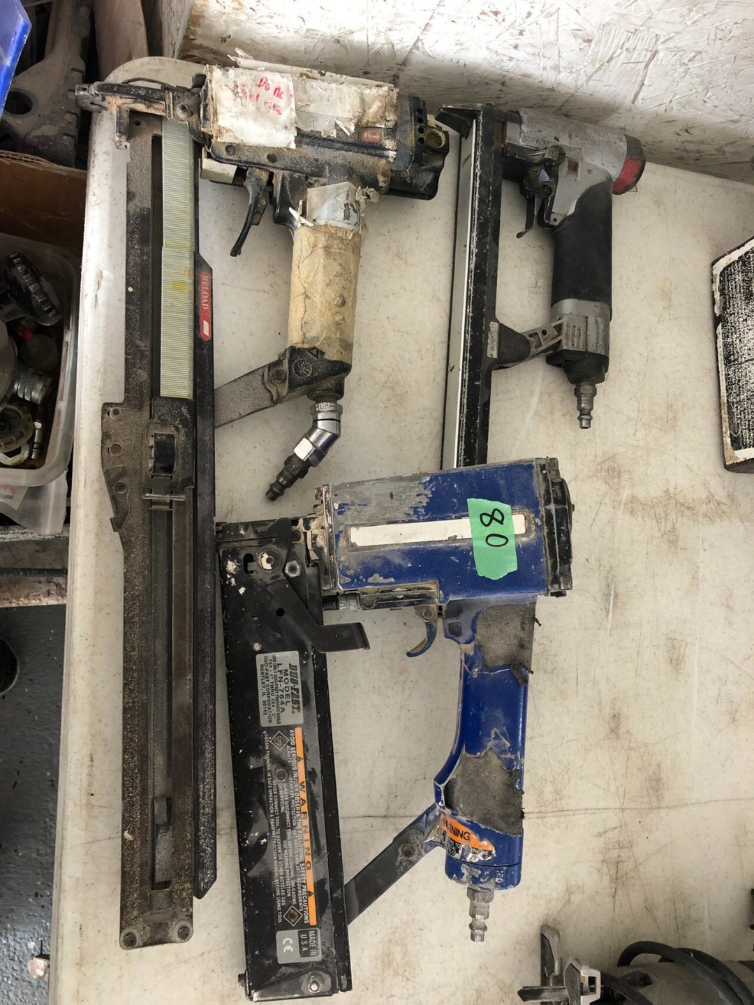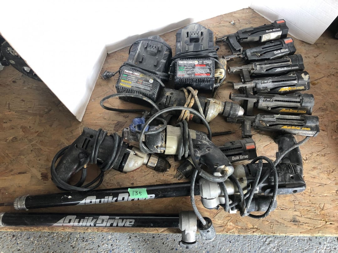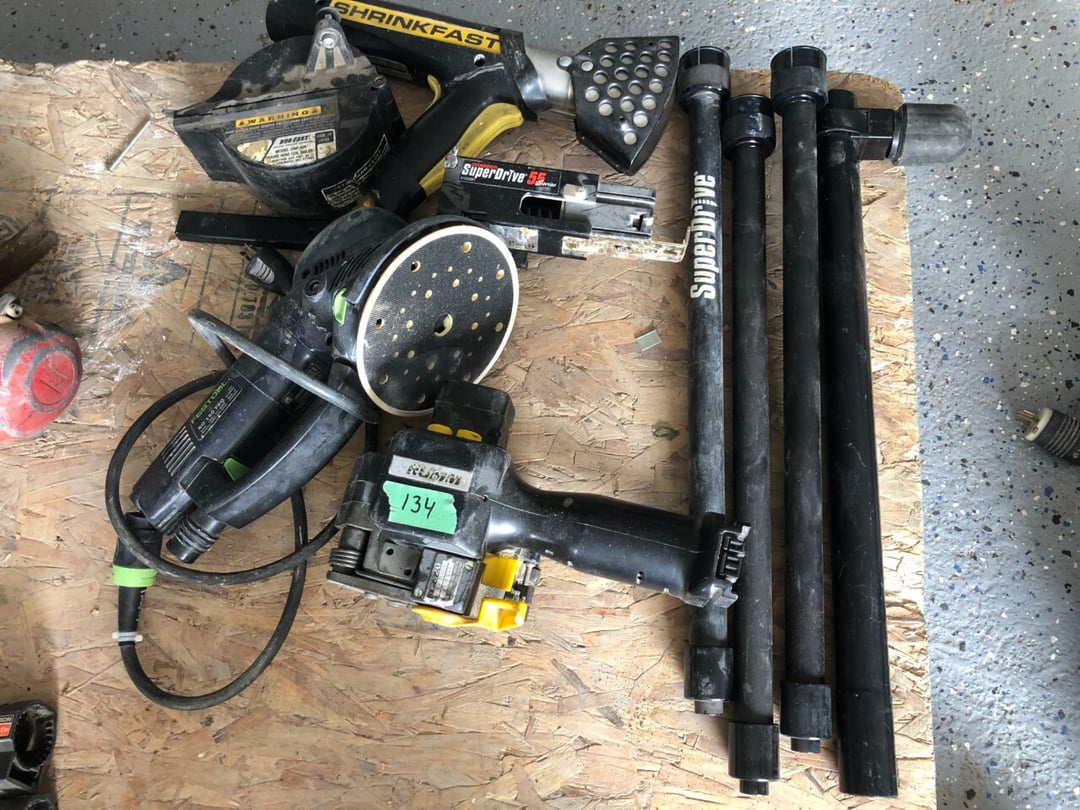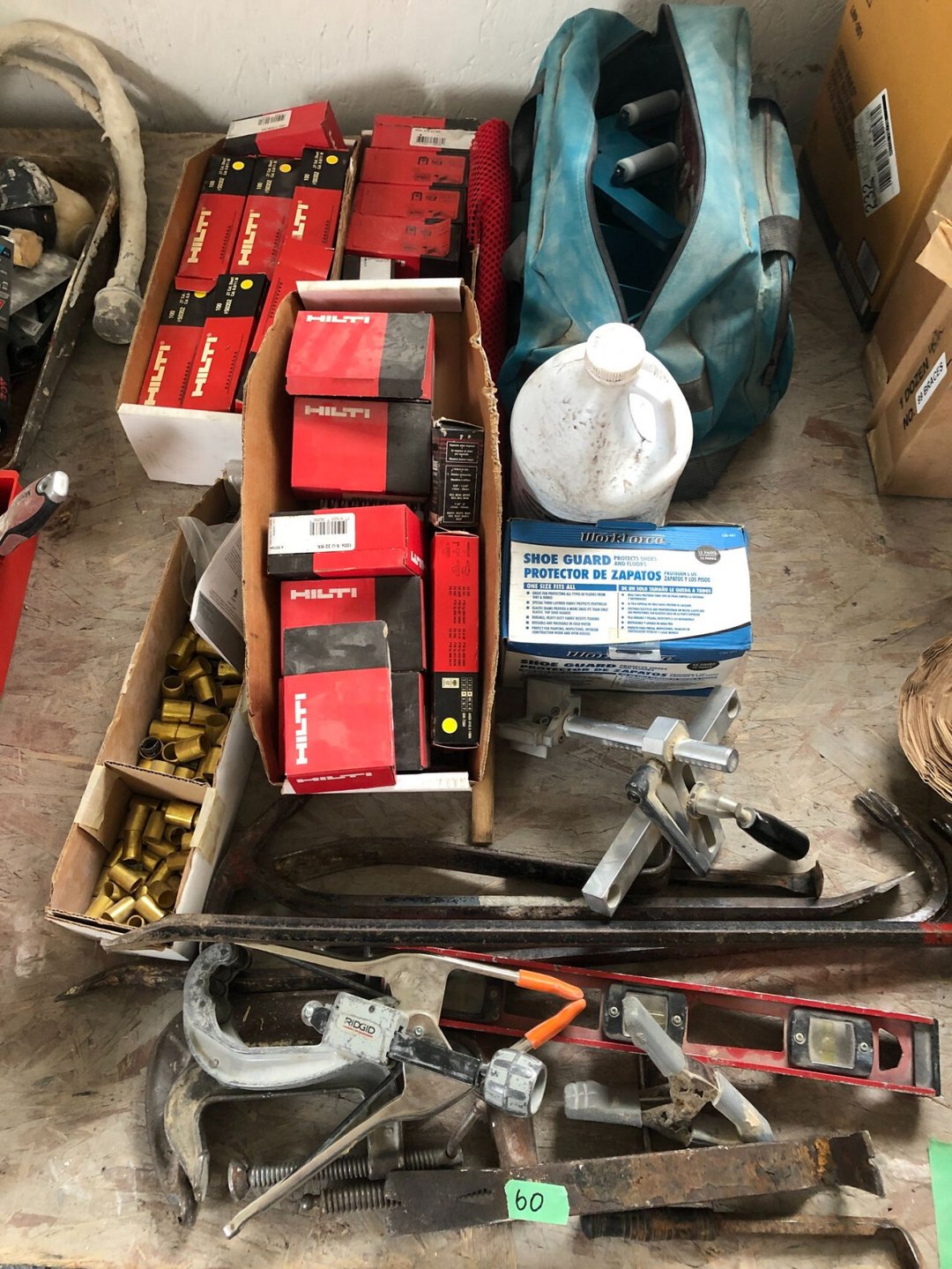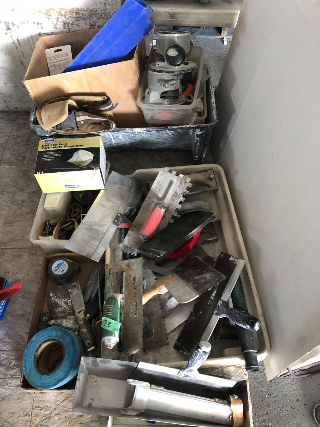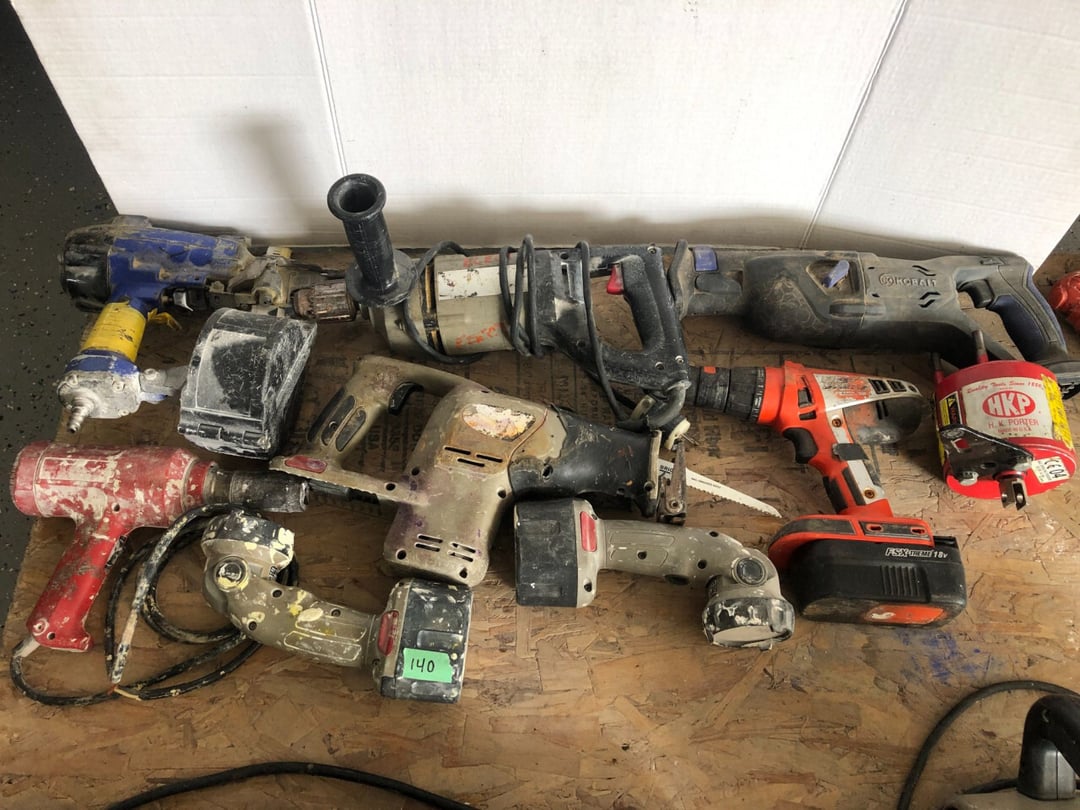 HILTI DX460Nail Gun, Dremel saws / Max with extra blades, MAX CNV400A Coil Nailer, DeWalt 18 V reciprocating saw (DC385), Paslode impulse nailer with case, Senco DuraSpin 14.4V Nailer, Dremel with accessories, BOSTITCH air (SL1838BC) Cap Stapler, Tackle box with miscellaneous hardware, 7 Miscellaneous cases, Tool shop 1 9/16 narrow crown stapler, Bosch CS 20 rip saw with bag, PipeCat PC1000 tubing cutter , Makita magnesium rip saw, RoadToolz Robo laser in case, Porter cable TIGER reciprocating saw, Toolbox with Tools, Paslode impulse utility framing nailer, Vitrex Tile saw, Misc Porter Cable Drills, Saws, lights-, Wet saw table, JET Pedestal 6 " grinder, Miscellaneous parts, PNEU-Tools RAP-A-CAP 150 Capnailer, Misc Clevis, Flat of tools, Flat of Allen wrenches, Dewalt hacksaw blades NIB, Dewalt hacksaw blades NIB, Simson Volt-OHM Meter, Flat of Allen wrenches, Flat of various size wood bits, Miscellaneous tools and files/kneepads, Hoover windtunnel sweeper, RIDGID Shop Vac, Bostitch 10 gallon shop vac, Craftsman 6 gallon shop vac, Craftsman wet/dry 6 gallon shop vac, 12 Gallon shop vac, Shop vac & Vacmaster , Graco gluing cart, Graco gluing cart, Paint machine?, 14 Empty tool cases, JET Dust collector, Mitre-Mite-VN4, 17 Various electric tools, 5 Rip saws, Come-a-long, 7 Corded DeWalt reciprocating saws, 2 DeWalt Drills,heat guns,saber saw, Plastic shelving, Roofing Jacks, 32" Pedestal fan, Makita LS1013 miter saw (10") Mounted, Roofing Jacks, Roofing Jacks, Roofing Jacks, Painting and drywall supplies, HILTI Accessories, miscellaneous tools, Register vent, miscellaneous, Carpet installation tools, 10 Boxes of CertainTeed ridge vents, Skid of #15 Tarpaper, 20+ Boxes of self adhering ice buster, 7 Dryer Jacks, 2 Pair drywall stilts, Assortment of air tools, Assortment of air tools, Milwaukee stapler, screw gun, nailer, Flat of air tools, DeWalt 18VTools, Corded Drill, Senco Nailers, Right angle drill, sawzall, misc, Miscellaneous parts, Bosch tools, Milwaukee right angle drills, Milwaukee right angle drills, Large assortment grease guns, Drywall and tiling supplies,, Aluminum sawhorses, drywall stilts with box, 3 Air/brads nailer, Crown insulation tester, SKIL saw worm drive rip saw, Saber saw, 2 drills, Sheetmetal cutter, Makita rip saw, MK470 Tile saw, Carpet stretching kit, Carpet stretching kit, 2 Wheel hand cart, Chicago Electric worm drive rip saw, 2 Porter Cable Belt sanders, Porter Cable Biscuit/router/door planer, 2 Milwaukee right angle drills, 2 Hand metal shears, Tool tray with drywall tools, 4'x7' Bulletin board, IRWIN Chalk lines/cases/chalk, 2 Flats of tools, 2 Flats of tools, 3 Flats of tools, 2 Boxes wood bore bits , , Miscellaneous tools, 2 hose crimpers, 8 Hardhats, Miscellaneous sockets and wrenches, 3 Boxes miscellaneous hole saws, 2 Boxes miscellaneous hole saws, bore bits, Screws and nails, Miscellaneous air fittings, Spade bits, pipe clamps, magnet, Wire strippers, speed squares, gecko gauges, Speed square, tin snips, pliers, channel locks, Tin snips, pliers, Tin snips, chisel, sockets, Safety triangles, Safety triangles, ECCO Yellow safety light, 2 Boxes safety triangles, Work lights, 2 Boxes kneepads, 2 Boxes caulking guns, 5 boxes Senco 3 1/4x .131" nails, (2) Boxes coil nails 1 3/4"x.120 Roofing Nails,, 2 Buckets of kneepads, Miter saw, 7 Nail aprons, 7 Nail aprons, 7 Nail aprons, , Porter Cable Ripsaw, 1/2" drill, palm sander , Porter cable router with bits, Power Hack saw, Roto zip with accessories, SuperDrive, shrinkfast, QuickDrive, 3 Drills, chargers, Air coil nailer, Miscellaneous tools, Porter cable belt sander and router, Milwaukee chargers, sawzall, rip saw, Drill, reciprocating saws, Makita tools, Makita battery tools, Senco DuraSpin, Senco 701XP Air nailer frame, Senco tools, 4 Parts bins, Parts Cabinet, Rockwell 10 inch table saw (3PH 480V), DeWalt tools, 2 Bosch tools, Framing hammers, Framing hammers, Framing hammers, Framing hammers, Roofing bars and mallet, Porter cable & DeWalt ripsaw, Milwaukee, porter cable ripsaws, Porter cable panel saw, belt sander, Milwaukee 1/2 inch impact, Milwaukee sawzall, DeWalt Sawzall, Hitachi router, Box of T Allen wrenches, Staple guns, Staples, PVC saw blades,, Copemaster saw with stand, Chalk line with chalk, electrical boxes,, Assortment of Senco nails, Makita LS1013 chopsaw, Makita chop saw with extra blade, Miscellaneous wood boring bits, 2 Flats of screwdrivers, Hack saws, bolt cutter head, Nut drivers, Wrist and back supports, sleeves, Fall arrest device, Fall arrest device, Fall arrest device, Miscellaneous tools, tape measures,, Utility knives and blades, Stanley plane, Miscellaneous tools, Makita miter saw, Bionic shield, LP regulator hose, torch head, Black tile cutter, Red tile cutter, Tool cart (contents not included), Fall arrest harness, miscellaneous strapping, Helicoil Kit, Strap Bander, PVC cutter, Toolbox with miscellaneous tools, Air hoses, Fall arrest harnesses, ratchet straps, HD Extension cords, Fall arrest harnesses, Fall arrest harnesses and ratchet straps, Fall arrest harnesses, (3) 6" Lifting straps, Banding material, 6 sling rings, Connecting straps in Cooler, Broomhead, Husky 2 step ladder, 3 step ladder, Keller 5' Fiberglass step ladder, 2 Ladder stabilizers, T Squares, levels, hand saws, Ping pong table, Dry wall tools, 2 Adjustable floor jacks, 4'x8'Rolling cart, 4'x8'Rolling cart, 4'x8'Rolling cart - 4'x8'Rolling cart - contents not included , post hole digger, 8' 10' 14' Fiberglass Ladders, 40' Extension Ladders, cables, Tarps, Steel, Roofing Jakcs, Bottle Jacks, Floor Jacks, Sawhorses, Shop Vacs,& Much More!