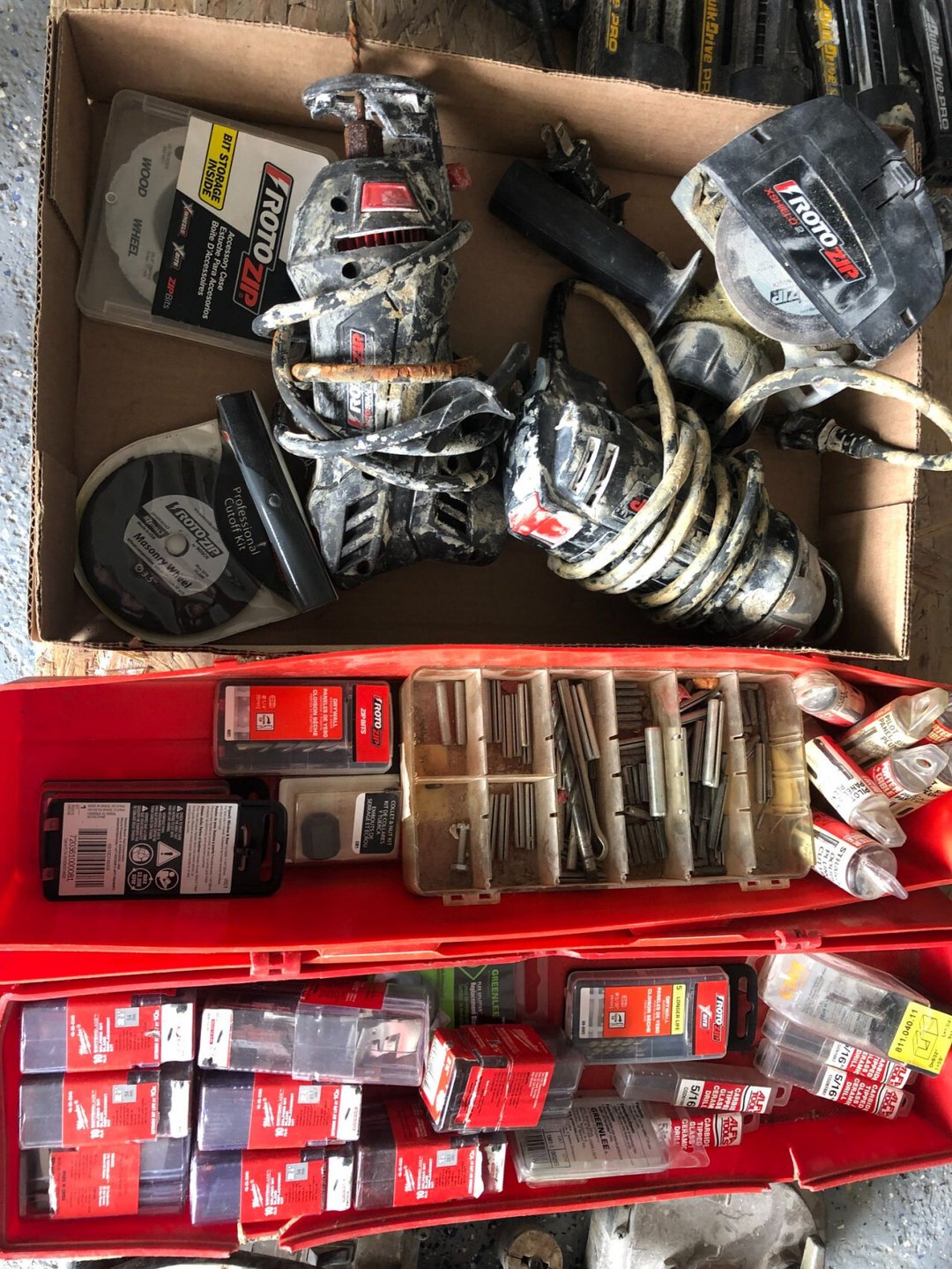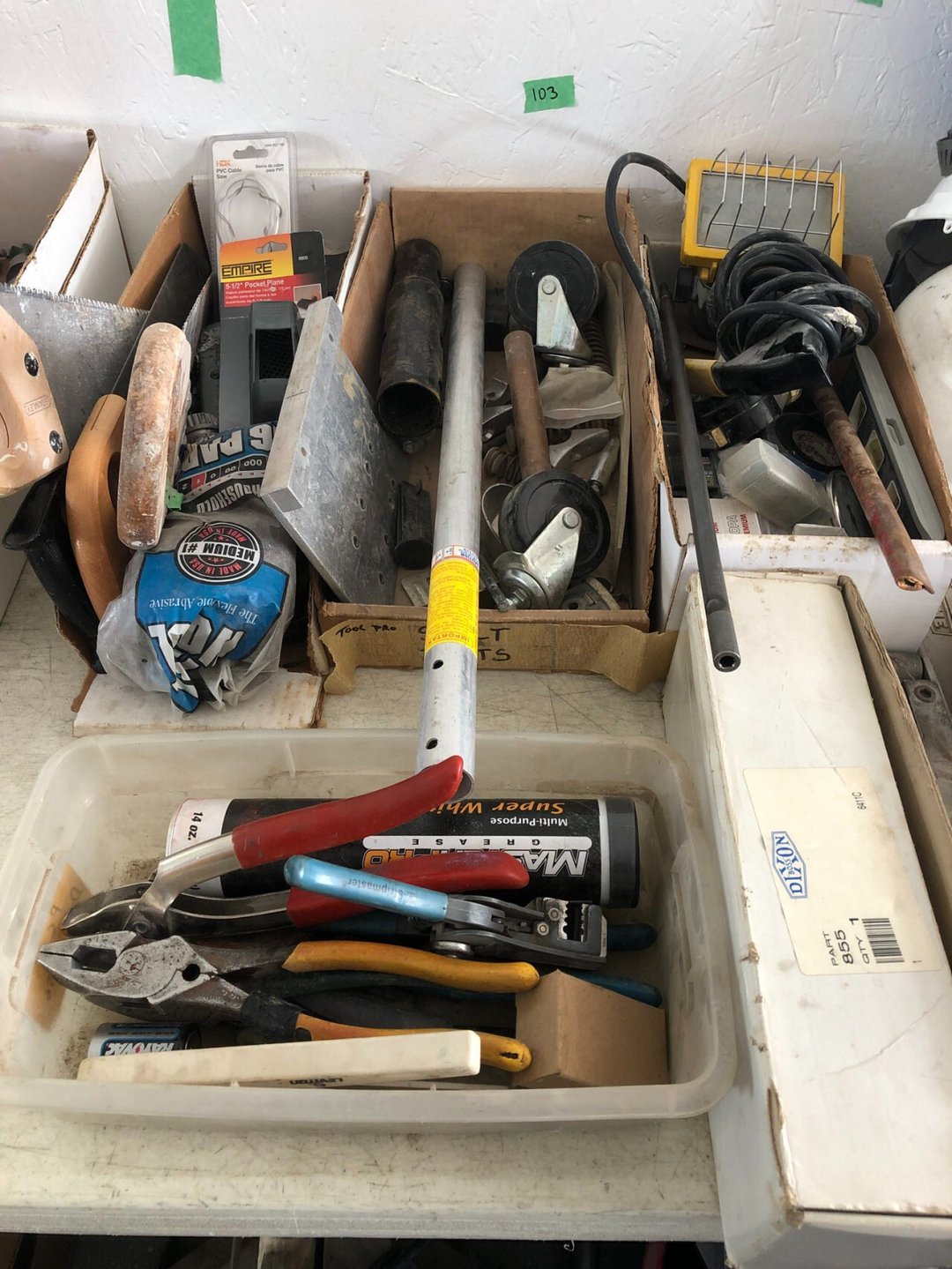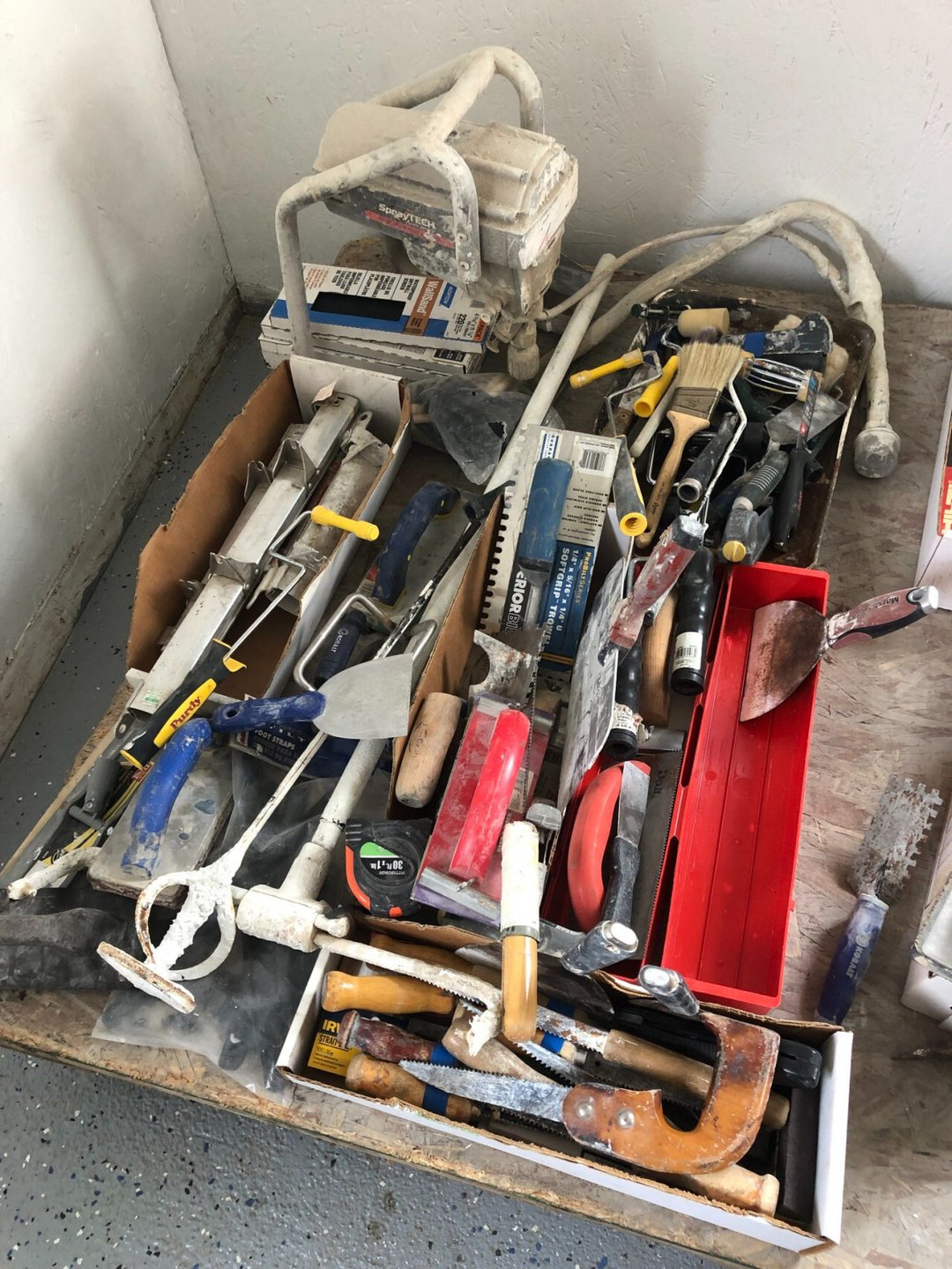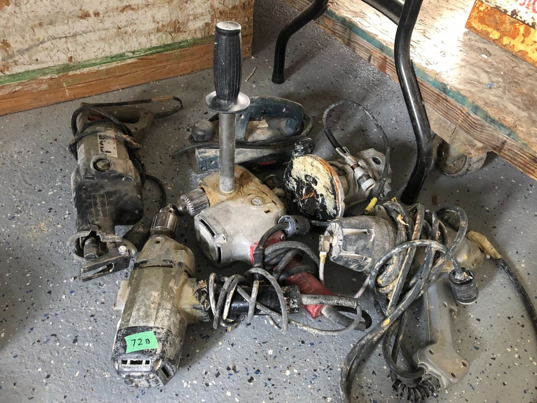 HILTI DX460Nail Gun, Dremel saws / Max with extra blades, MAX CNV400A Coil Nailer, DeWalt 18 V reciprocating saw (DC385), Paslode impulse nailer with case, Senco DuraSpin 14.4V Nailer, Dremel with accessories, BOSTITCH air (SL1838BC) Cap Stapler, Tackle box with miscellaneous hardware, 7 Miscellaneous cases, Tool shop 1 9/16 narrow crown stapler, Bosch CS 20 rip saw with bag, PipeCat PC1000 tubing cutter , Makita magnesium rip saw, RoadToolz Robo laser in case, Porter cable TIGER reciprocating saw, Toolbox with Tools, Paslode impulse utility framing nailer, Vitrex Tile saw, Misc Porter Cable Drills, Saws, lights-, Wet saw table, JET Pedestal 6 " grinder, Miscellaneous parts, PNEU-Tools RAP-A-CAP 150 Capnailer, Misc Clevis, Flat of tools, Flat of Allen wrenches, Dewalt hacksaw blades NIB, Dewalt hacksaw blades NIB, Simson Volt-OHM Meter, Flat of Allen wrenches, Flat of various size wood bits, Miscellaneous tools and files/kneepads, Hoover windtunnel sweeper, RIDGID Shop Vac, Bostitch 10 gallon shop vac, Craftsman 6 gallon shop vac, Craftsman wet/dry 6 gallon shop vac, 12 Gallon shop vac, Shop vac & Vacmaster , Graco gluing cart, Graco gluing cart, Paint machine?, 14 Empty tool cases, JET Dust collector, Mitre-Mite-VN4, 17 Various electric tools, 5 Rip saws, Come-a-long, 7 Corded DeWalt reciprocating saws, 2 DeWalt Drills,heat guns,saber saw, Plastic shelving, Roofing Jacks, 32" Pedestal fan, Makita LS1013 miter saw (10") Mounted, Roofing Jacks, Roofing Jacks, Roofing Jacks, Painting and drywall supplies, HILTI Accessories, miscellaneous tools, Register vent, miscellaneous, Carpet installation tools, 10 Boxes of CertainTeed ridge vents, Skid of #15 Tarpaper, 20+ Boxes of self adhering ice buster, 7 Dryer Jacks, 2 Pair drywall stilts, Assortment of air tools, Assortment of air tools, Milwaukee stapler, screw gun, nailer, Flat of air tools, DeWalt 18VTools, Corded Drill, Senco Nailers, Right angle drill, sawzall, misc, Miscellaneous parts, Bosch tools, Milwaukee right angle drills, Milwaukee right angle drills, Large assortment grease guns, Drywall and tiling supplies,, Aluminum sawhorses, drywall stilts with box, 3 Air/brads nailer, Crown insulation tester, SKIL saw worm drive rip saw, Saber saw, 2 drills, Sheetmetal cutter, Makita rip saw, MK470 Tile saw, Carpet stretching kit, Carpet stretching kit, 2 Wheel hand cart, Chicago Electric worm drive rip saw, 2 Porter Cable Belt sanders, Porter Cable Biscuit/router/door planer, 2 Milwaukee right angle drills, 2 Hand metal shears, Tool tray with drywall tools, 4'x7' Bulletin board, IRWIN Chalk lines/cases/chalk, 2 Flats of tools, 2 Flats of tools, 3 Flats of tools, 2 Boxes wood bore bits , , Miscellaneous tools, 2 hose crimpers, 8 Hardhats, Miscellaneous sockets and wrenches, 3 Boxes miscellaneous hole saws, 2 Boxes miscellaneous hole saws, bore bits, Screws and nails, Miscellaneous air fittings, Spade bits, pipe clamps, magnet, Wire strippers, speed squares, gecko gauges, Speed square, tin snips, pliers, channel locks, Tin snips, pliers, Tin snips, chisel, sockets, Safety triangles, Safety triangles, ECCO Yellow safety light, 2 Boxes safety triangles, Work lights, 2 Boxes kneepads, 2 Boxes caulking guns, 5 boxes Senco 3 1/4x .131" nails, (2) Boxes coil nails 1 3/4"x.120 Roofing Nails,, 2 Buckets of kneepads, Miter saw, 7 Nail aprons, 7 Nail aprons, 7 Nail aprons, , Porter Cable Ripsaw, 1/2" drill, palm sander , Porter cable router with bits, Power Hack saw, Roto zip with accessories, SuperDrive, shrinkfast, QuickDrive, 3 Drills, chargers, Air coil nailer, Miscellaneous tools, Porter cable belt sander and router, Milwaukee chargers, sawzall, rip saw, Drill, reciprocating saws, Makita tools, Makita battery tools, Senco DuraSpin, Senco 701XP Air nailer frame, Senco tools, 4 Parts bins, Parts Cabinet, Rockwell 10 inch table saw (3PH 480V), DeWalt tools, 2 Bosch tools, Framing hammers, Framing hammers, Framing hammers, Framing hammers, Roofing bars and mallet, Porter cable & DeWalt ripsaw, Milwaukee, porter cable ripsaws, Porter cable panel saw, belt sander, Milwaukee 1/2 inch impact, Milwaukee sawzall, DeWalt Sawzall, Hitachi router, Box of T Allen wrenches, Staple guns, Staples, PVC saw blades,, Copemaster saw with stand, Chalk line with chalk, electrical boxes,, Assortment of Senco nails, Makita LS1013 chopsaw, Makita chop saw with extra blade, Miscellaneous wood boring bits, 2 Flats of screwdrivers, Hack saws, bolt cutter head, Nut drivers, Wrist and back supports, sleeves, Fall arrest device, Fall arrest device, Fall arrest device, Miscellaneous tools, tape measures,, Utility knives and blades, Stanley plane, Miscellaneous tools, Makita miter saw, Bionic shield, LP regulator hose, torch head, Black tile cutter, Red tile cutter, Tool cart (contents not included), Fall arrest harness, miscellaneous strapping, Helicoil Kit, Strap Bander, PVC cutter, Toolbox with miscellaneous tools, Air hoses, Fall arrest harnesses, ratchet straps, HD Extension cords, Fall arrest harnesses, Fall arrest harnesses and ratchet straps, Fall arrest harnesses, (3) 6" Lifting straps, Banding material, 6 sling rings, Connecting straps in Cooler, Broomhead, Husky 2 step ladder, 3 step ladder, Keller 5' Fiberglass step ladder, 2 Ladder stabilizers, T Squares, levels, hand saws, Ping pong table, Dry wall tools, 2 Adjustable floor jacks, 4'x8'Rolling cart, 4'x8'Rolling cart, 4'x8'Rolling cart - 4'x8'Rolling cart - contents not included , post hole digger, 8' 10' 14' Fiberglass Ladders, 40' Extension Ladders, cables, Tarps, Steel, Roofing Jakcs, Bottle Jacks, Floor Jacks, Sawhorses, Shop Vacs,& Much More!