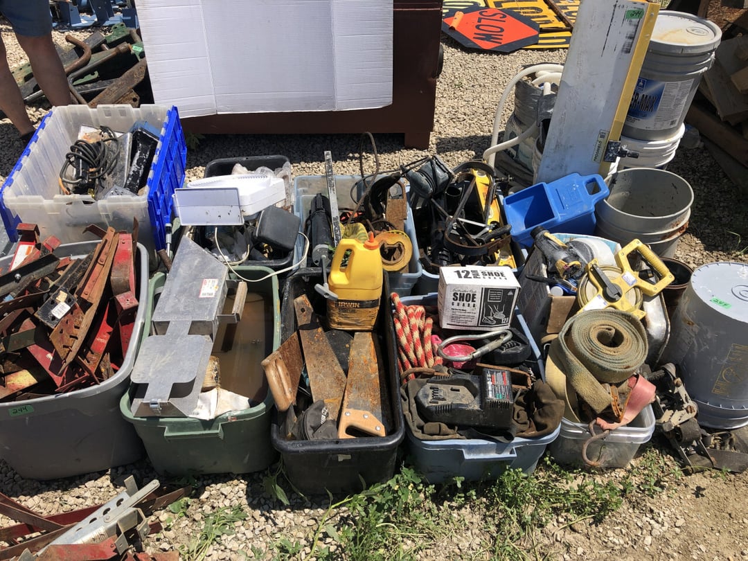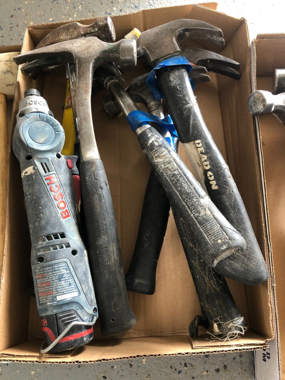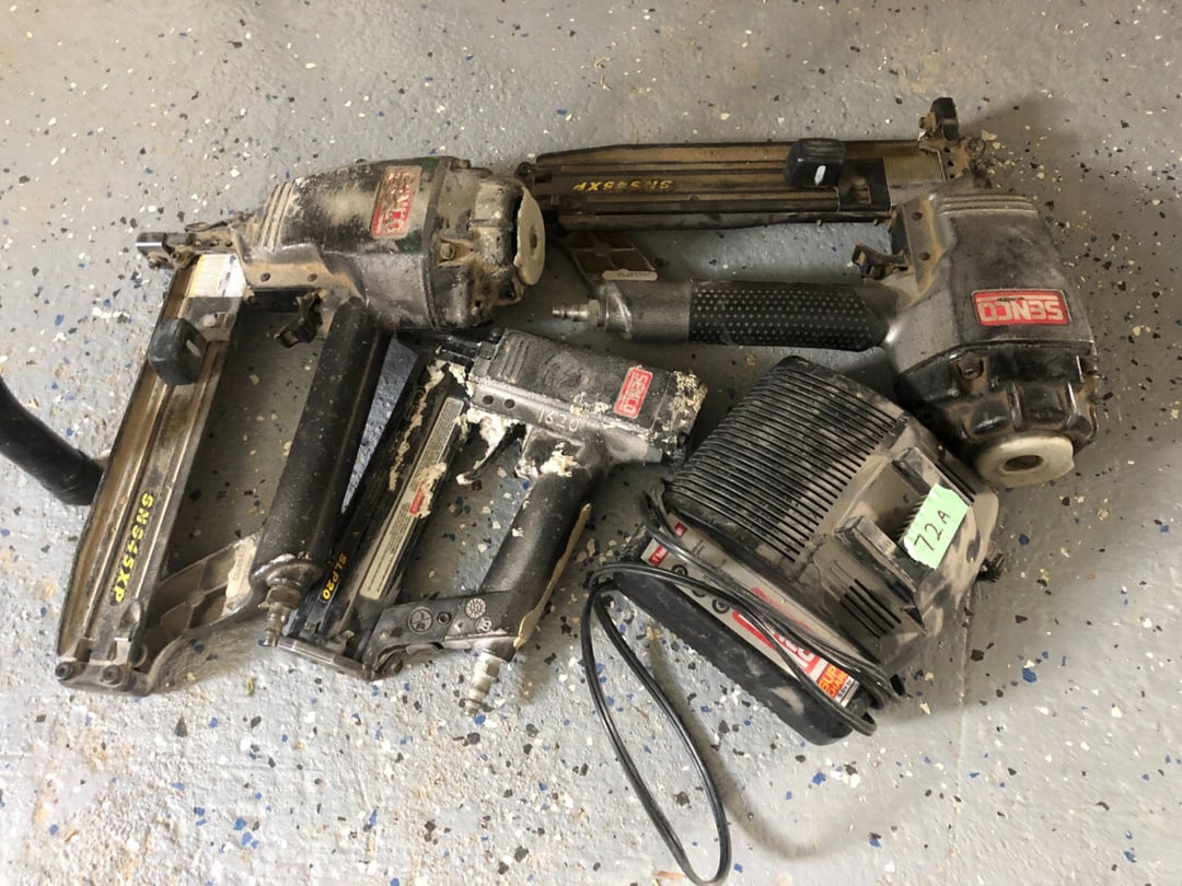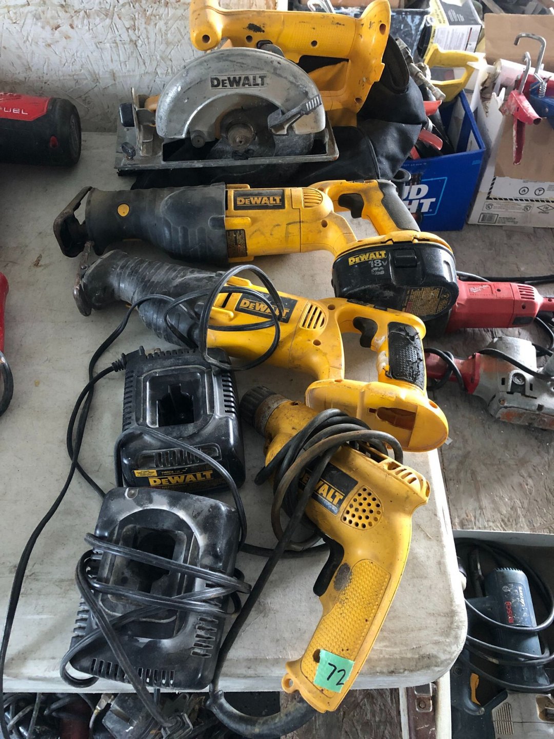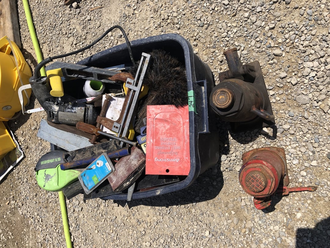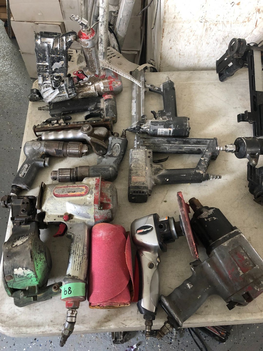 HILTI DX460Nail Gun, Dremel saws / Max with extra blades, MAX CNV400A Coil Nailer, DeWalt 18 V reciprocating saw (DC385), Paslode impulse nailer with case, Senco DuraSpin 14.4V Nailer, Dremel with accessories, BOSTITCH air (SL1838BC) Cap Stapler, Tackle box with miscellaneous hardware, 7 Miscellaneous cases, Tool shop 1 9/16 narrow crown stapler, Bosch CS 20 rip saw with bag, PipeCat PC1000 tubing cutter , Makita magnesium rip saw, RoadToolz Robo laser in case, Porter cable TIGER reciprocating saw, Toolbox with Tools, Paslode impulse utility framing nailer, Vitrex Tile saw, Misc Porter Cable Drills, Saws, lights-, Wet saw table, JET Pedestal 6 " grinder, Miscellaneous parts, PNEU-Tools RAP-A-CAP 150 Capnailer, Misc Clevis, Flat of tools, Flat of Allen wrenches, Dewalt hacksaw blades NIB, Dewalt hacksaw blades NIB, Simson Volt-OHM Meter, Flat of Allen wrenches, Flat of various size wood bits, Miscellaneous tools and files/kneepads, Hoover windtunnel sweeper, RIDGID Shop Vac, Bostitch 10 gallon shop vac, Craftsman 6 gallon shop vac, Craftsman wet/dry 6 gallon shop vac, 12 Gallon shop vac, Shop vac & Vacmaster , Graco gluing cart, Graco gluing cart, Paint machine?, 14 Empty tool cases, JET Dust collector, Mitre-Mite-VN4, 17 Various electric tools, 5 Rip saws, Come-a-long, 7 Corded DeWalt reciprocating saws, 2 DeWalt Drills,heat guns,saber saw, Plastic shelving, Roofing Jacks, 32" Pedestal fan, Makita LS1013 miter saw (10") Mounted, Roofing Jacks, Roofing Jacks, Roofing Jacks, Painting and drywall supplies, HILTI Accessories, miscellaneous tools, Register vent, miscellaneous, Carpet installation tools, 10 Boxes of CertainTeed ridge vents, Skid of #15 Tarpaper, 20+ Boxes of self adhering ice buster, 7 Dryer Jacks, 2 Pair drywall stilts, Assortment of air tools, Assortment of air tools, Milwaukee stapler, screw gun, nailer, Flat of air tools, DeWalt 18VTools, Corded Drill, Senco Nailers, Right angle drill, sawzall, misc, Miscellaneous parts, Bosch tools, Milwaukee right angle drills, Milwaukee right angle drills, Large assortment grease guns, Drywall and tiling supplies,, Aluminum sawhorses, drywall stilts with box, 3 Air/brads nailer, Crown insulation tester, SKIL saw worm drive rip saw, Saber saw, 2 drills, Sheetmetal cutter, Makita rip saw, MK470 Tile saw, Carpet stretching kit, Carpet stretching kit, 2 Wheel hand cart, Chicago Electric worm drive rip saw, 2 Porter Cable Belt sanders, Porter Cable Biscuit/router/door planer, 2 Milwaukee right angle drills, 2 Hand metal shears, Tool tray with drywall tools, 4'x7' Bulletin board, IRWIN Chalk lines/cases/chalk, 2 Flats of tools, 2 Flats of tools, 3 Flats of tools, 2 Boxes wood bore bits , , Miscellaneous tools, 2 hose crimpers, 8 Hardhats, Miscellaneous sockets and wrenches, 3 Boxes miscellaneous hole saws, 2 Boxes miscellaneous hole saws, bore bits, Screws and nails, Miscellaneous air fittings, Spade bits, pipe clamps, magnet, Wire strippers, speed squares, gecko gauges, Speed square, tin snips, pliers, channel locks, Tin snips, pliers, Tin snips, chisel, sockets, Safety triangles, Safety triangles, ECCO Yellow safety light, 2 Boxes safety triangles, Work lights, 2 Boxes kneepads, 2 Boxes caulking guns, 5 boxes Senco 3 1/4x .131" nails, (2) Boxes coil nails 1 3/4"x.120 Roofing Nails,, 2 Buckets of kneepads, Miter saw, 7 Nail aprons, 7 Nail aprons, 7 Nail aprons, , Porter Cable Ripsaw, 1/2" drill, palm sander , Porter cable router with bits, Power Hack saw, Roto zip with accessories, SuperDrive, shrinkfast, QuickDrive, 3 Drills, chargers, Air coil nailer, Miscellaneous tools, Porter cable belt sander and router, Milwaukee chargers, sawzall, rip saw, Drill, reciprocating saws, Makita tools, Makita battery tools, Senco DuraSpin, Senco 701XP Air nailer frame, Senco tools, 4 Parts bins, Parts Cabinet, Rockwell 10 inch table saw (3PH 480V), DeWalt tools, 2 Bosch tools, Framing hammers, Framing hammers, Framing hammers, Framing hammers, Roofing bars and mallet, Porter cable & DeWalt ripsaw, Milwaukee, porter cable ripsaws, Porter cable panel saw, belt sander, Milwaukee 1/2 inch impact, Milwaukee sawzall, DeWalt Sawzall, Hitachi router, Box of T Allen wrenches, Staple guns, Staples, PVC saw blades,, Copemaster saw with stand, Chalk line with chalk, electrical boxes,, Assortment of Senco nails, Makita LS1013 chopsaw, Makita chop saw with extra blade, Miscellaneous wood boring bits, 2 Flats of screwdrivers, Hack saws, bolt cutter head, Nut drivers, Wrist and back supports, sleeves, Fall arrest device, Fall arrest device, Fall arrest device, Miscellaneous tools, tape measures,, Utility knives and blades, Stanley plane, Miscellaneous tools, Makita miter saw, Bionic shield, LP regulator hose, torch head, Black tile cutter, Red tile cutter, Tool cart (contents not included), Fall arrest harness, miscellaneous strapping, Helicoil Kit, Strap Bander, PVC cutter, Toolbox with miscellaneous tools, Air hoses, Fall arrest harnesses, ratchet straps, HD Extension cords, Fall arrest harnesses, Fall arrest harnesses and ratchet straps, Fall arrest harnesses, (3) 6" Lifting straps, Banding material, 6 sling rings, Connecting straps in Cooler, Broomhead, Husky 2 step ladder, 3 step ladder, Keller 5' Fiberglass step ladder, 2 Ladder stabilizers, T Squares, levels, hand saws, Ping pong table, Dry wall tools, 2 Adjustable floor jacks, 4'x8'Rolling cart, 4'x8'Rolling cart, 4'x8'Rolling cart - 4'x8'Rolling cart - contents not included , post hole digger, 8' 10' 14' Fiberglass Ladders, 40' Extension Ladders, cables, Tarps, Steel, Roofing Jakcs, Bottle Jacks, Floor Jacks, Sawhorses, Shop Vacs,& Much More!