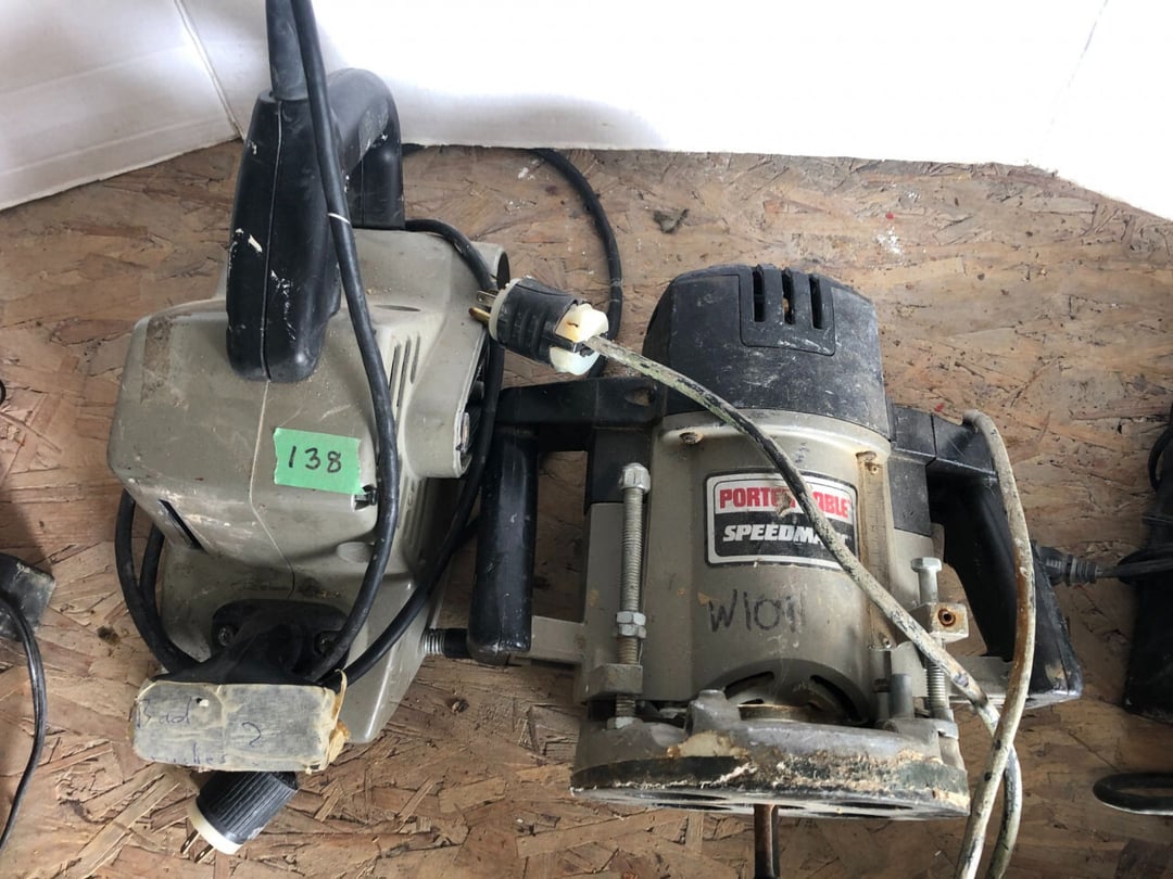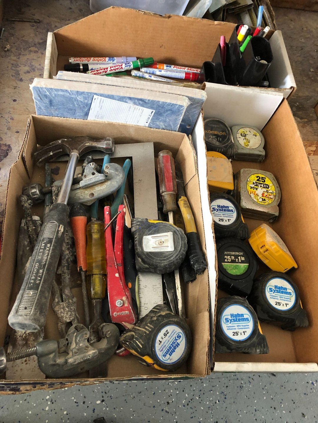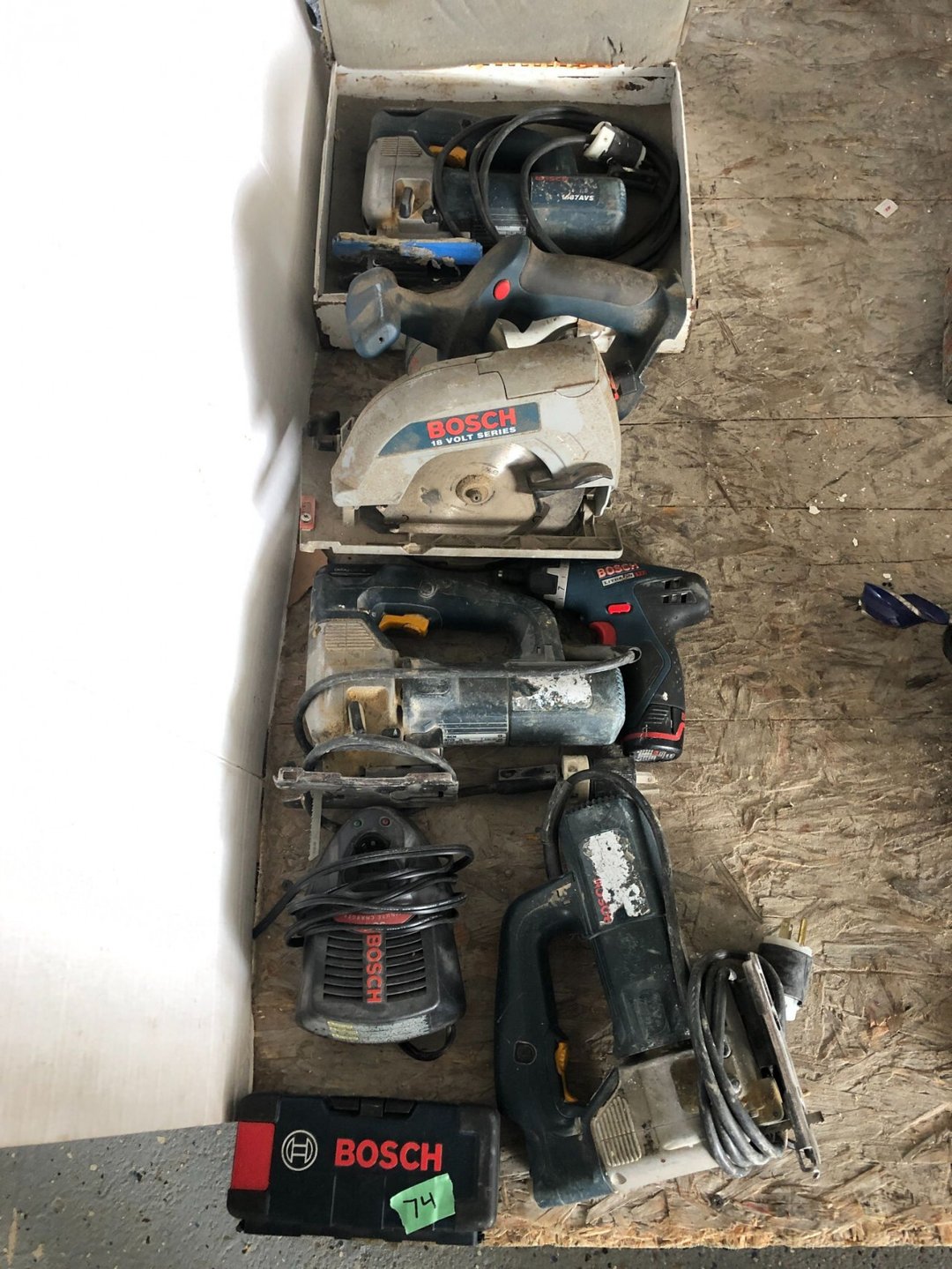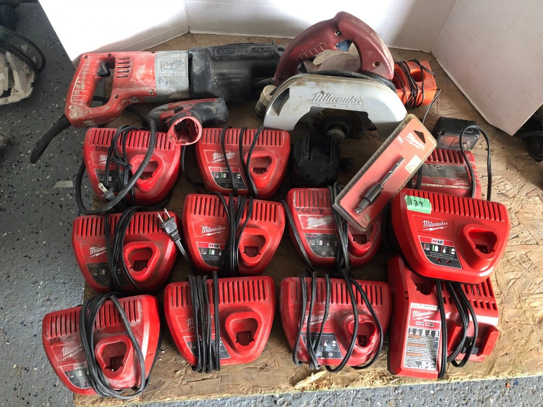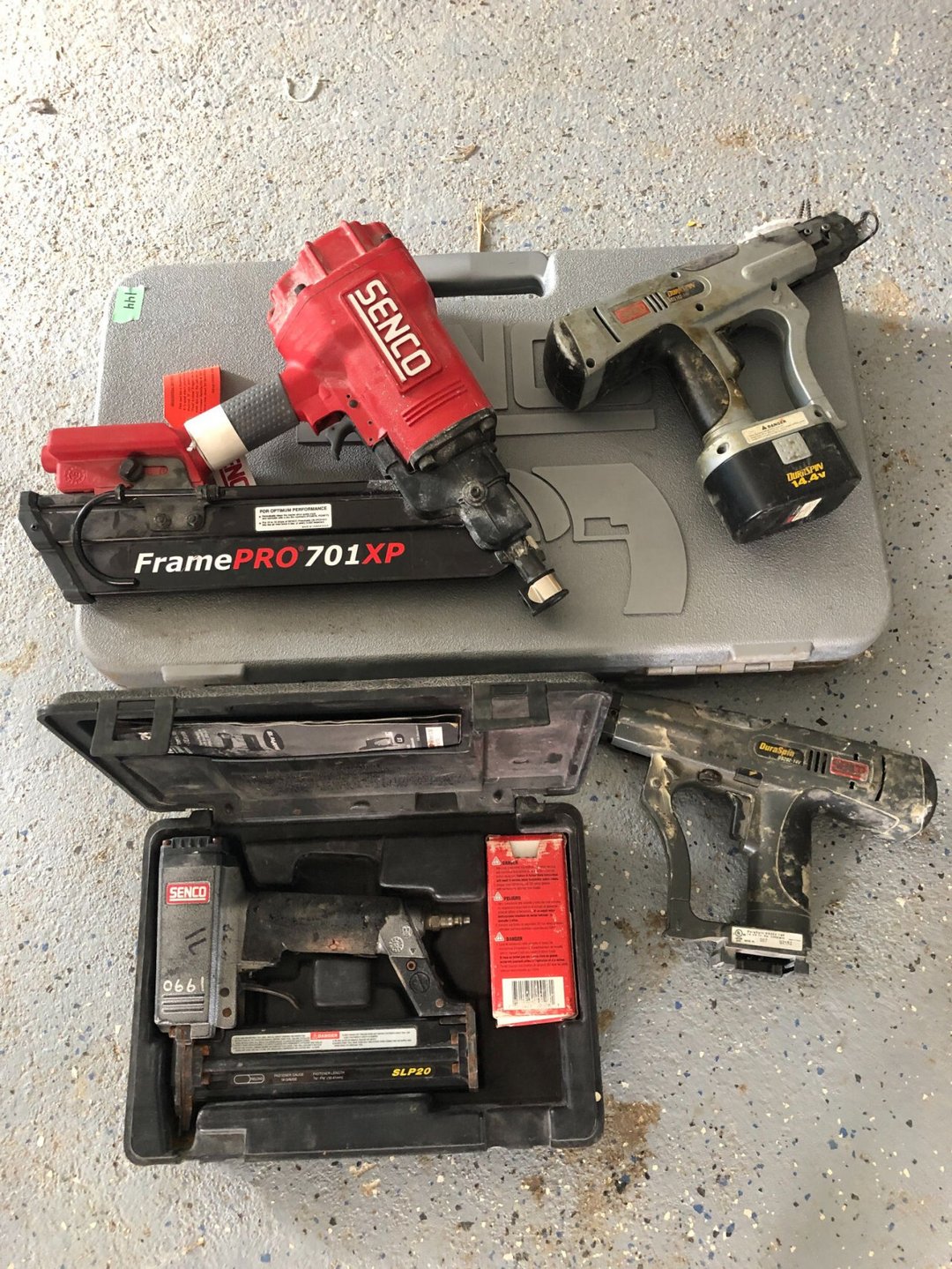 HILTI DX460Nail Gun, Dremel saws / Max with extra blades, MAX CNV400A Coil Nailer, DeWalt 18 V reciprocating saw (DC385), Paslode impulse nailer with case, Senco DuraSpin 14.4V Nailer, Dremel with accessories, BOSTITCH air (SL1838BC) Cap Stapler, Tackle box with miscellaneous hardware, 7 Miscellaneous cases, Tool shop 1 9/16 narrow crown stapler, Bosch CS 20 rip saw with bag, PipeCat PC1000 tubing cutter , Makita magnesium rip saw, RoadToolz Robo laser in case, Porter cable TIGER reciprocating saw, Toolbox with Tools, Paslode impulse utility framing nailer, Vitrex Tile saw, Misc Porter Cable Drills, Saws, lights-, Wet saw table, JET Pedestal 6 " grinder, Miscellaneous parts, PNEU-Tools RAP-A-CAP 150 Capnailer, Misc Clevis, Flat of tools, Flat of Allen wrenches, Dewalt hacksaw blades NIB, Dewalt hacksaw blades NIB, Simson Volt-OHM Meter, Flat of Allen wrenches, Flat of various size wood bits, Miscellaneous tools and files/kneepads, Hoover windtunnel sweeper, RIDGID Shop Vac, Bostitch 10 gallon shop vac, Craftsman 6 gallon shop vac, Craftsman wet/dry 6 gallon shop vac, 12 Gallon shop vac, Shop vac & Vacmaster , Graco gluing cart, Graco gluing cart, Paint machine?, 14 Empty tool cases, JET Dust collector, Mitre-Mite-VN4, 17 Various electric tools, 5 Rip saws, Come-a-long, 7 Corded DeWalt reciprocating saws, 2 DeWalt Drills,heat guns,saber saw, Plastic shelving, Roofing Jacks, 32" Pedestal fan, Makita LS1013 miter saw (10") Mounted, Roofing Jacks, Roofing Jacks, Roofing Jacks, Painting and drywall supplies, HILTI Accessories, miscellaneous tools, Register vent, miscellaneous, Carpet installation tools, 10 Boxes of CertainTeed ridge vents, Skid of #15 Tarpaper, 20+ Boxes of self adhering ice buster, 7 Dryer Jacks, 2 Pair drywall stilts, Assortment of air tools, Assortment of air tools, Milwaukee stapler, screw gun, nailer, Flat of air tools, DeWalt 18VTools, Corded Drill, Senco Nailers, Right angle drill, sawzall, misc, Miscellaneous parts, Bosch tools, Milwaukee right angle drills, Milwaukee right angle drills, Large assortment grease guns, Drywall and tiling supplies,, Aluminum sawhorses, drywall stilts with box, 3 Air/brads nailer, Crown insulation tester, SKIL saw worm drive rip saw, Saber saw, 2 drills, Sheetmetal cutter, Makita rip saw, MK470 Tile saw, Carpet stretching kit, Carpet stretching kit, 2 Wheel hand cart, Chicago Electric worm drive rip saw, 2 Porter Cable Belt sanders, Porter Cable Biscuit/router/door planer, 2 Milwaukee right angle drills, 2 Hand metal shears, Tool tray with drywall tools, 4'x7' Bulletin board, IRWIN Chalk lines/cases/chalk, 2 Flats of tools, 2 Flats of tools, 3 Flats of tools, 2 Boxes wood bore bits , , Miscellaneous tools, 2 hose crimpers, 8 Hardhats, Miscellaneous sockets and wrenches, 3 Boxes miscellaneous hole saws, 2 Boxes miscellaneous hole saws, bore bits, Screws and nails, Miscellaneous air fittings, Spade bits, pipe clamps, magnet, Wire strippers, speed squares, gecko gauges, Speed square, tin snips, pliers, channel locks, Tin snips, pliers, Tin snips, chisel, sockets, Safety triangles, Safety triangles, ECCO Yellow safety light, 2 Boxes safety triangles, Work lights, 2 Boxes kneepads, 2 Boxes caulking guns, 5 boxes Senco 3 1/4x .131" nails, (2) Boxes coil nails 1 3/4"x.120 Roofing Nails,, 2 Buckets of kneepads, Miter saw, 7 Nail aprons, 7 Nail aprons, 7 Nail aprons, , Porter Cable Ripsaw, 1/2" drill, palm sander , Porter cable router with bits, Power Hack saw, Roto zip with accessories, SuperDrive, shrinkfast, QuickDrive, 3 Drills, chargers, Air coil nailer, Miscellaneous tools, Porter cable belt sander and router, Milwaukee chargers, sawzall, rip saw, Drill, reciprocating saws, Makita tools, Makita battery tools, Senco DuraSpin, Senco 701XP Air nailer frame, Senco tools, 4 Parts bins, Parts Cabinet, Rockwell 10 inch table saw (3PH 480V), DeWalt tools, 2 Bosch tools, Framing hammers, Framing hammers, Framing hammers, Framing hammers, Roofing bars and mallet, Porter cable & DeWalt ripsaw, Milwaukee, porter cable ripsaws, Porter cable panel saw, belt sander, Milwaukee 1/2 inch impact, Milwaukee sawzall, DeWalt Sawzall, Hitachi router, Box of T Allen wrenches, Staple guns, Staples, PVC saw blades,, Copemaster saw with stand, Chalk line with chalk, electrical boxes,, Assortment of Senco nails, Makita LS1013 chopsaw, Makita chop saw with extra blade, Miscellaneous wood boring bits, 2 Flats of screwdrivers, Hack saws, bolt cutter head, Nut drivers, Wrist and back supports, sleeves, Fall arrest device, Fall arrest device, Fall arrest device, Miscellaneous tools, tape measures,, Utility knives and blades, Stanley plane, Miscellaneous tools, Makita miter saw, Bionic shield, LP regulator hose, torch head, Black tile cutter, Red tile cutter, Tool cart (contents not included), Fall arrest harness, miscellaneous strapping, Helicoil Kit, Strap Bander, PVC cutter, Toolbox with miscellaneous tools, Air hoses, Fall arrest harnesses, ratchet straps, HD Extension cords, Fall arrest harnesses, Fall arrest harnesses and ratchet straps, Fall arrest harnesses, (3) 6" Lifting straps, Banding material, 6 sling rings, Connecting straps in Cooler, Broomhead, Husky 2 step ladder, 3 step ladder, Keller 5' Fiberglass step ladder, 2 Ladder stabilizers, T Squares, levels, hand saws, Ping pong table, Dry wall tools, 2 Adjustable floor jacks, 4'x8'Rolling cart, 4'x8'Rolling cart, 4'x8'Rolling cart - 4'x8'Rolling cart - contents not included , post hole digger, 8' 10' 14' Fiberglass Ladders, 40' Extension Ladders, cables, Tarps, Steel, Roofing Jakcs, Bottle Jacks, Floor Jacks, Sawhorses, Shop Vacs,& Much More!