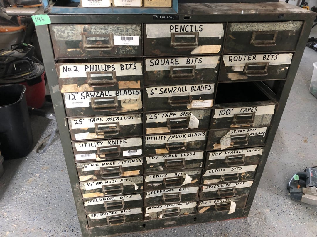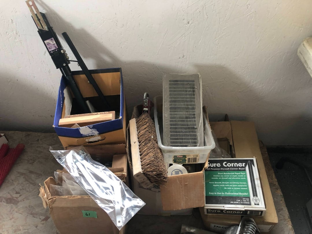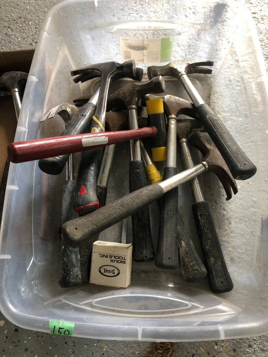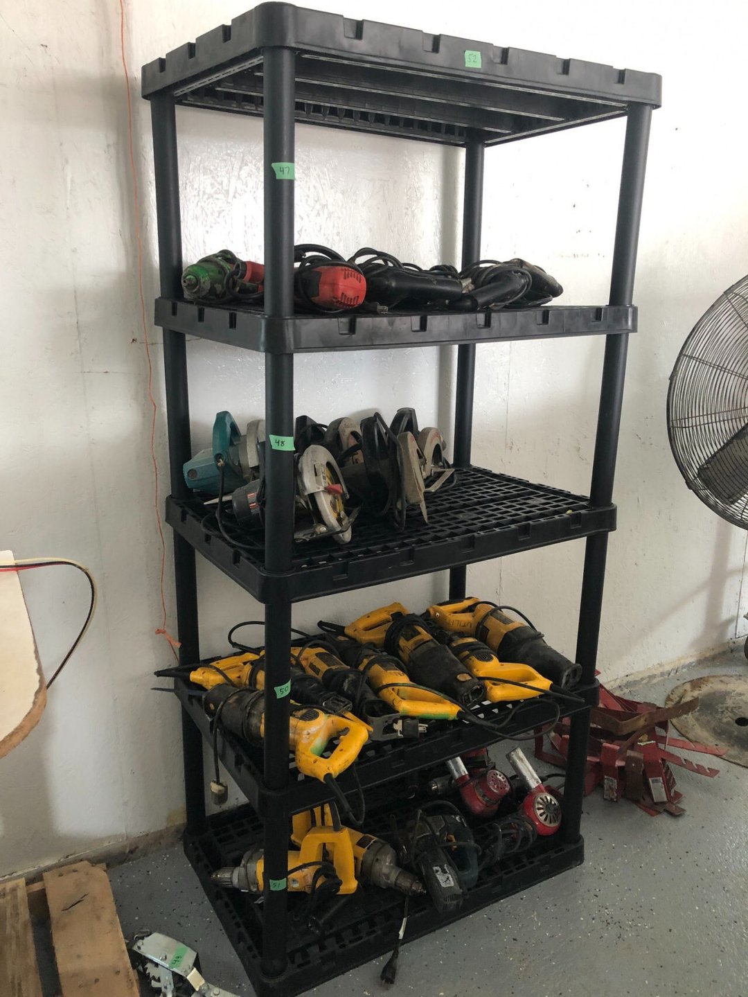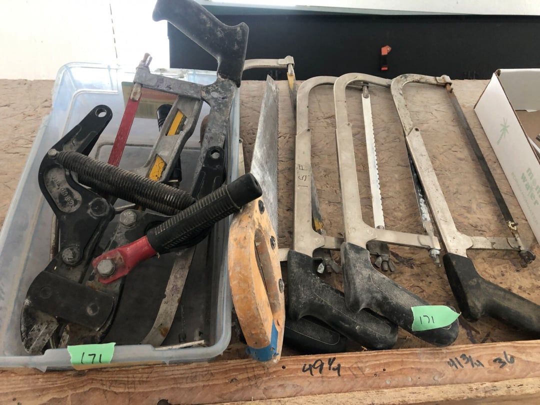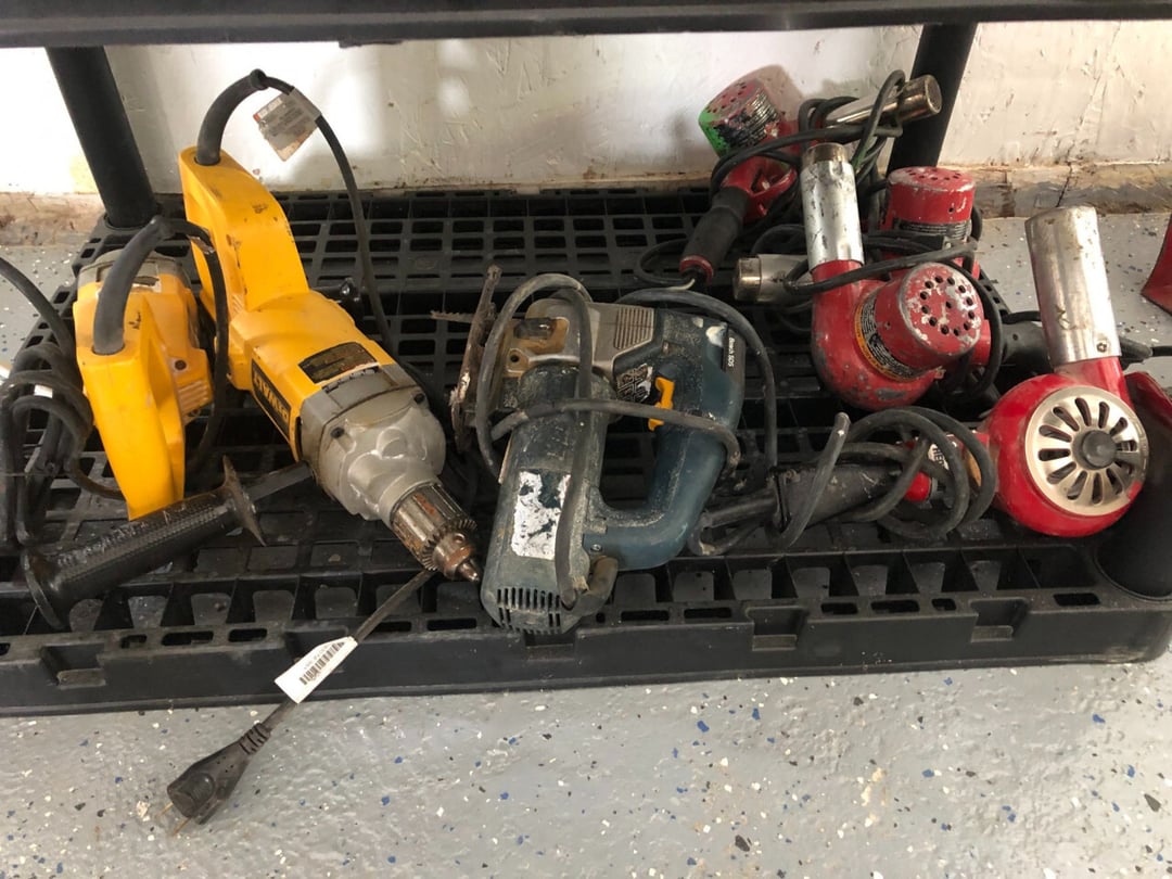 HILTI DX460Nail Gun, Dremel saws / Max with extra blades, MAX CNV400A Coil Nailer, DeWalt 18 V reciprocating saw (DC385), Paslode impulse nailer with case, Senco DuraSpin 14.4V Nailer, Dremel with accessories, BOSTITCH air (SL1838BC) Cap Stapler, Tackle box with miscellaneous hardware, 7 Miscellaneous cases, Tool shop 1 9/16 narrow crown stapler, Bosch CS 20 rip saw with bag, PipeCat PC1000 tubing cutter , Makita magnesium rip saw, RoadToolz Robo laser in case, Porter cable TIGER reciprocating saw, Toolbox with Tools, Paslode impulse utility framing nailer, Vitrex Tile saw, Misc Porter Cable Drills, Saws, lights-, Wet saw table, JET Pedestal 6 " grinder, Miscellaneous parts, PNEU-Tools RAP-A-CAP 150 Capnailer, Misc Clevis, Flat of tools, Flat of Allen wrenches, Dewalt hacksaw blades NIB, Dewalt hacksaw blades NIB, Simson Volt-OHM Meter, Flat of Allen wrenches, Flat of various size wood bits, Miscellaneous tools and files/kneepads, Hoover windtunnel sweeper, RIDGID Shop Vac, Bostitch 10 gallon shop vac, Craftsman 6 gallon shop vac, Craftsman wet/dry 6 gallon shop vac, 12 Gallon shop vac, Shop vac & Vacmaster , Graco gluing cart, Graco gluing cart, Paint machine?, 14 Empty tool cases, JET Dust collector, Mitre-Mite-VN4, 17 Various electric tools, 5 Rip saws, Come-a-long, 7 Corded DeWalt reciprocating saws, 2 DeWalt Drills,heat guns,saber saw, Plastic shelving, Roofing Jacks, 32" Pedestal fan, Makita LS1013 miter saw (10") Mounted, Roofing Jacks, Roofing Jacks, Roofing Jacks, Painting and drywall supplies, HILTI Accessories, miscellaneous tools, Register vent, miscellaneous, Carpet installation tools, 10 Boxes of CertainTeed ridge vents, Skid of #15 Tarpaper, 20+ Boxes of self adhering ice buster, 7 Dryer Jacks, 2 Pair drywall stilts, Assortment of air tools, Assortment of air tools, Milwaukee stapler, screw gun, nailer, Flat of air tools, DeWalt 18VTools, Corded Drill, Senco Nailers, Right angle drill, sawzall, misc, Miscellaneous parts, Bosch tools, Milwaukee right angle drills, Milwaukee right angle drills, Large assortment grease guns, Drywall and tiling supplies,, Aluminum sawhorses, drywall stilts with box, 3 Air/brads nailer, Crown insulation tester, SKIL saw worm drive rip saw, Saber saw, 2 drills, Sheetmetal cutter, Makita rip saw, MK470 Tile saw, Carpet stretching kit, Carpet stretching kit, 2 Wheel hand cart, Chicago Electric worm drive rip saw, 2 Porter Cable Belt sanders, Porter Cable Biscuit/router/door planer, 2 Milwaukee right angle drills, 2 Hand metal shears, Tool tray with drywall tools, 4'x7' Bulletin board, IRWIN Chalk lines/cases/chalk, 2 Flats of tools, 2 Flats of tools, 3 Flats of tools, 2 Boxes wood bore bits , , Miscellaneous tools, 2 hose crimpers, 8 Hardhats, Miscellaneous sockets and wrenches, 3 Boxes miscellaneous hole saws, 2 Boxes miscellaneous hole saws, bore bits, Screws and nails, Miscellaneous air fittings, Spade bits, pipe clamps, magnet, Wire strippers, speed squares, gecko gauges, Speed square, tin snips, pliers, channel locks, Tin snips, pliers, Tin snips, chisel, sockets, Safety triangles, Safety triangles, ECCO Yellow safety light, 2 Boxes safety triangles, Work lights, 2 Boxes kneepads, 2 Boxes caulking guns, 5 boxes Senco 3 1/4x .131" nails, (2) Boxes coil nails 1 3/4"x.120 Roofing Nails,, 2 Buckets of kneepads, Miter saw, 7 Nail aprons, 7 Nail aprons, 7 Nail aprons, , Porter Cable Ripsaw, 1/2" drill, palm sander , Porter cable router with bits, Power Hack saw, Roto zip with accessories, SuperDrive, shrinkfast, QuickDrive, 3 Drills, chargers, Air coil nailer, Miscellaneous tools, Porter cable belt sander and router, Milwaukee chargers, sawzall, rip saw, Drill, reciprocating saws, Makita tools, Makita battery tools, Senco DuraSpin, Senco 701XP Air nailer frame, Senco tools, 4 Parts bins, Parts Cabinet, Rockwell 10 inch table saw (3PH 480V), DeWalt tools, 2 Bosch tools, Framing hammers, Framing hammers, Framing hammers, Framing hammers, Roofing bars and mallet, Porter cable & DeWalt ripsaw, Milwaukee, porter cable ripsaws, Porter cable panel saw, belt sander, Milwaukee 1/2 inch impact, Milwaukee sawzall, DeWalt Sawzall, Hitachi router, Box of T Allen wrenches, Staple guns, Staples, PVC saw blades,, Copemaster saw with stand, Chalk line with chalk, electrical boxes,, Assortment of Senco nails, Makita LS1013 chopsaw, Makita chop saw with extra blade, Miscellaneous wood boring bits, 2 Flats of screwdrivers, Hack saws, bolt cutter head, Nut drivers, Wrist and back supports, sleeves, Fall arrest device, Fall arrest device, Fall arrest device, Miscellaneous tools, tape measures,, Utility knives and blades, Stanley plane, Miscellaneous tools, Makita miter saw, Bionic shield, LP regulator hose, torch head, Black tile cutter, Red tile cutter, Tool cart (contents not included), Fall arrest harness, miscellaneous strapping, Helicoil Kit, Strap Bander, PVC cutter, Toolbox with miscellaneous tools, Air hoses, Fall arrest harnesses, ratchet straps, HD Extension cords, Fall arrest harnesses, Fall arrest harnesses and ratchet straps, Fall arrest harnesses, (3) 6" Lifting straps, Banding material, 6 sling rings, Connecting straps in Cooler, Broomhead, Husky 2 step ladder, 3 step ladder, Keller 5' Fiberglass step ladder, 2 Ladder stabilizers, T Squares, levels, hand saws, Ping pong table, Dry wall tools, 2 Adjustable floor jacks, 4'x8'Rolling cart, 4'x8'Rolling cart, 4'x8'Rolling cart - 4'x8'Rolling cart - contents not included , post hole digger, 8' 10' 14' Fiberglass Ladders, 40' Extension Ladders, cables, Tarps, Steel, Roofing Jakcs, Bottle Jacks, Floor Jacks, Sawhorses, Shop Vacs,& Much More!