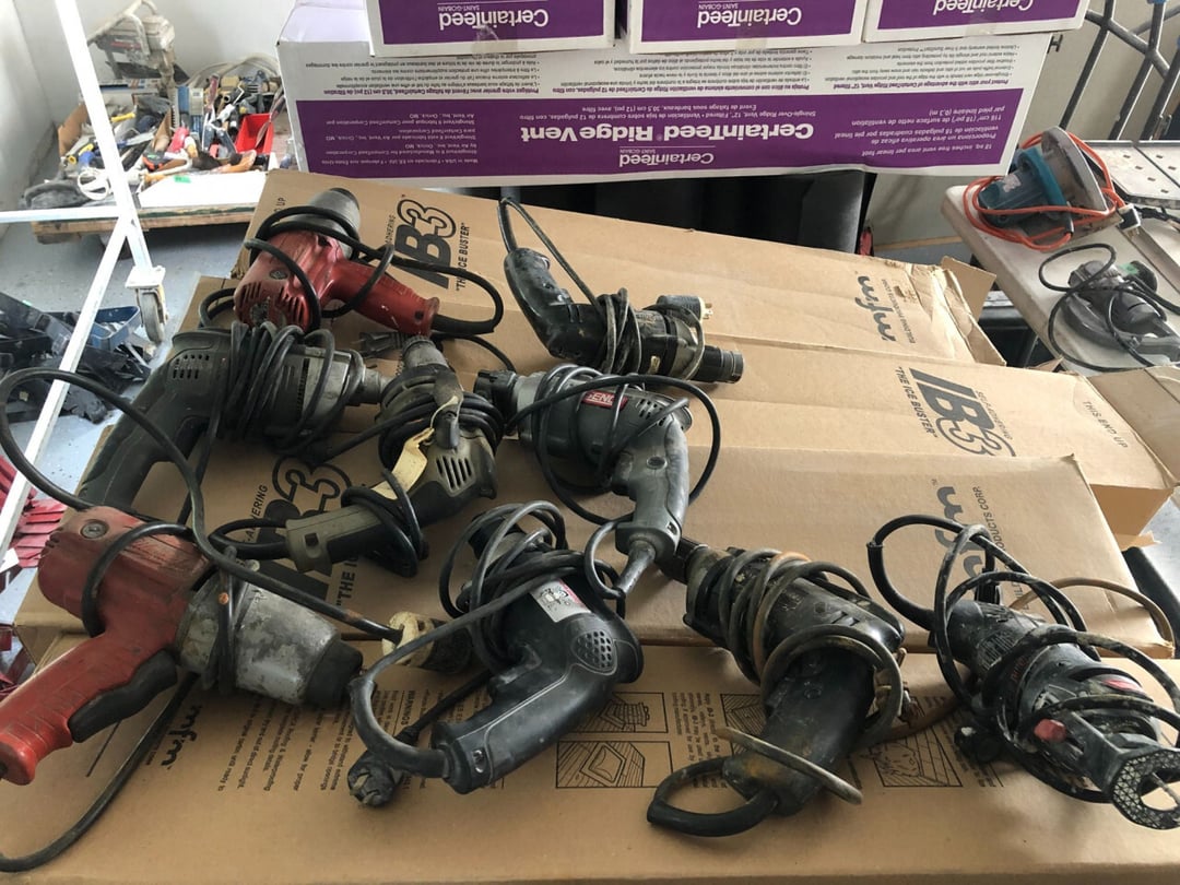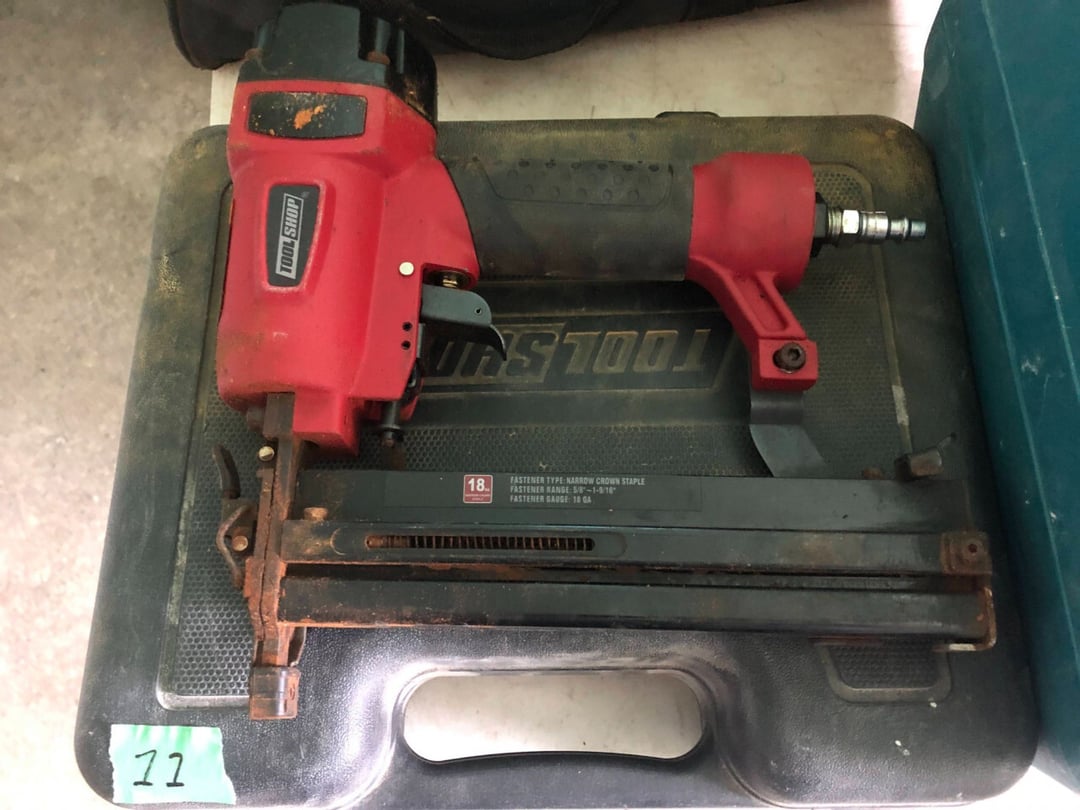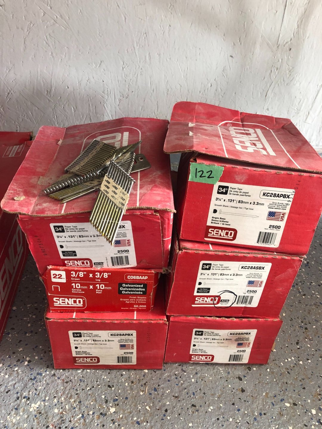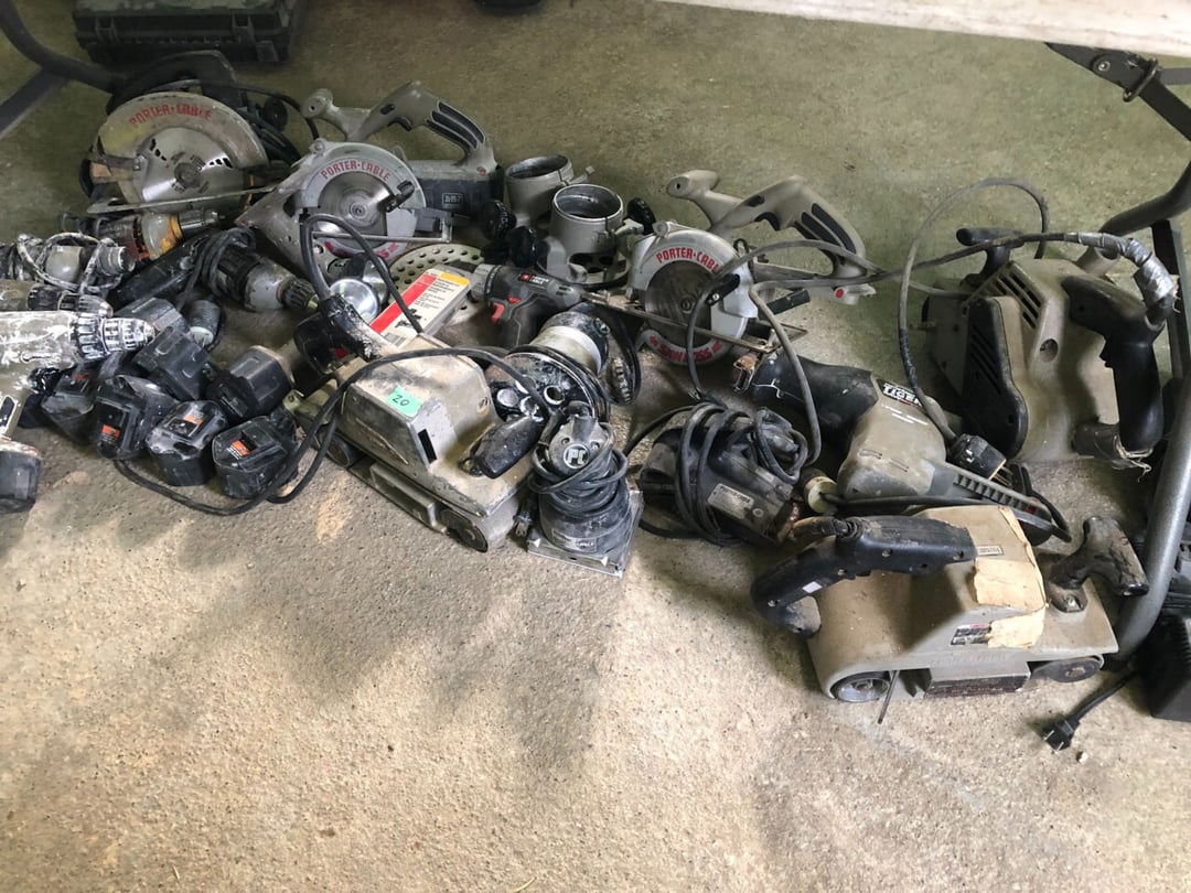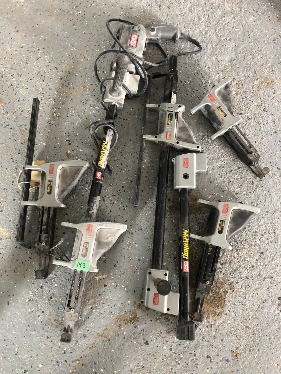 HILTI DX460Nail Gun, Dremel saws / Max with extra blades, MAX CNV400A Coil Nailer, DeWalt 18 V reciprocating saw (DC385), Paslode impulse nailer with case, Senco DuraSpin 14.4V Nailer, Dremel with accessories, BOSTITCH air (SL1838BC) Cap Stapler, Tackle box with miscellaneous hardware, 7 Miscellaneous cases, Tool shop 1 9/16 narrow crown stapler, Bosch CS 20 rip saw with bag, PipeCat PC1000 tubing cutter , Makita magnesium rip saw, RoadToolz Robo laser in case, Porter cable TIGER reciprocating saw, Toolbox with Tools, Paslode impulse utility framing nailer, Vitrex Tile saw, Misc Porter Cable Drills, Saws, lights-, Wet saw table, JET Pedestal 6 " grinder, Miscellaneous parts, PNEU-Tools RAP-A-CAP 150 Capnailer, Misc Clevis, Flat of tools, Flat of Allen wrenches, Dewalt hacksaw blades NIB, Dewalt hacksaw blades NIB, Simson Volt-OHM Meter, Flat of Allen wrenches, Flat of various size wood bits, Miscellaneous tools and files/kneepads, Hoover windtunnel sweeper, RIDGID Shop Vac, Bostitch 10 gallon shop vac, Craftsman 6 gallon shop vac, Craftsman wet/dry 6 gallon shop vac, 12 Gallon shop vac, Shop vac & Vacmaster , Graco gluing cart, Graco gluing cart, Paint machine?, 14 Empty tool cases, JET Dust collector, Mitre-Mite-VN4, 17 Various electric tools, 5 Rip saws, Come-a-long, 7 Corded DeWalt reciprocating saws, 2 DeWalt Drills,heat guns,saber saw, Plastic shelving, Roofing Jacks, 32" Pedestal fan, Makita LS1013 miter saw (10") Mounted, Roofing Jacks, Roofing Jacks, Roofing Jacks, Painting and drywall supplies, HILTI Accessories, miscellaneous tools, Register vent, miscellaneous, Carpet installation tools, 10 Boxes of CertainTeed ridge vents, Skid of #15 Tarpaper, 20+ Boxes of self adhering ice buster, 7 Dryer Jacks, 2 Pair drywall stilts, Assortment of air tools, Assortment of air tools, Milwaukee stapler, screw gun, nailer, Flat of air tools, DeWalt 18VTools, Corded Drill, Senco Nailers, Right angle drill, sawzall, misc, Miscellaneous parts, Bosch tools, Milwaukee right angle drills, Milwaukee right angle drills, Large assortment grease guns, Drywall and tiling supplies,, Aluminum sawhorses, drywall stilts with box, 3 Air/brads nailer, Crown insulation tester, SKIL saw worm drive rip saw, Saber saw, 2 drills, Sheetmetal cutter, Makita rip saw, MK470 Tile saw, Carpet stretching kit, Carpet stretching kit, 2 Wheel hand cart, Chicago Electric worm drive rip saw, 2 Porter Cable Belt sanders, Porter Cable Biscuit/router/door planer, 2 Milwaukee right angle drills, 2 Hand metal shears, Tool tray with drywall tools, 4'x7' Bulletin board, IRWIN Chalk lines/cases/chalk, 2 Flats of tools, 2 Flats of tools, 3 Flats of tools, 2 Boxes wood bore bits , , Miscellaneous tools, 2 hose crimpers, 8 Hardhats, Miscellaneous sockets and wrenches, 3 Boxes miscellaneous hole saws, 2 Boxes miscellaneous hole saws, bore bits, Screws and nails, Miscellaneous air fittings, Spade bits, pipe clamps, magnet, Wire strippers, speed squares, gecko gauges, Speed square, tin snips, pliers, channel locks, Tin snips, pliers, Tin snips, chisel, sockets, Safety triangles, Safety triangles, ECCO Yellow safety light, 2 Boxes safety triangles, Work lights, 2 Boxes kneepads, 2 Boxes caulking guns, 5 boxes Senco 3 1/4x .131" nails, (2) Boxes coil nails 1 3/4"x.120 Roofing Nails,, 2 Buckets of kneepads, Miter saw, 7 Nail aprons, 7 Nail aprons, 7 Nail aprons, , Porter Cable Ripsaw, 1/2" drill, palm sander , Porter cable router with bits, Power Hack saw, Roto zip with accessories, SuperDrive, shrinkfast, QuickDrive, 3 Drills, chargers, Air coil nailer, Miscellaneous tools, Porter cable belt sander and router, Milwaukee chargers, sawzall, rip saw, Drill, reciprocating saws, Makita tools, Makita battery tools, Senco DuraSpin, Senco 701XP Air nailer frame, Senco tools, 4 Parts bins, Parts Cabinet, Rockwell 10 inch table saw (3PH 480V), DeWalt tools, 2 Bosch tools, Framing hammers, Framing hammers, Framing hammers, Framing hammers, Roofing bars and mallet, Porter cable & DeWalt ripsaw, Milwaukee, porter cable ripsaws, Porter cable panel saw, belt sander, Milwaukee 1/2 inch impact, Milwaukee sawzall, DeWalt Sawzall, Hitachi router, Box of T Allen wrenches, Staple guns, Staples, PVC saw blades,, Copemaster saw with stand, Chalk line with chalk, electrical boxes,, Assortment of Senco nails, Makita LS1013 chopsaw, Makita chop saw with extra blade, Miscellaneous wood boring bits, 2 Flats of screwdrivers, Hack saws, bolt cutter head, Nut drivers, Wrist and back supports, sleeves, Fall arrest device, Fall arrest device, Fall arrest device, Miscellaneous tools, tape measures,, Utility knives and blades, Stanley plane, Miscellaneous tools, Makita miter saw, Bionic shield, LP regulator hose, torch head, Black tile cutter, Red tile cutter, Tool cart (contents not included), Fall arrest harness, miscellaneous strapping, Helicoil Kit, Strap Bander, PVC cutter, Toolbox with miscellaneous tools, Air hoses, Fall arrest harnesses, ratchet straps, HD Extension cords, Fall arrest harnesses, Fall arrest harnesses and ratchet straps, Fall arrest harnesses, (3) 6" Lifting straps, Banding material, 6 sling rings, Connecting straps in Cooler, Broomhead, Husky 2 step ladder, 3 step ladder, Keller 5' Fiberglass step ladder, 2 Ladder stabilizers, T Squares, levels, hand saws, Ping pong table, Dry wall tools, 2 Adjustable floor jacks, 4'x8'Rolling cart, 4'x8'Rolling cart, 4'x8'Rolling cart - 4'x8'Rolling cart - contents not included , post hole digger, 8' 10' 14' Fiberglass Ladders, 40' Extension Ladders, cables, Tarps, Steel, Roofing Jakcs, Bottle Jacks, Floor Jacks, Sawhorses, Shop Vacs,& Much More!