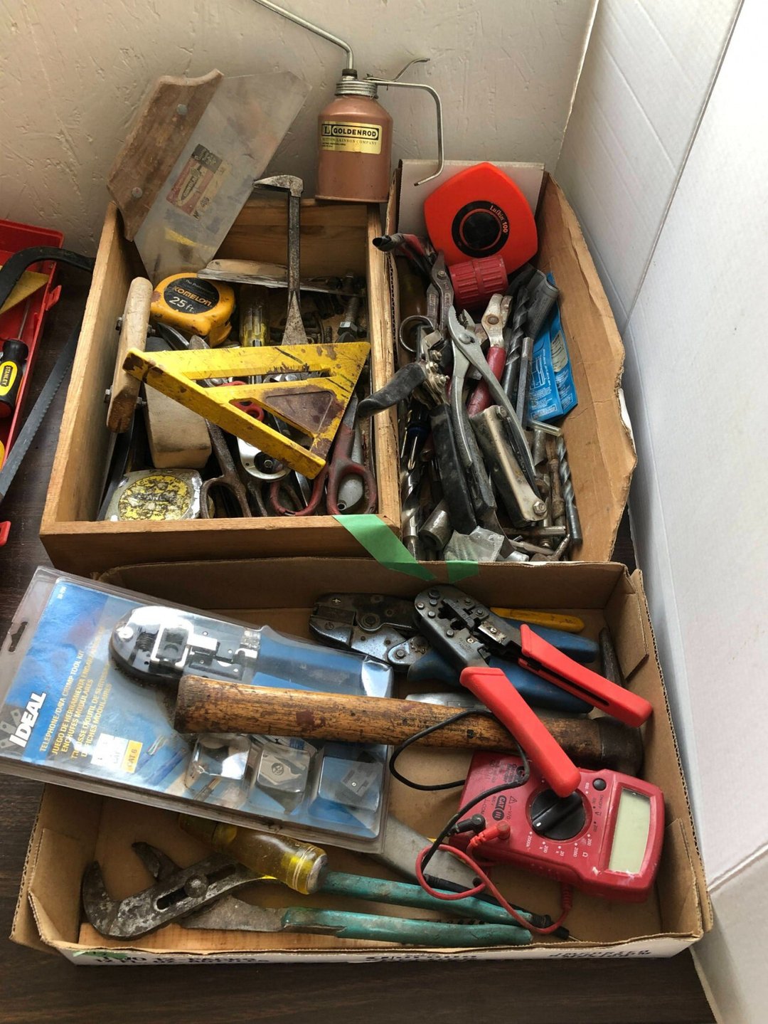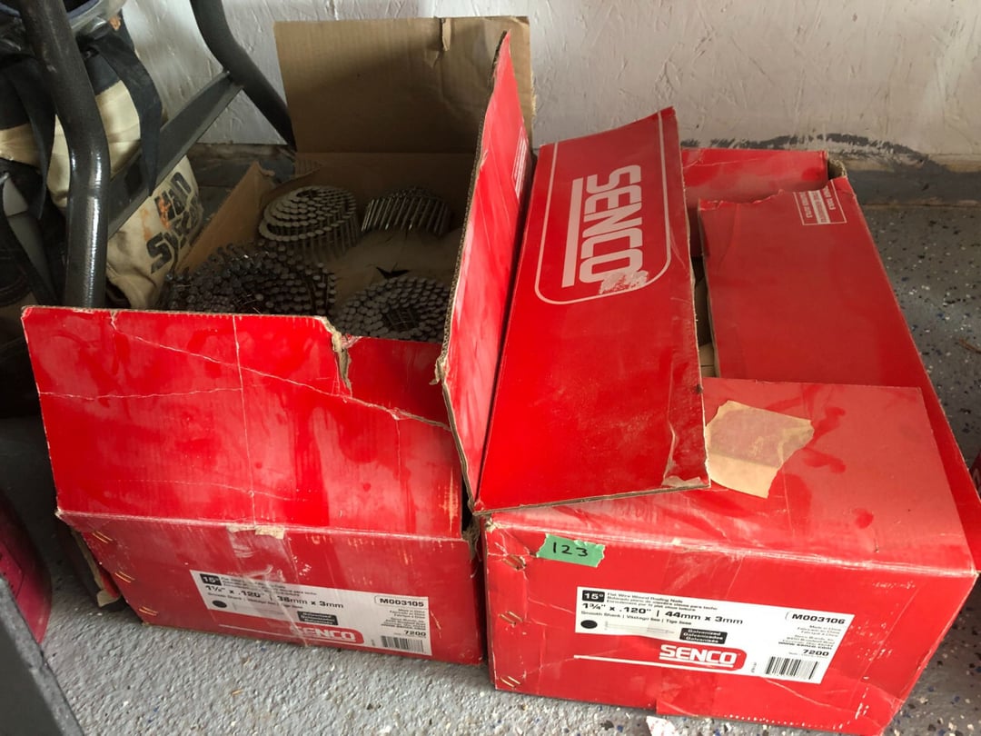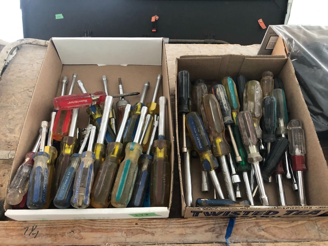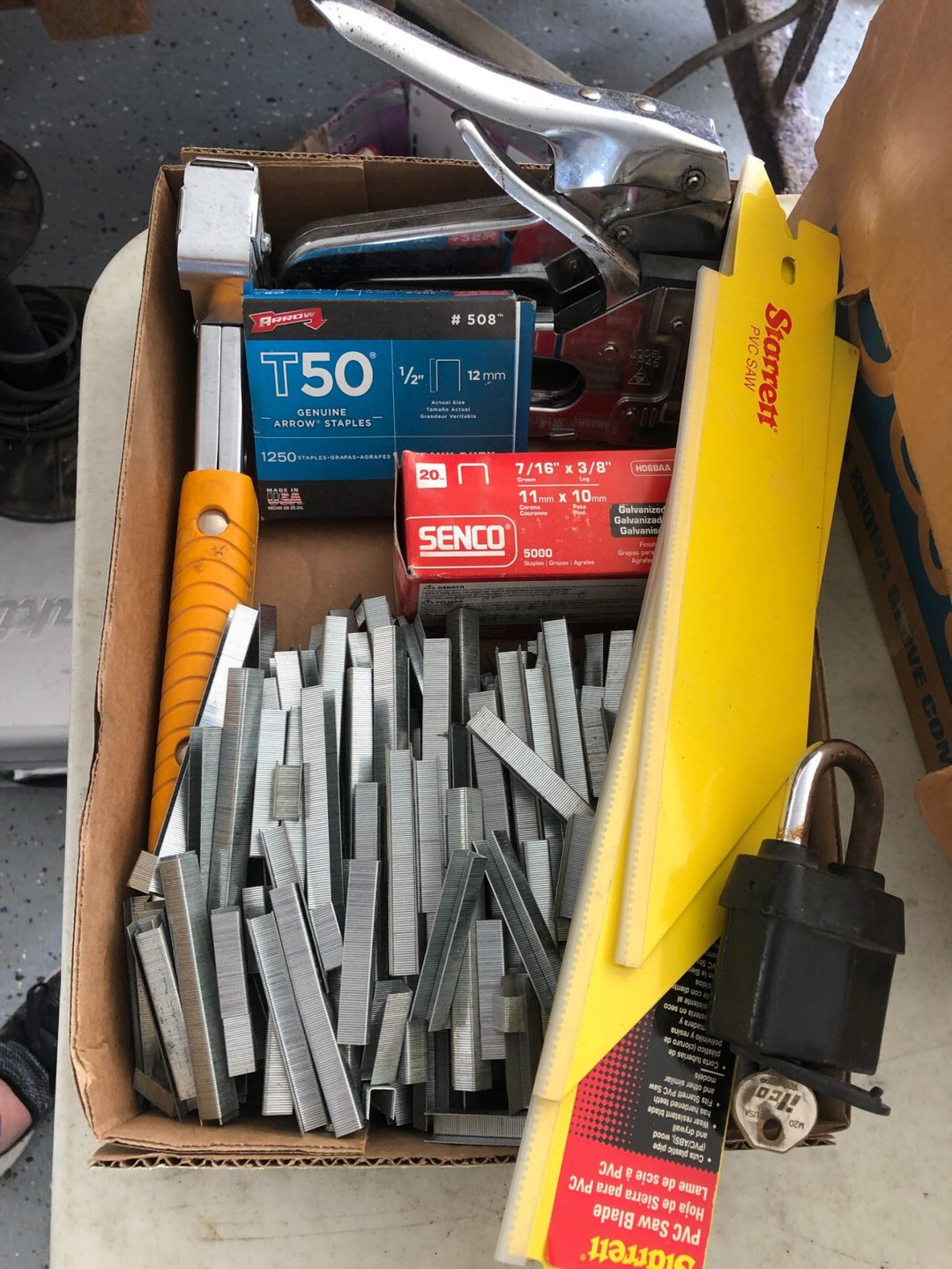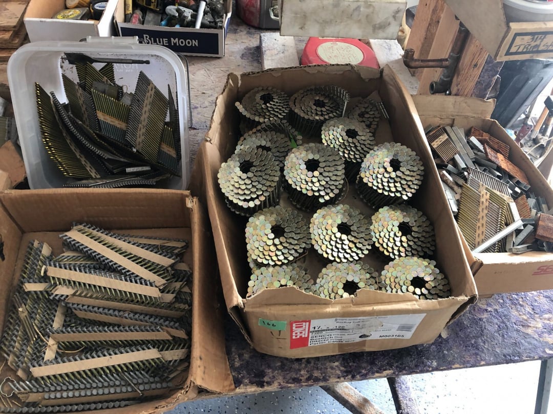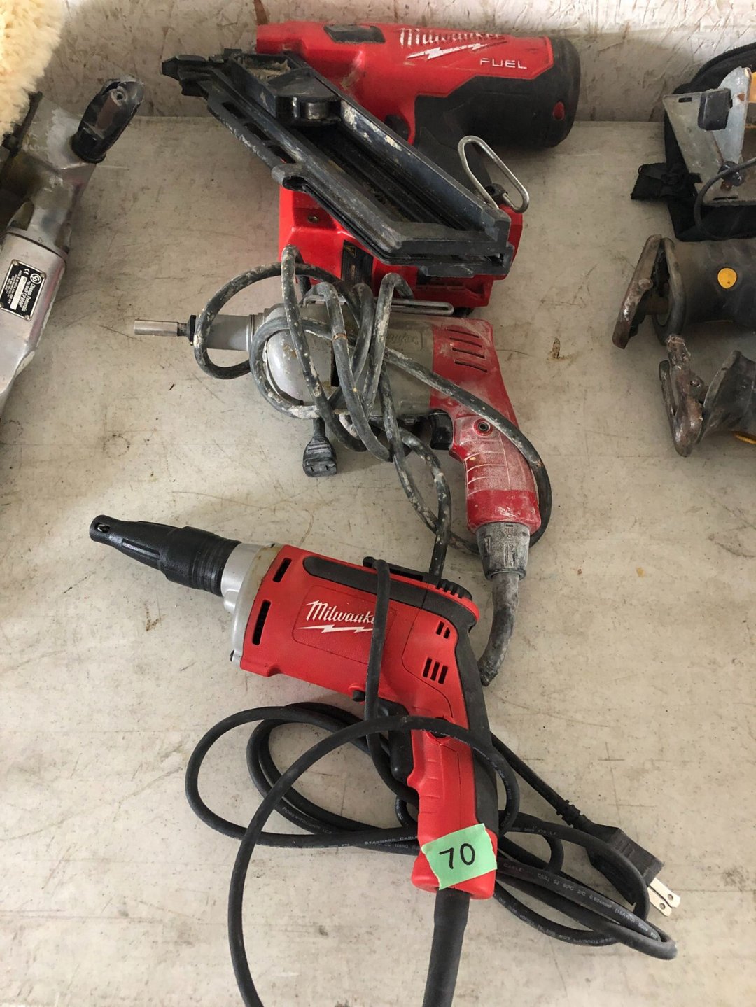 HILTI DX460Nail Gun, Dremel saws / Max with extra blades, MAX CNV400A Coil Nailer, DeWalt 18 V reciprocating saw (DC385), Paslode impulse nailer with case, Senco DuraSpin 14.4V Nailer, Dremel with accessories, BOSTITCH air (SL1838BC) Cap Stapler, Tackle box with miscellaneous hardware, 7 Miscellaneous cases, Tool shop 1 9/16 narrow crown stapler, Bosch CS 20 rip saw with bag, PipeCat PC1000 tubing cutter , Makita magnesium rip saw, RoadToolz Robo laser in case, Porter cable TIGER reciprocating saw, Toolbox with Tools, Paslode impulse utility framing nailer, Vitrex Tile saw, Misc Porter Cable Drills, Saws, lights-, Wet saw table, JET Pedestal 6 " grinder, Miscellaneous parts, PNEU-Tools RAP-A-CAP 150 Capnailer, Misc Clevis, Flat of tools, Flat of Allen wrenches, Dewalt hacksaw blades NIB, Dewalt hacksaw blades NIB, Simson Volt-OHM Meter, Flat of Allen wrenches, Flat of various size wood bits, Miscellaneous tools and files/kneepads, Hoover windtunnel sweeper, RIDGID Shop Vac, Bostitch 10 gallon shop vac, Craftsman 6 gallon shop vac, Craftsman wet/dry 6 gallon shop vac, 12 Gallon shop vac, Shop vac & Vacmaster , Graco gluing cart, Graco gluing cart, Paint machine?, 14 Empty tool cases, JET Dust collector, Mitre-Mite-VN4, 17 Various electric tools, 5 Rip saws, Come-a-long, 7 Corded DeWalt reciprocating saws, 2 DeWalt Drills,heat guns,saber saw, Plastic shelving, Roofing Jacks, 32" Pedestal fan, Makita LS1013 miter saw (10") Mounted, Roofing Jacks, Roofing Jacks, Roofing Jacks, Painting and drywall supplies, HILTI Accessories, miscellaneous tools, Register vent, miscellaneous, Carpet installation tools, 10 Boxes of CertainTeed ridge vents, Skid of #15 Tarpaper, 20+ Boxes of self adhering ice buster, 7 Dryer Jacks, 2 Pair drywall stilts, Assortment of air tools, Assortment of air tools, Milwaukee stapler, screw gun, nailer, Flat of air tools, DeWalt 18VTools, Corded Drill, Senco Nailers, Right angle drill, sawzall, misc, Miscellaneous parts, Bosch tools, Milwaukee right angle drills, Milwaukee right angle drills, Large assortment grease guns, Drywall and tiling supplies,, Aluminum sawhorses, drywall stilts with box, 3 Air/brads nailer, Crown insulation tester, SKIL saw worm drive rip saw, Saber saw, 2 drills, Sheetmetal cutter, Makita rip saw, MK470 Tile saw, Carpet stretching kit, Carpet stretching kit, 2 Wheel hand cart, Chicago Electric worm drive rip saw, 2 Porter Cable Belt sanders, Porter Cable Biscuit/router/door planer, 2 Milwaukee right angle drills, 2 Hand metal shears, Tool tray with drywall tools, 4'x7' Bulletin board, IRWIN Chalk lines/cases/chalk, 2 Flats of tools, 2 Flats of tools, 3 Flats of tools, 2 Boxes wood bore bits , , Miscellaneous tools, 2 hose crimpers, 8 Hardhats, Miscellaneous sockets and wrenches, 3 Boxes miscellaneous hole saws, 2 Boxes miscellaneous hole saws, bore bits, Screws and nails, Miscellaneous air fittings, Spade bits, pipe clamps, magnet, Wire strippers, speed squares, gecko gauges, Speed square, tin snips, pliers, channel locks, Tin snips, pliers, Tin snips, chisel, sockets, Safety triangles, Safety triangles, ECCO Yellow safety light, 2 Boxes safety triangles, Work lights, 2 Boxes kneepads, 2 Boxes caulking guns, 5 boxes Senco 3 1/4x .131" nails, (2) Boxes coil nails 1 3/4"x.120 Roofing Nails,, 2 Buckets of kneepads, Miter saw, 7 Nail aprons, 7 Nail aprons, 7 Nail aprons, , Porter Cable Ripsaw, 1/2" drill, palm sander , Porter cable router with bits, Power Hack saw, Roto zip with accessories, SuperDrive, shrinkfast, QuickDrive, 3 Drills, chargers, Air coil nailer, Miscellaneous tools, Porter cable belt sander and router, Milwaukee chargers, sawzall, rip saw, Drill, reciprocating saws, Makita tools, Makita battery tools, Senco DuraSpin, Senco 701XP Air nailer frame, Senco tools, 4 Parts bins, Parts Cabinet, Rockwell 10 inch table saw (3PH 480V), DeWalt tools, 2 Bosch tools, Framing hammers, Framing hammers, Framing hammers, Framing hammers, Roofing bars and mallet, Porter cable & DeWalt ripsaw, Milwaukee, porter cable ripsaws, Porter cable panel saw, belt sander, Milwaukee 1/2 inch impact, Milwaukee sawzall, DeWalt Sawzall, Hitachi router, Box of T Allen wrenches, Staple guns, Staples, PVC saw blades,, Copemaster saw with stand, Chalk line with chalk, electrical boxes,, Assortment of Senco nails, Makita LS1013 chopsaw, Makita chop saw with extra blade, Miscellaneous wood boring bits, 2 Flats of screwdrivers, Hack saws, bolt cutter head, Nut drivers, Wrist and back supports, sleeves, Fall arrest device, Fall arrest device, Fall arrest device, Miscellaneous tools, tape measures,, Utility knives and blades, Stanley plane, Miscellaneous tools, Makita miter saw, Bionic shield, LP regulator hose, torch head, Black tile cutter, Red tile cutter, Tool cart (contents not included), Fall arrest harness, miscellaneous strapping, Helicoil Kit, Strap Bander, PVC cutter, Toolbox with miscellaneous tools, Air hoses, Fall arrest harnesses, ratchet straps, HD Extension cords, Fall arrest harnesses, Fall arrest harnesses and ratchet straps, Fall arrest harnesses, (3) 6" Lifting straps, Banding material, 6 sling rings, Connecting straps in Cooler, Broomhead, Husky 2 step ladder, 3 step ladder, Keller 5' Fiberglass step ladder, 2 Ladder stabilizers, T Squares, levels, hand saws, Ping pong table, Dry wall tools, 2 Adjustable floor jacks, 4'x8'Rolling cart, 4'x8'Rolling cart, 4'x8'Rolling cart - 4'x8'Rolling cart - contents not included , post hole digger, 8' 10' 14' Fiberglass Ladders, 40' Extension Ladders, cables, Tarps, Steel, Roofing Jakcs, Bottle Jacks, Floor Jacks, Sawhorses, Shop Vacs,& Much More!