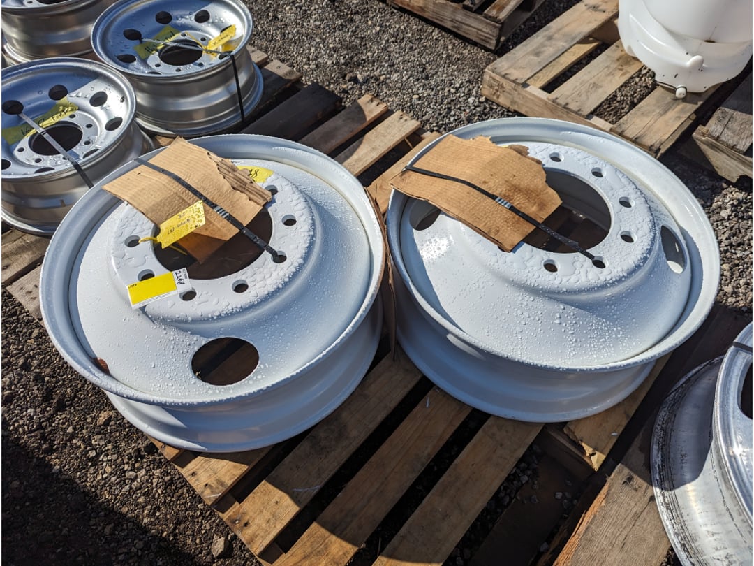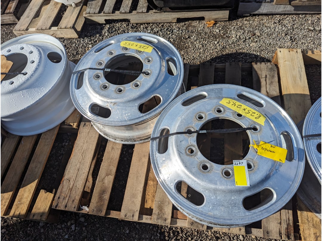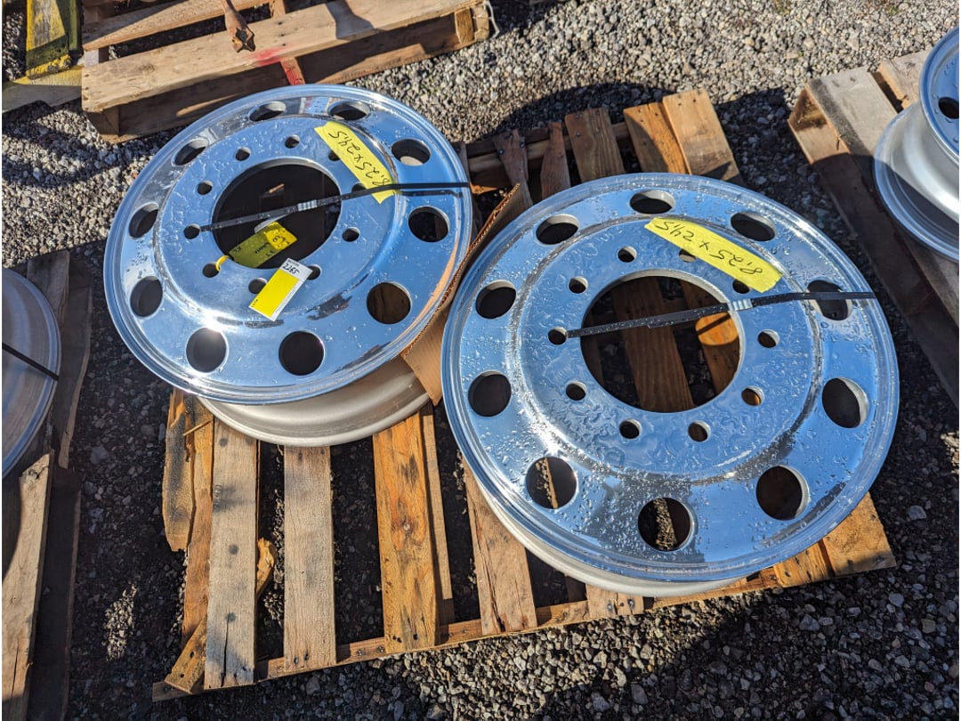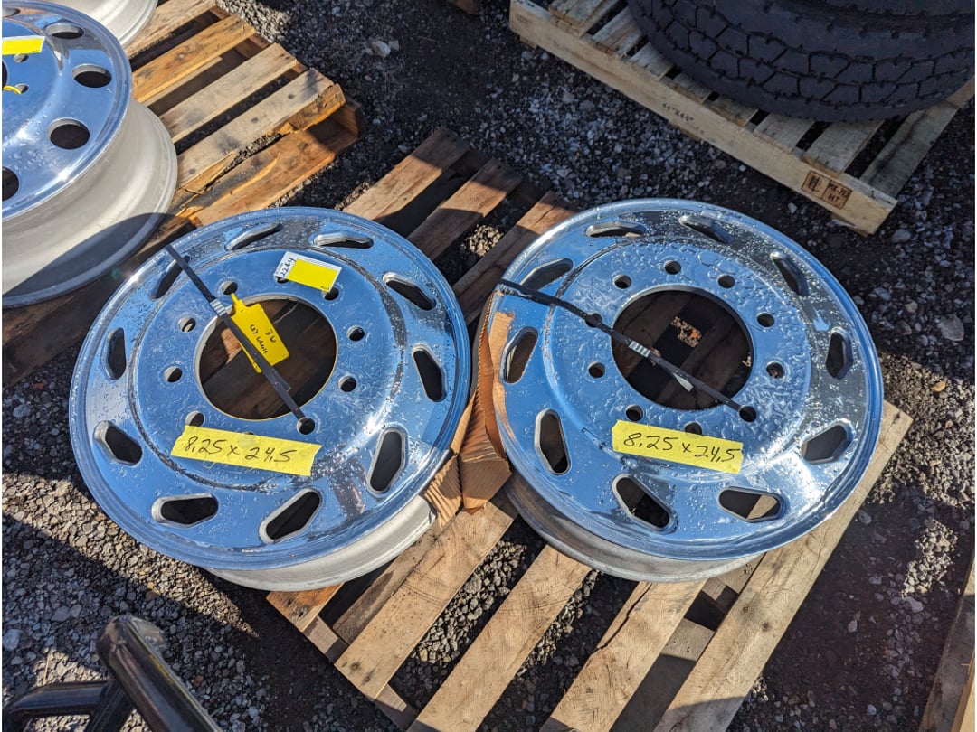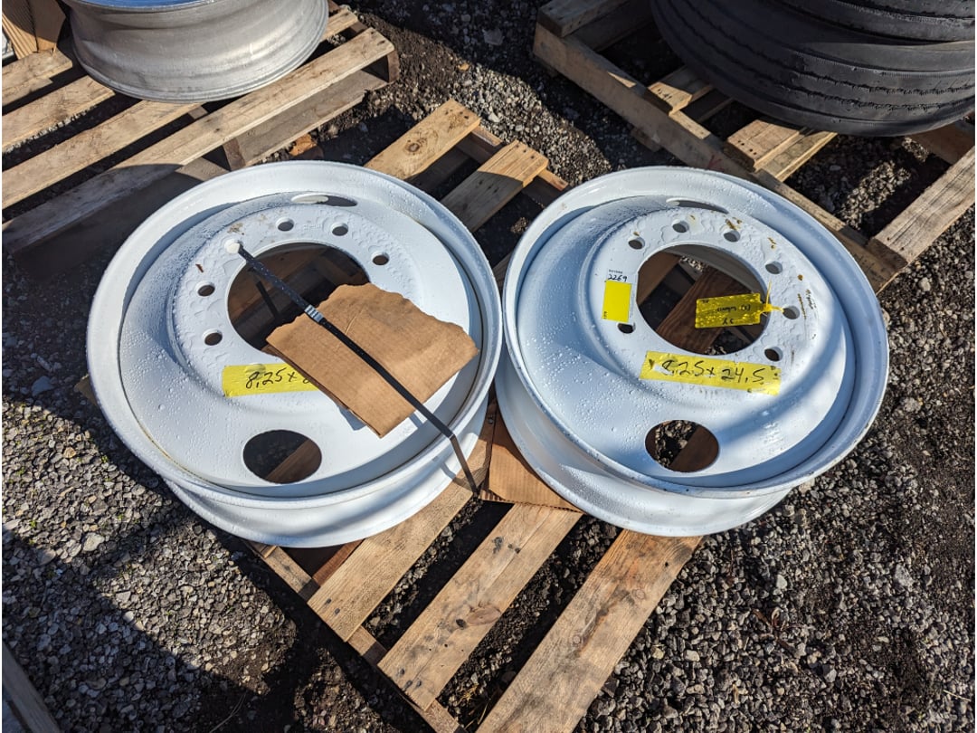 •(2) Aluminum 10 lug 8.25 x 24.5 Truck wheels Surplus kenworth pete freightliner