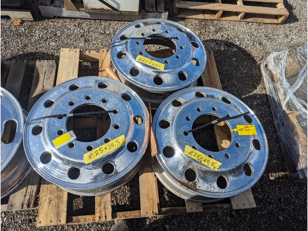 •(3) Aluminum polished 10 lug 8.25 x 24.5 Truck wheels Surplus kenworth pete freightliner
