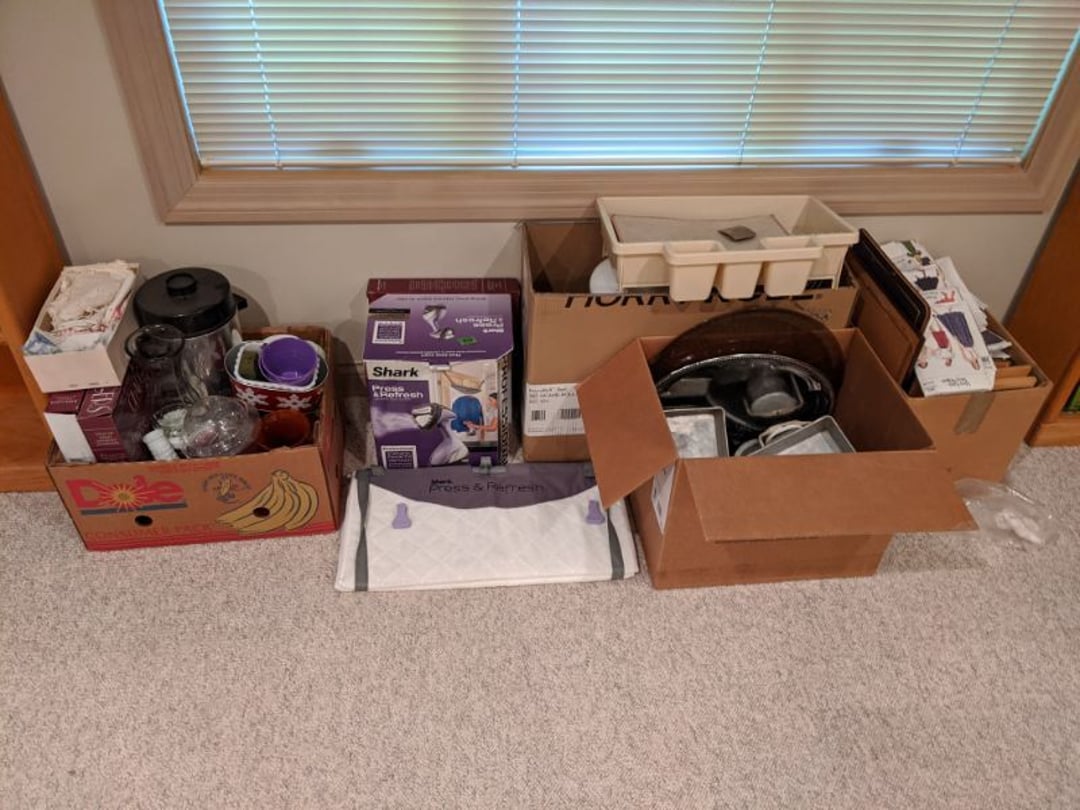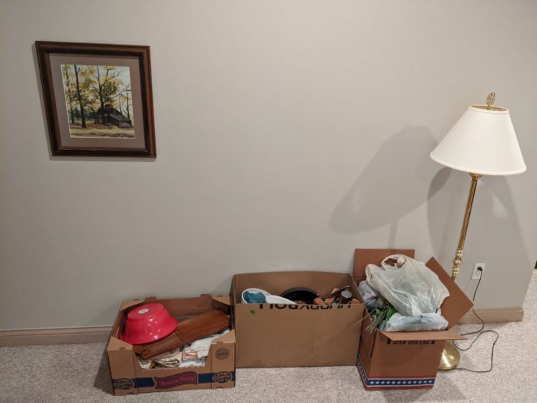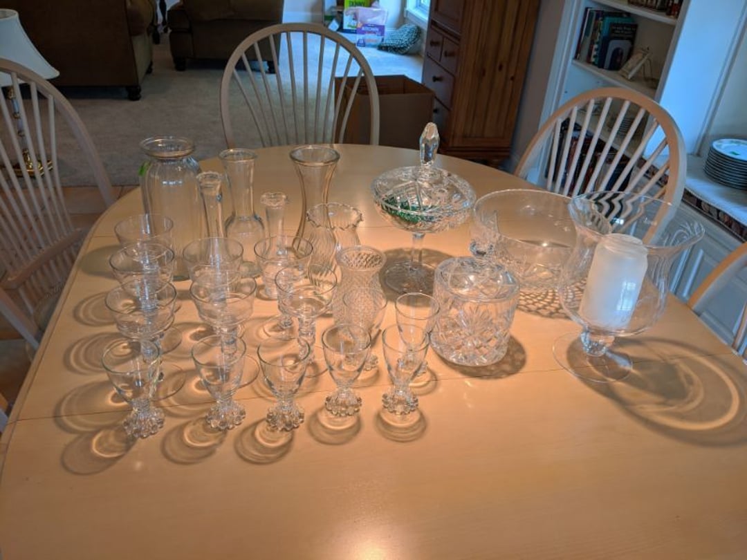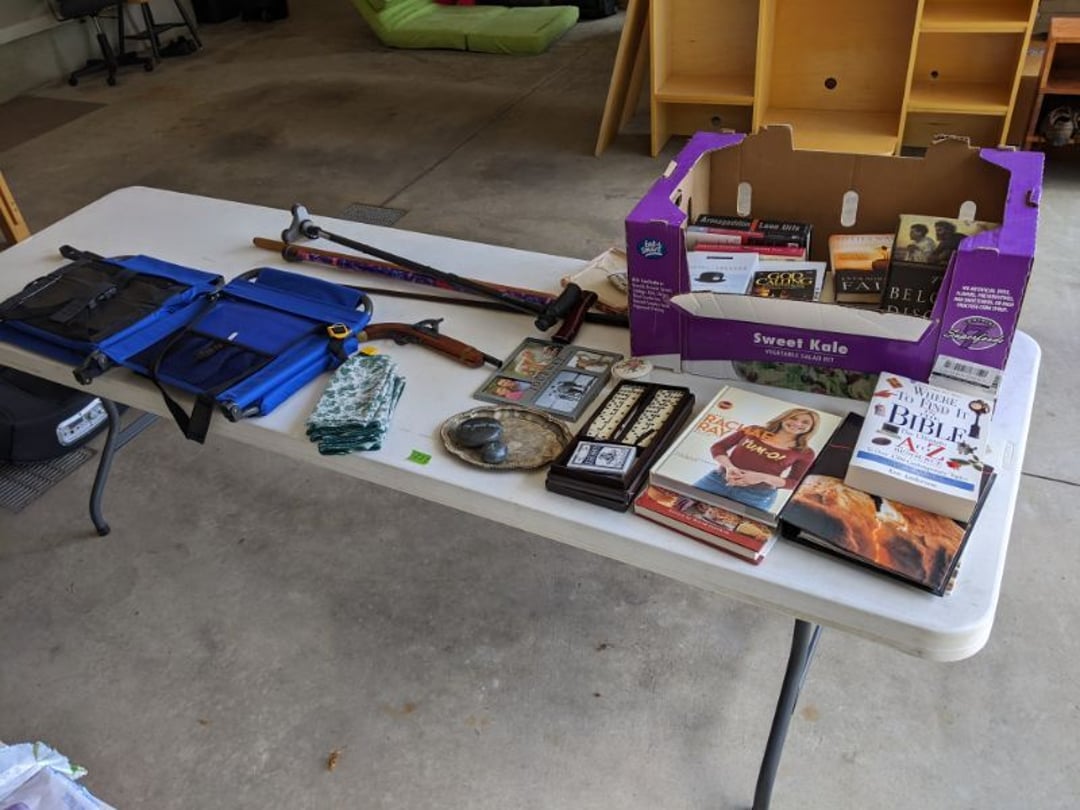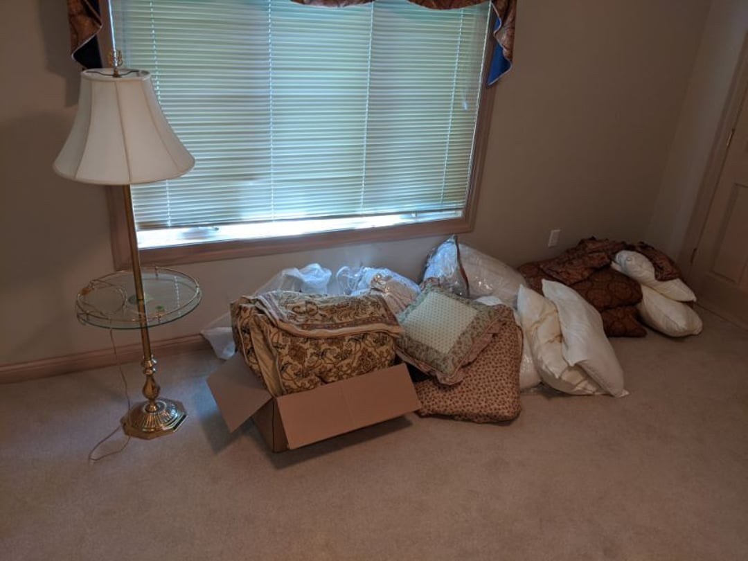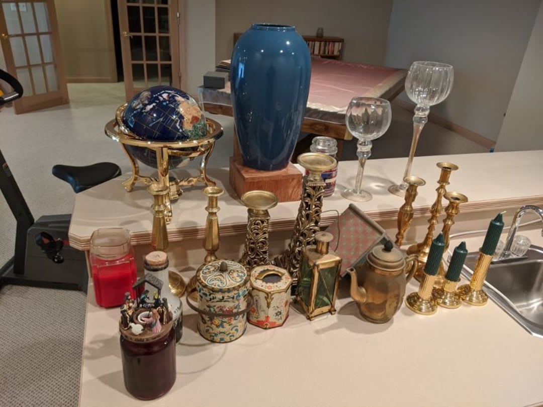 Blonde Kitchen Table w/ 6 Matching Chairs - 2 Blonde Bar Stools - Drexel Sofa & Love Seat - Glass Top Coffee Table, End Table - La-Z-Boy Rocker Recliner - Entertainment Center - Stanley Secretary Chest - Glass Top Dining Table w/ 6 Chairs - 2 Piece Wood Hutch - Denver Mattress Full Size Bed, King Size Headboard, 2 Lamps - Scale, Stool, Wicker Storage Chest, Trash Can, Decorator Plant - Antique Dresser w/ Mirror - Antique Sideboard Cabinet - Twin Size Bed - Office Chair, Floor Lamp, Table Lamp, Rolling Organizer Rack - Hall Tree / Umbrella Stand w/ Mirror - Hancock & Moore Leather Sofa, Chair, & Ottoman - 2 Smith Brothers Upholstered Swivel Rockers - Entertainment Stand - Jupiter Furniture Side Chair - 4 Folding TV Trays - Edelwood Furniture Coffee Table & End Table - Heat-A-Lot Infared Furnace - Storage Trunk w/ Toys - Desk w/ Desk Lamp - Wood Bookcases with Books - Child Size Wood Rocker w/ 2 Stuffed Bears - Nelco R-1000 Sewing Machine In Case, Sewing Supply - Tonka Road Grader - Marx Tin Litho Wind-Up Dozer - Mustang Model and Vintage Battery Powered Car - Erector Set & Chess Board & Chess Pieces - Complete Office Furniture Setup, Desk, Lamp, Bookshelf, Cabinet, Lateral File Cabinets, Paper Shredder - Wood Chair & Stool - Floor Lamp, Bedding - Contents of Closet, Gift Wrapping, Blankets - Contents of Closet, Blankets, Towels, Bedding - Lot of Candlesticks, Vase, Globe, Other Decorators - Contents of Kitchenette Cabinets, Knife Set, Party Supply, Coffee Maker - DVD's, Games, Decorators, 2 Fans - Games, Kitchenwares, - Shark Steamer, Housewares, Dress Patterns - Floor Lamp, Framed Picture, Thermos, Decorators, Housewares - Coolers, Floral Decorators, Baskets, Iron - Shelf, Childs Toys, Christmas Tree - Framed Pictures, Wood Cabinet - Luggage, Coleman Stove, Walker, Plastic Containers of Christmas Decorators - Tea Sets, Royal Rochester - Books, Decorators, Glassware, Contents of Built in Shelf - Large Set of Meito China - Badash Punch Bowl, Cristal d'Arques Vase, & Pitcher - 2 Decanters, Books, Decorators, Glassware, Contents of Built in Shelf - Glassware, Candlewick, Candy Jar, Biscuit Jar, Other Crystal - Panini Press, Slicer, Rolling Pins, Kitchenwares - Glassware, Milk Glass, Silverplate - Pyrex Bowls, Corning Ware, Plates, Tea Cups, Serving Pieces - Large Set of Pfaltzgraff Dinnerware, Canisters, & Mugs - Costume Jewelry, Rings, Bracelets, Beaded Purse - Yamaha 221 Flute in Case, Sheet Music Stand - CD's, Pioneer SX-251R Receiver, Samsung Bluray Player, Records, Klipsch R-15M Bookshelf Speakers - Books, Candles, Decorators - 3 Piece Lamp Set - Decorator Pieces - Area Rug, Side Table, Side Chair - Linens, Hat Box, Bags, Bathroom Supply - Wall Mirror & Framed Decorators - 2 Wood Stands & Magazine Rack - Laundry Room & Cleaning Supply, Light Bulbs, Housewares - Stacking Organizers, Housewares - Chair & Ottoman - Cabinets & Countertops - Wood Cabinets & Wood Top - Wood Side Chair - Gaming Chairs, Sleds - Stadium Seats, Canes, Blackpowder Pistol Model, Dominoes, Books - Adult Briefs - Lamps, Headphones, Monitor, Keyboard, DVD Player - Bedding, Comforters, Padding - Office Chair, Wood Kitchen Chair - TV, Luggage, Large Stuffed Toy, Reclining Pad - & MORE
