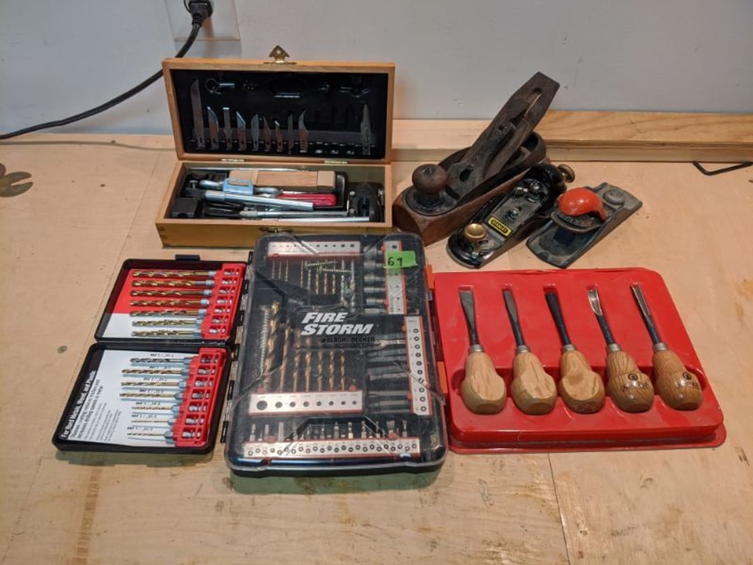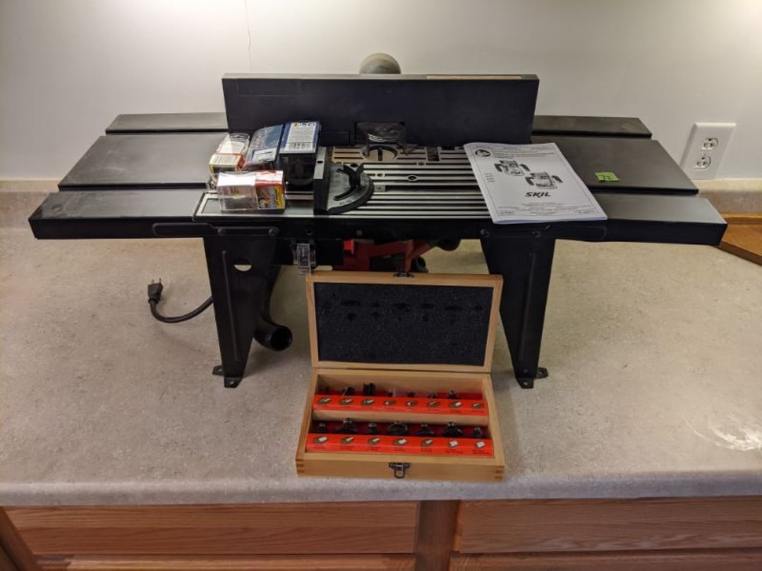 •Exacto Knife Set - 2 Sanders & Jig Saw - Lot of Drill Bits & Drill Accessories - Skil 1 3/4 HP Router w/ Router Table