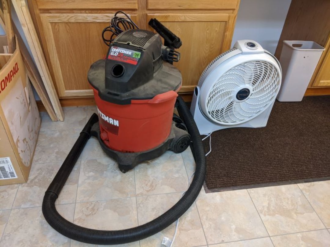 •Glass Tank - Craftsman 16 Gallon Shop Vac & Cyclone Fan - Black & Decker Work Mate - Contents of Office Closet