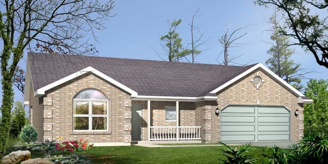 This split bedroom plan has a beautiful kitchen with a spacious great room and separate laundry room.