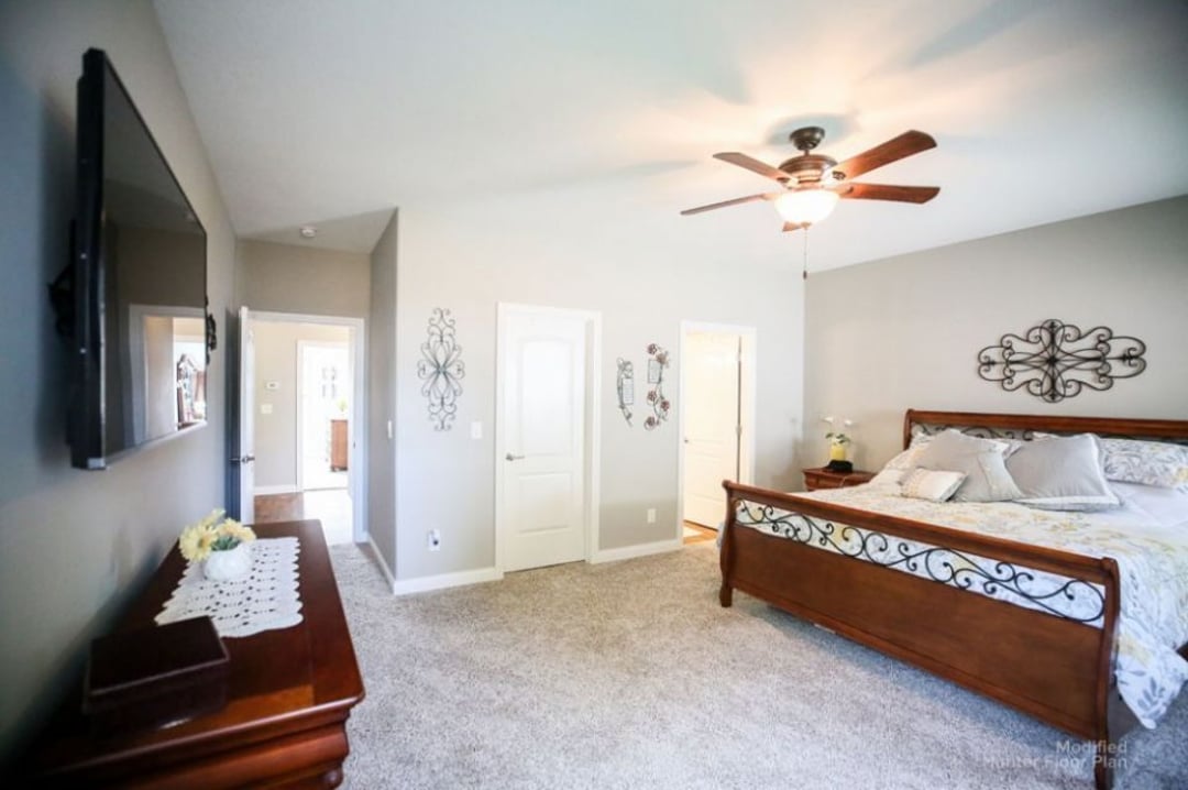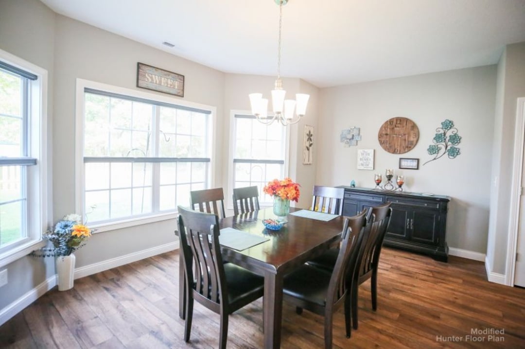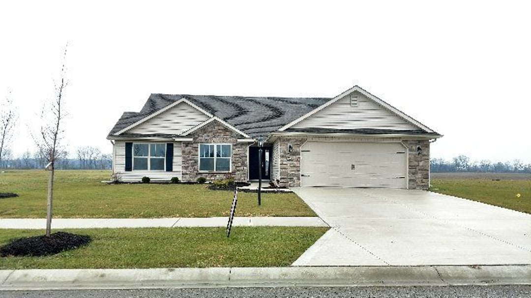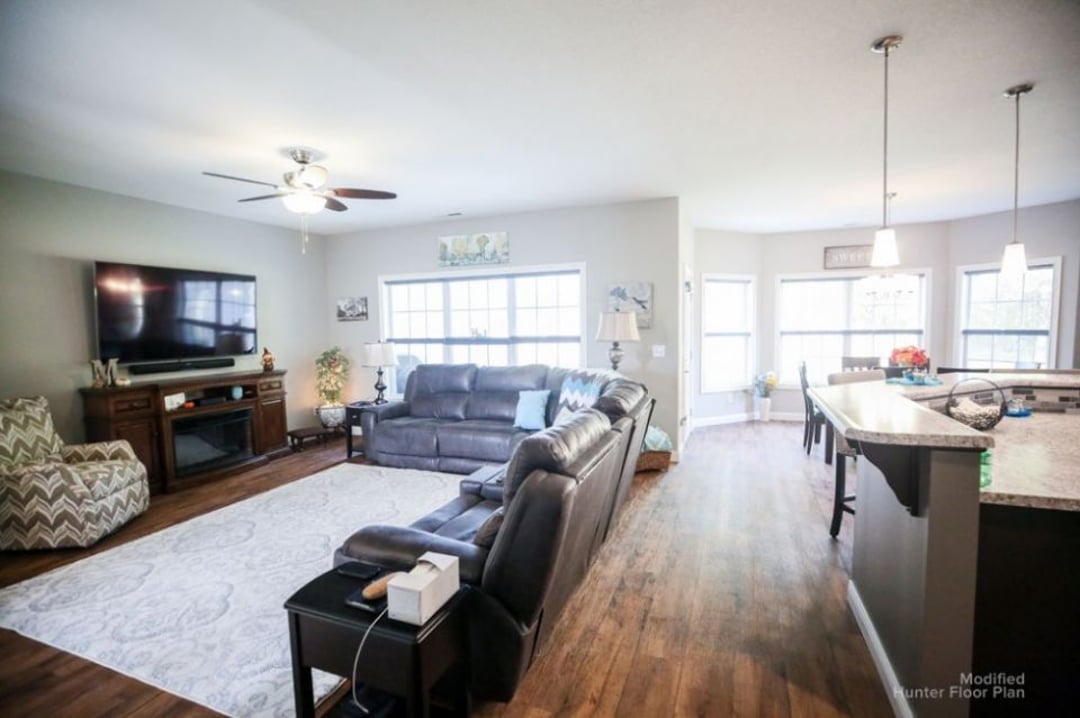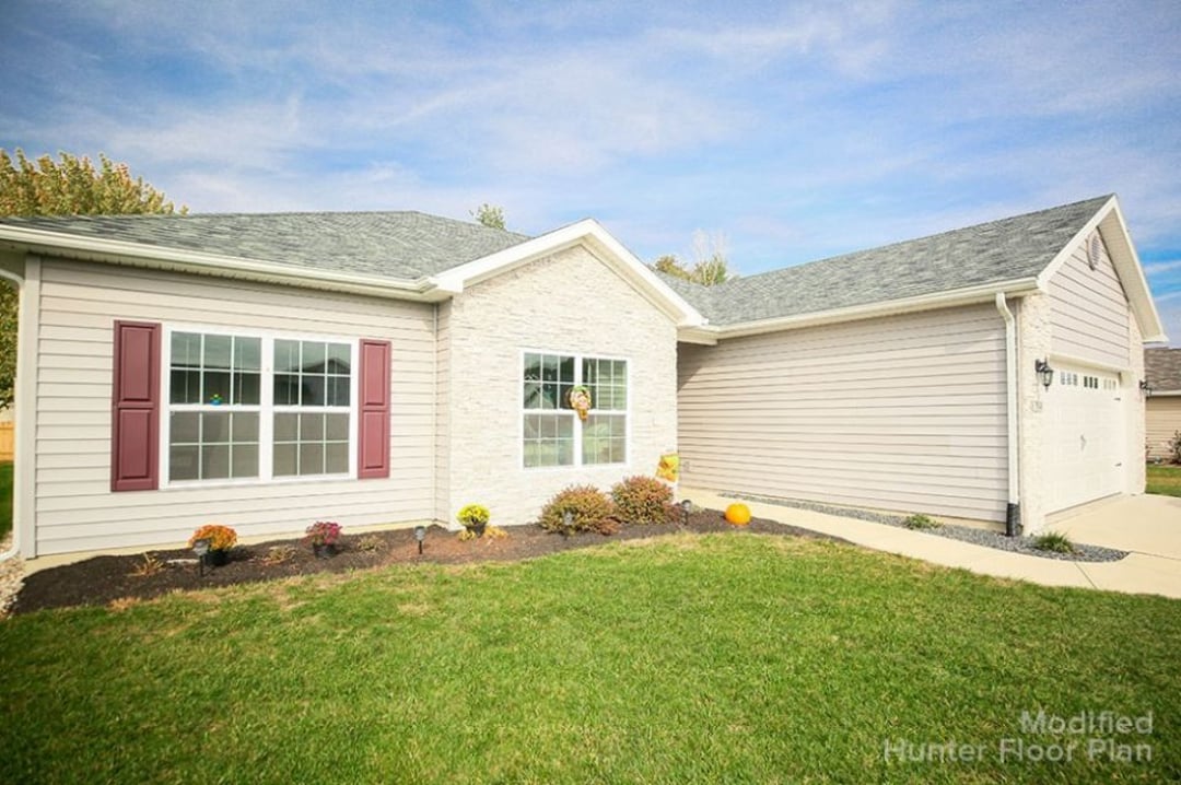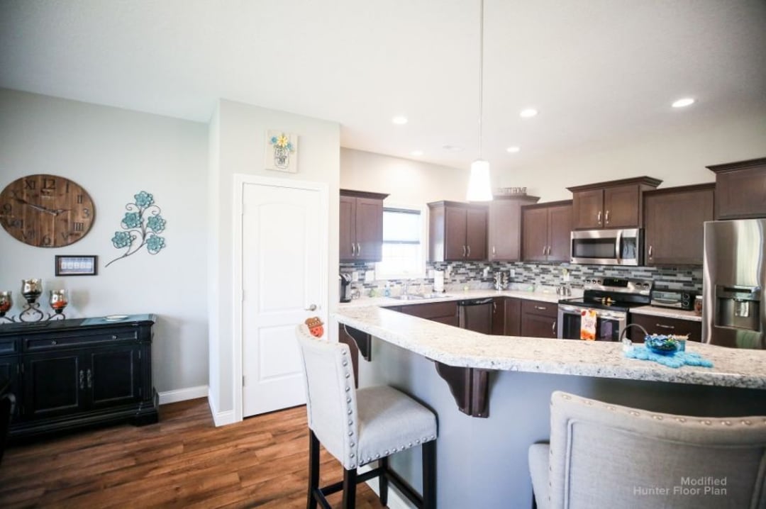 The Hunter is a Open Floor Plan - Ranch Style Home with 3 bedrooms, 2 bathrooms, Large Eat-in Kitchen with Bar, Rear Covered Patio, Laundry Room, and a 471 sq. ft. garage.