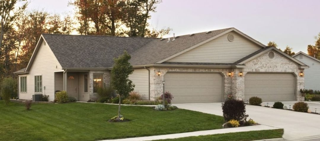 Ideal's Oakhurst II Villa is built as a duplex and offers 2 bedrooms and 2 bathrooms in 1201 sq. ft. of living space and a 480 sq. ft. attached garage.