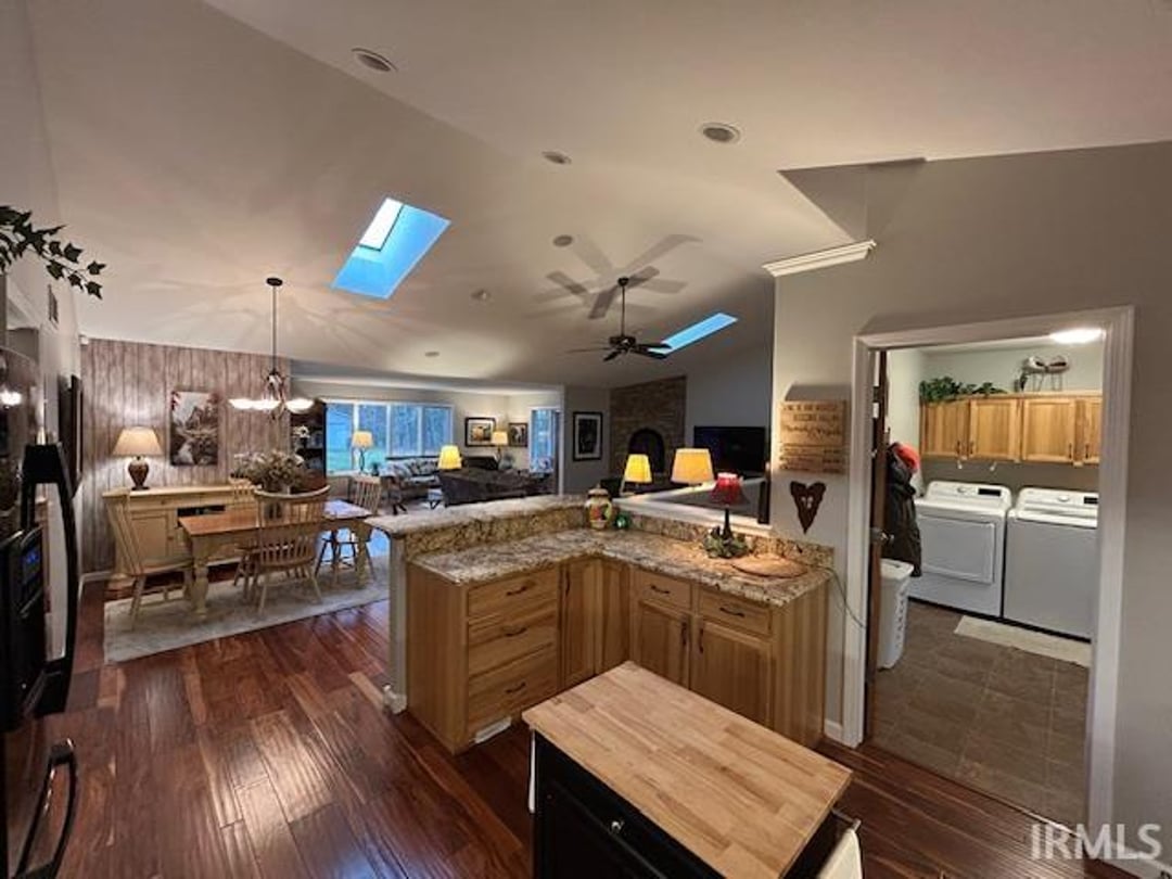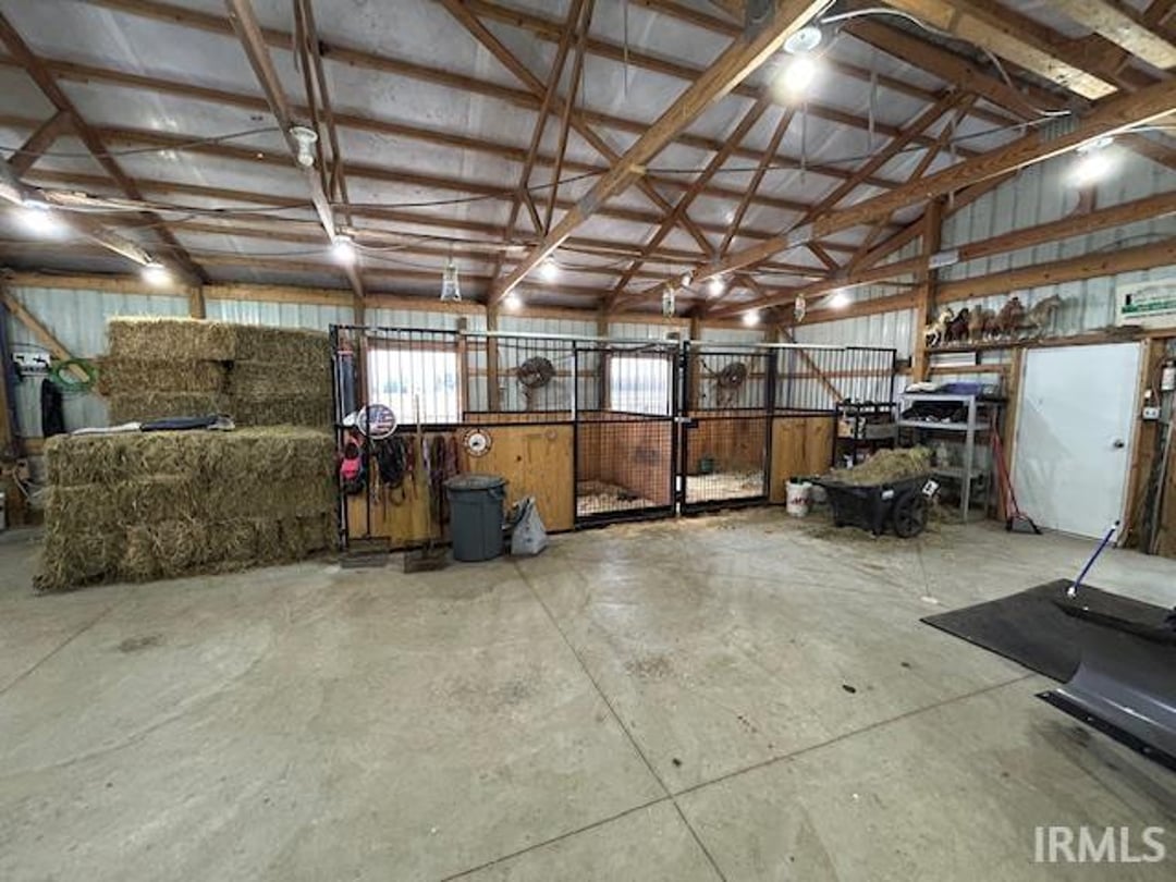 WOW!!!! The county jewel of Syracuse features just over 3 private acres with beautiful scenic views that showcases pride of ownership and an opportunity to raise your family in the country. The home offers just over 4000 sq. ft. / 3200 finished sq. ft. 4 very spacious bedrooms, with 3 full baths and 1200 sq. ft. of finished basement. You will immediately feel the warmth of this county home once you step inside the front door. The home features Australian natural acacia wood flooring in the main living that will surely catch your eye immediately. Vaulted ceiling with sky lights, can lights, solid six panel interior doors. Living room has a beautiful Mendota gas fireplace with true arch view and blower. Open concept on the first floor with 3 bedrooms, kitchen with granite counter tops, laundry and 2 full bathrooms. The basement offers extra living space for entertaining, small kitchen, extra bedroom with egress window, and full bathroom and plenty of storage. The spacious 3-Plus car garage has 3 floor drains, Epoxy floor, heater and both hot/cold water. Garage is 24'x40' with 8'x14' bump out. The home has a Generac Whole house automatic generator with 17,000 watts. Irrigation system with Hunter controller and Rid-O-Rust system. Owned propane tank that supplies the garage heater, fireplace and generator. Closed Loop Geothermal, Radon system, Central Vac with dustpan in the kitchen. Two security systems: Simply Safe and Lorex, Cameras stay. Pole Barn is 30'x48' with porch, 2 horse stalls, cement floor with drains, insulated ceiling, overhead door and 12' slider door, On-Demand hot water heater, 3 water outlets, 30 AMP RV hookup with water and built in work bench. Buyer agent to confirm all information for accuracy.