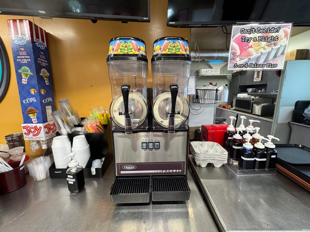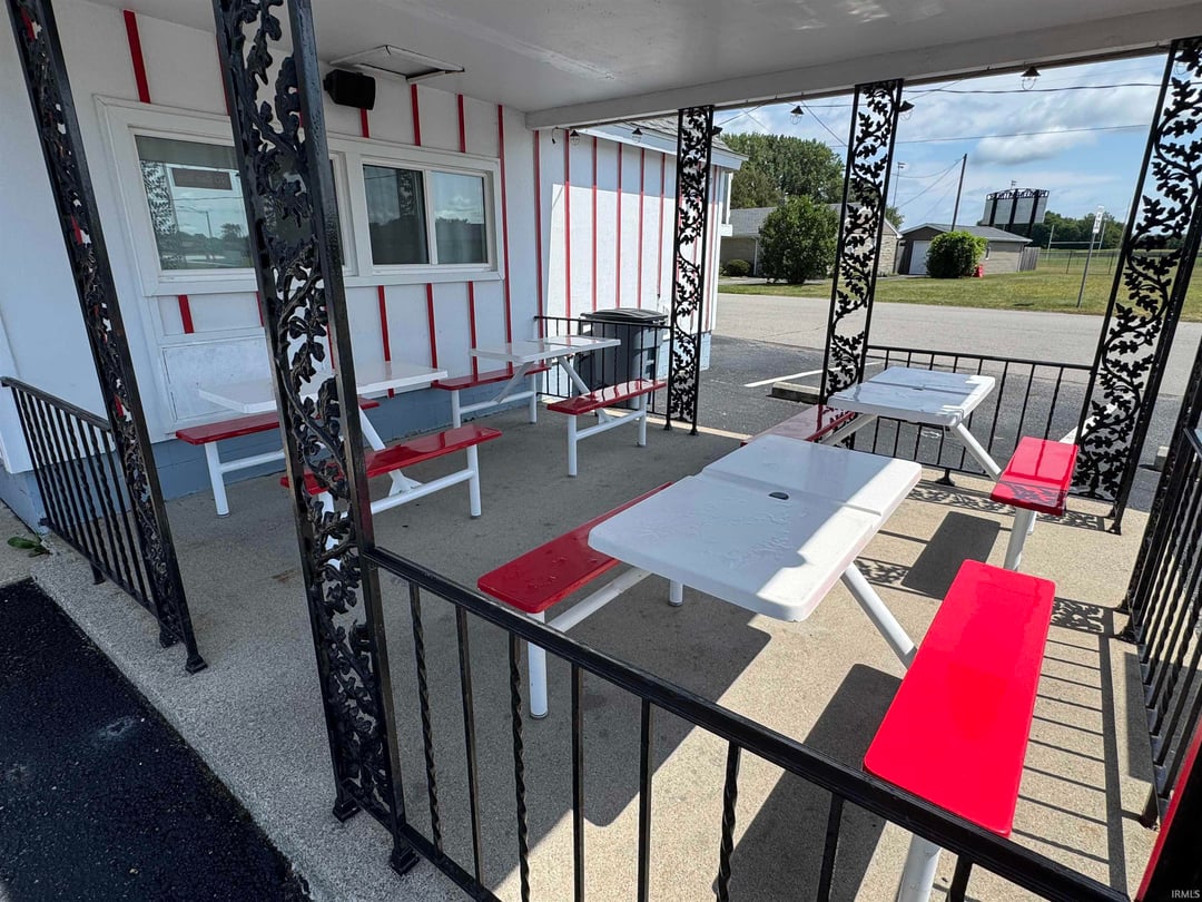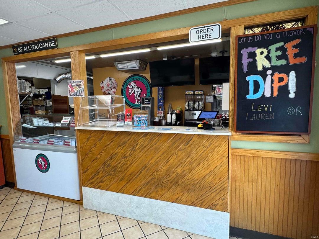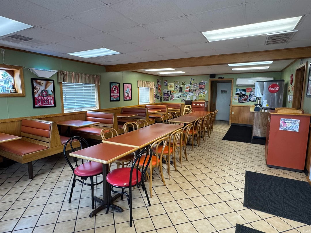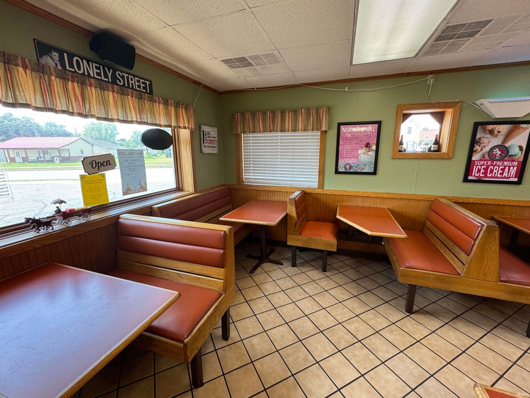 Profitable Turn-Key Restaurant next to Pioneer High School in Royal Center, IN. Includes all recipes and equipment. Almost all equipment has been replaced new in the last 3 years. Prep and order area. Kitchen. Storage room. Dining area including tables, chairs, and booths to accommodate seating for 45. Plus outside seating for 16. Two restrooms. Outdoor and indoor signage and menu boards. Twenty-Two space parking lot. See attached document for complete list of upgrades. Possible Contract Sale with sizable down payment.