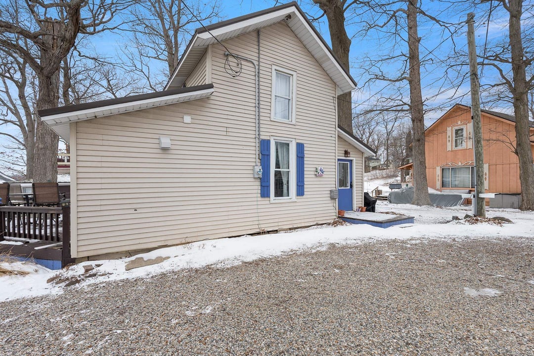 "Our Happy Place" That is what the seller called this totally remodeled affordable lake home! Looking out the kitchen window, at the Beautiful All Sports Hamilton Lake, it indeed is a Happy Place. This cottage has many updates in 2025! A metal roof, new water softener, updated electric, new plumbing, flooring and updated decore through out. All this in the activity packed Cold Springs Resort! The summer is filled with live entertainment, dances, golf games, great food and beuatiful sunsets. All nestled in the golf cart community of Hamilton, Indiana. Plenty of resturants, shopping, coffee,entertainment and receration! Seeing is believing at what this affordable cottage has to offer.
